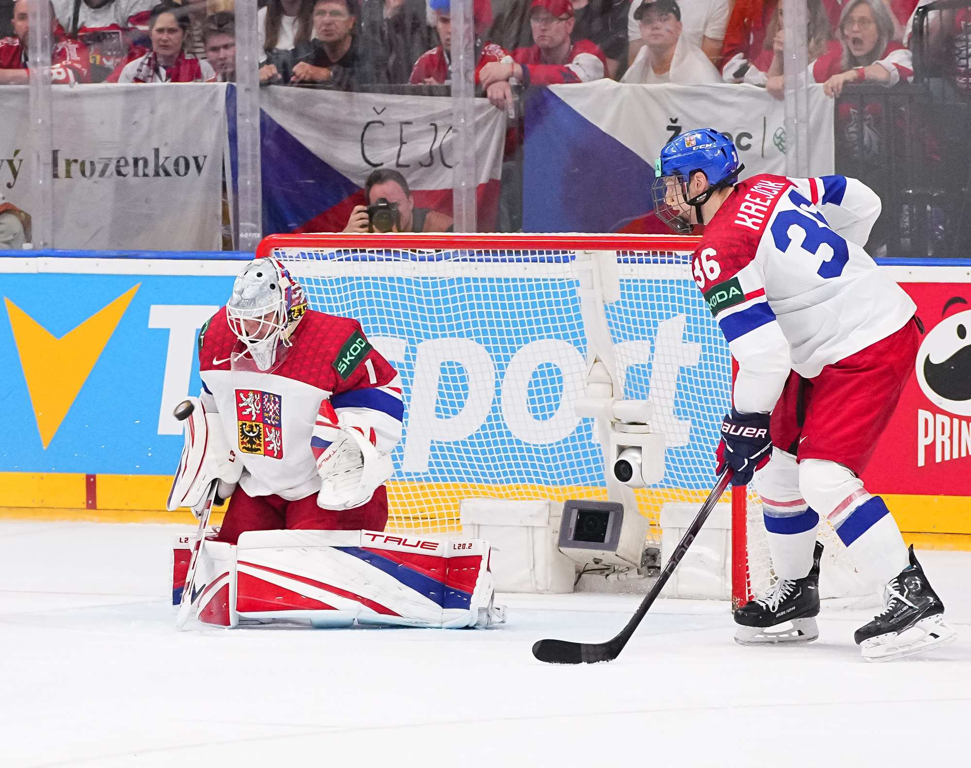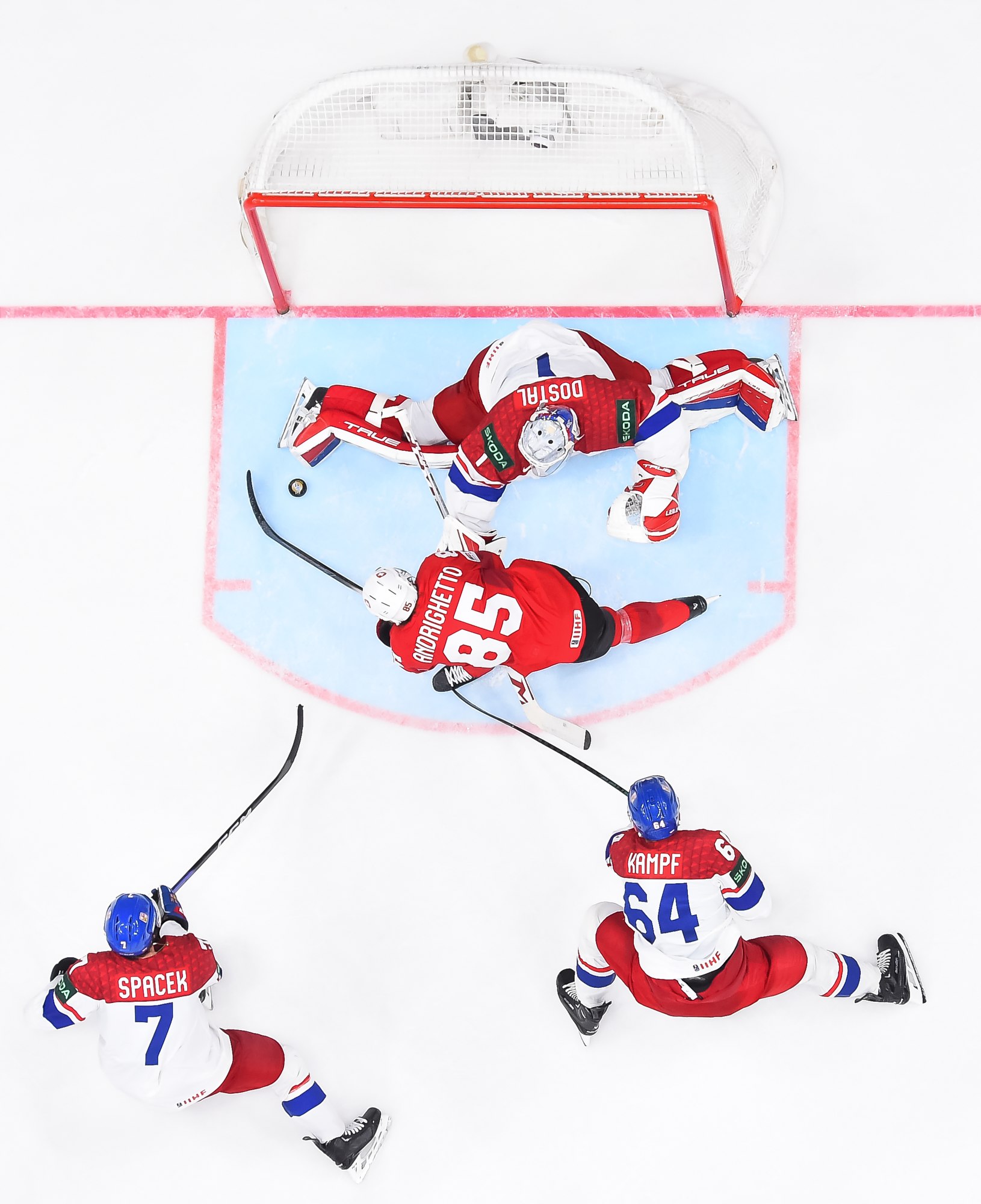This was a duel between the top two Worlds goalies statistically in Dostal and Switzerland’s Leonardo Genoni. Prior to the final, Genoni, 36, amassed a 1.45 GAA and 93.4 save percentage with one shutout, while Dostal, 23, had a 1.80 GAA and 92.8 save percentage.