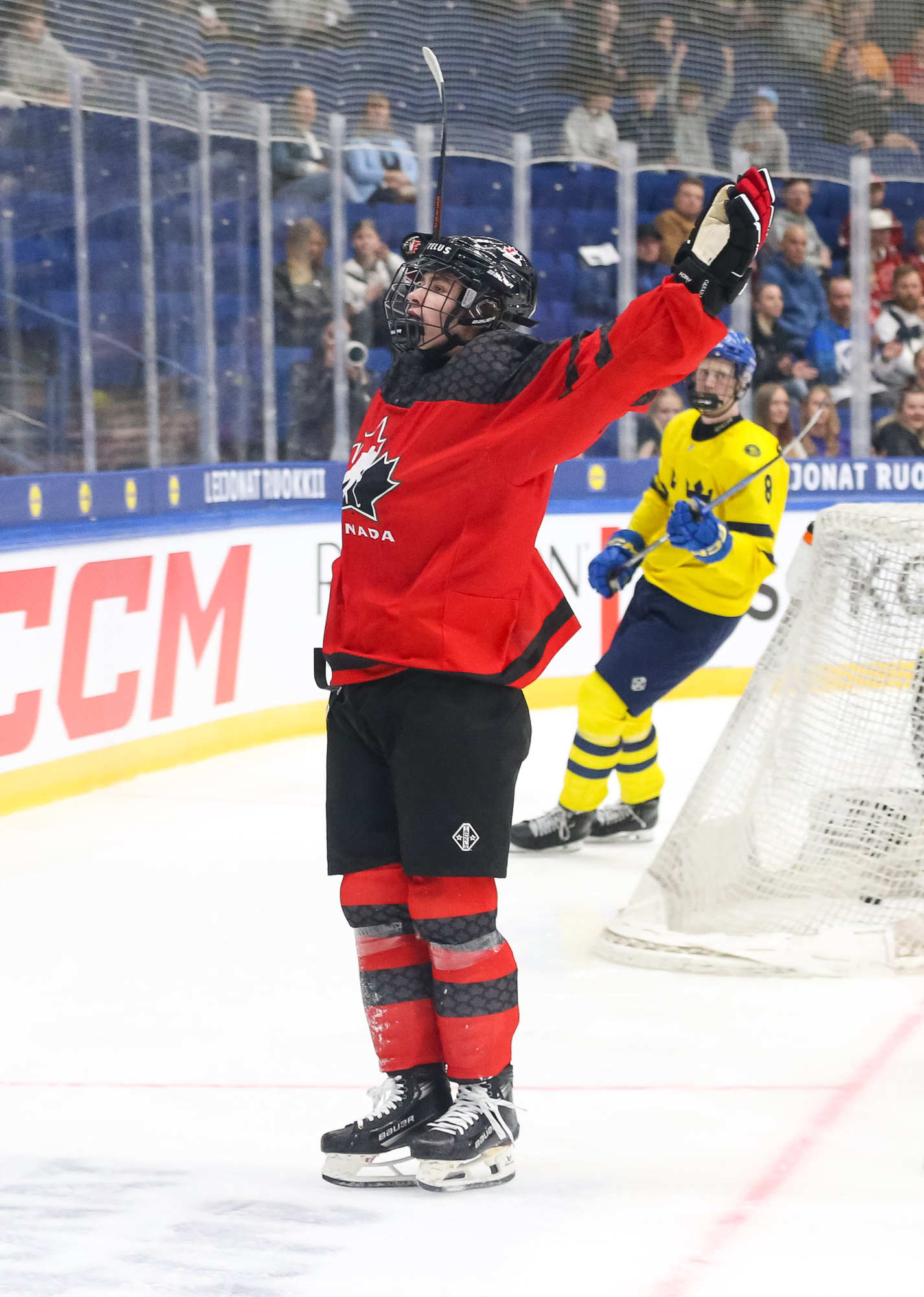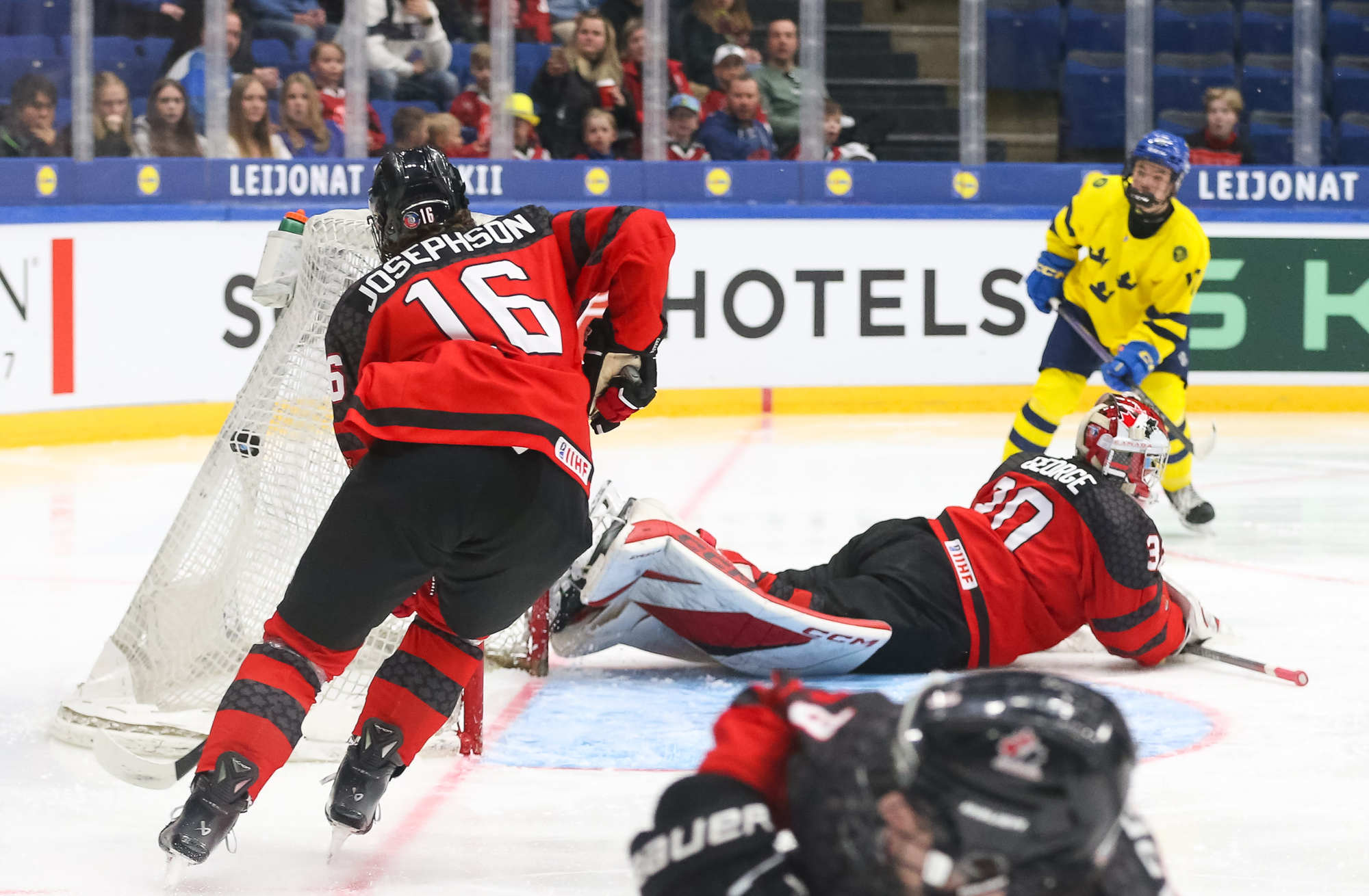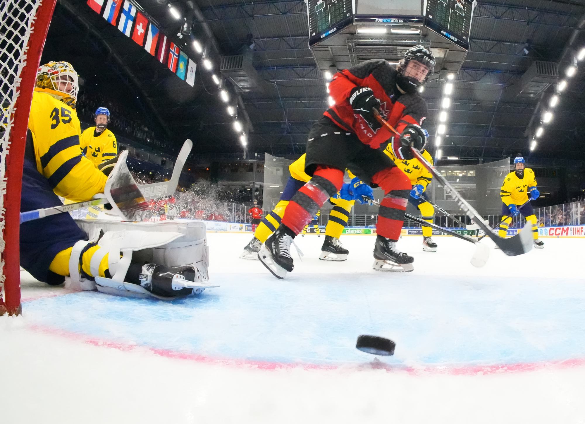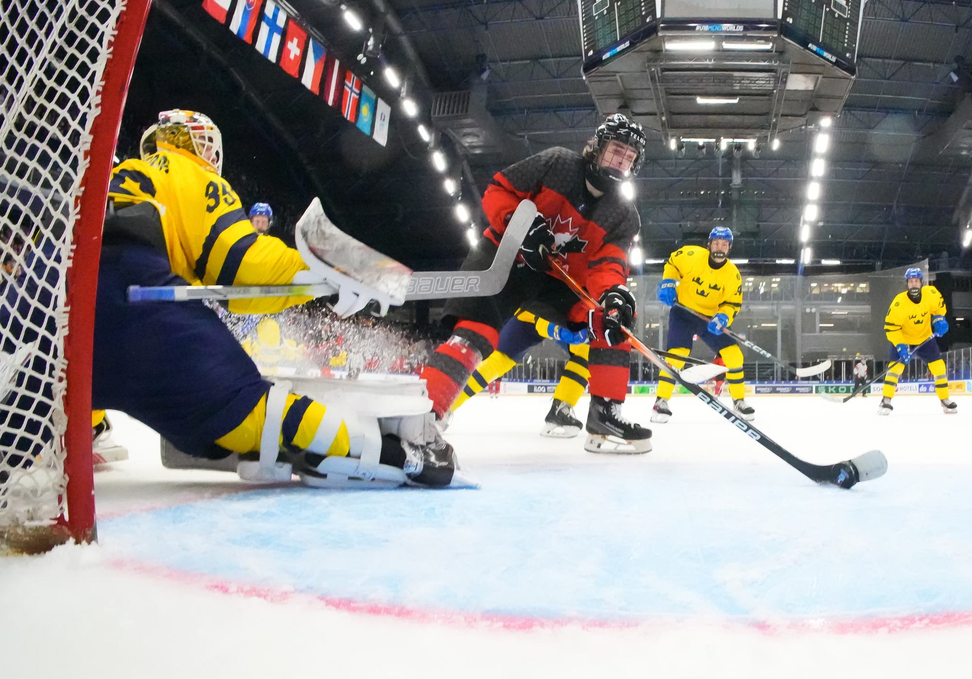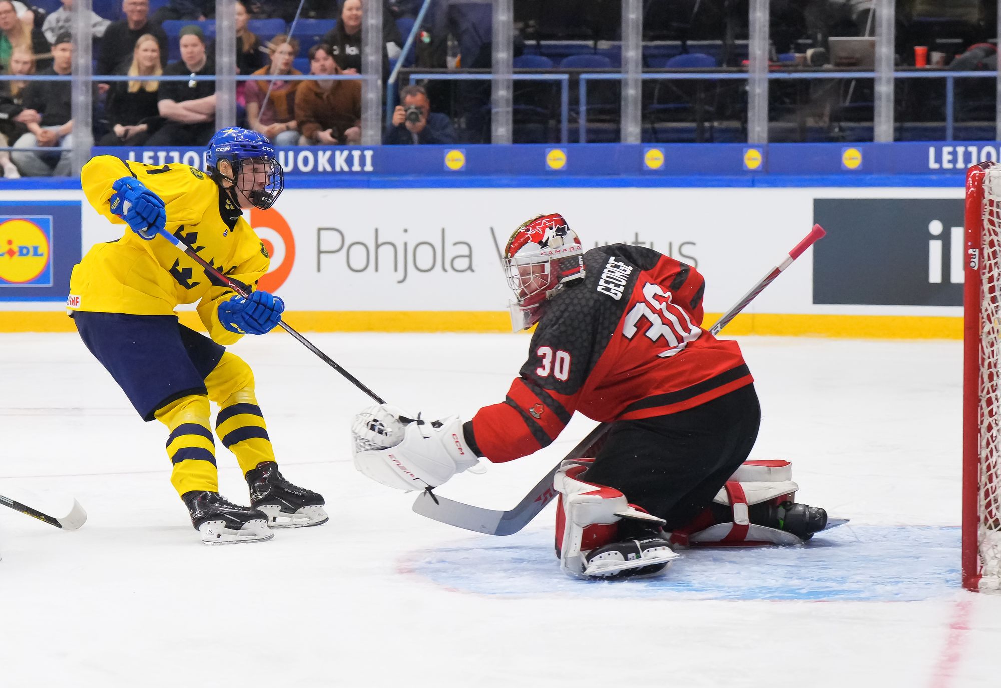 Canada jumped out to a 4-0 first period lead and led 5-1 in the second but had to defend a one-goal lead late in the game as the Swedes never went away. Canada held on for a 5-4 win and a berth in the gold medal game at the 2024 IIHF U18 World Championship.
