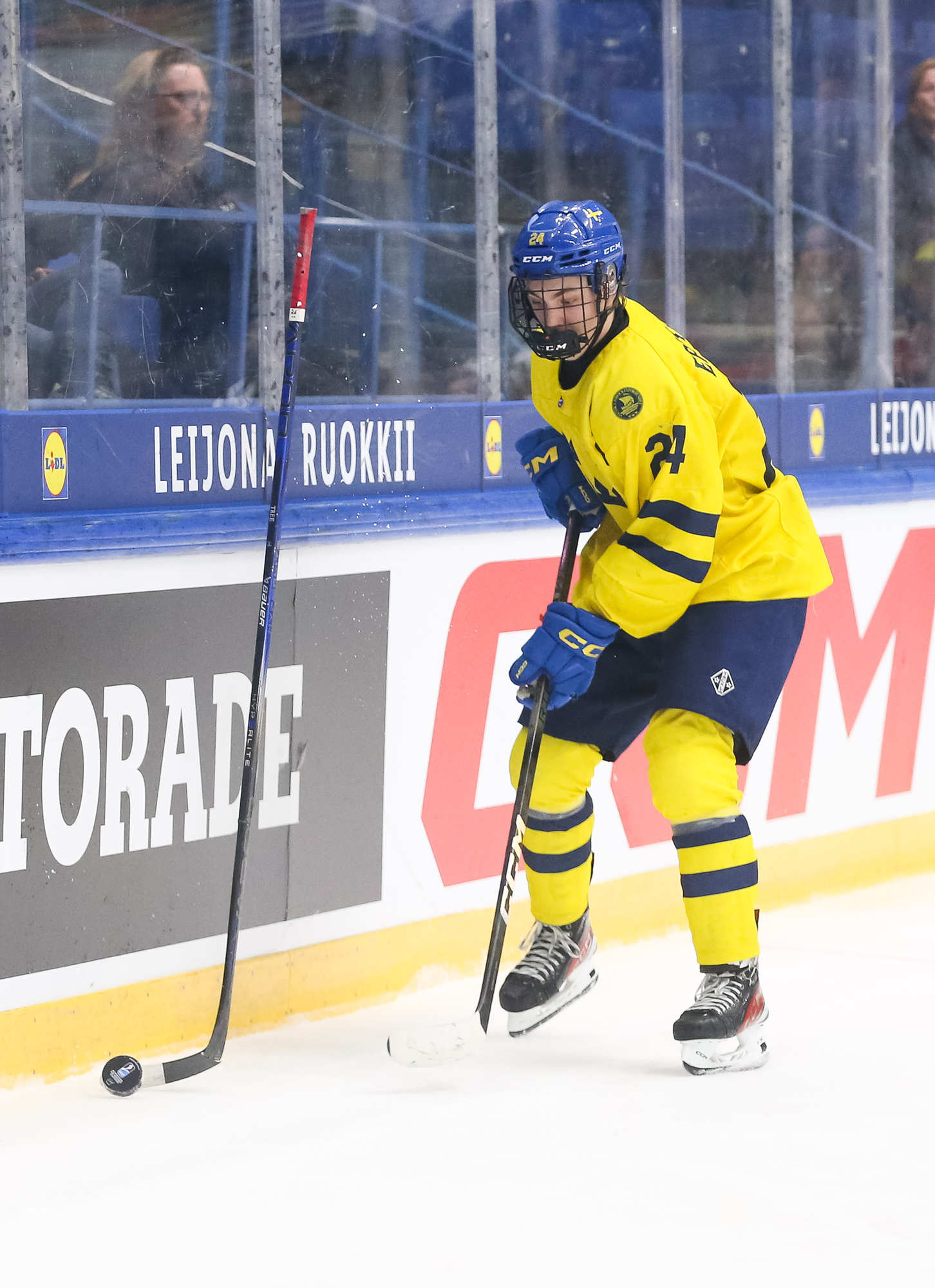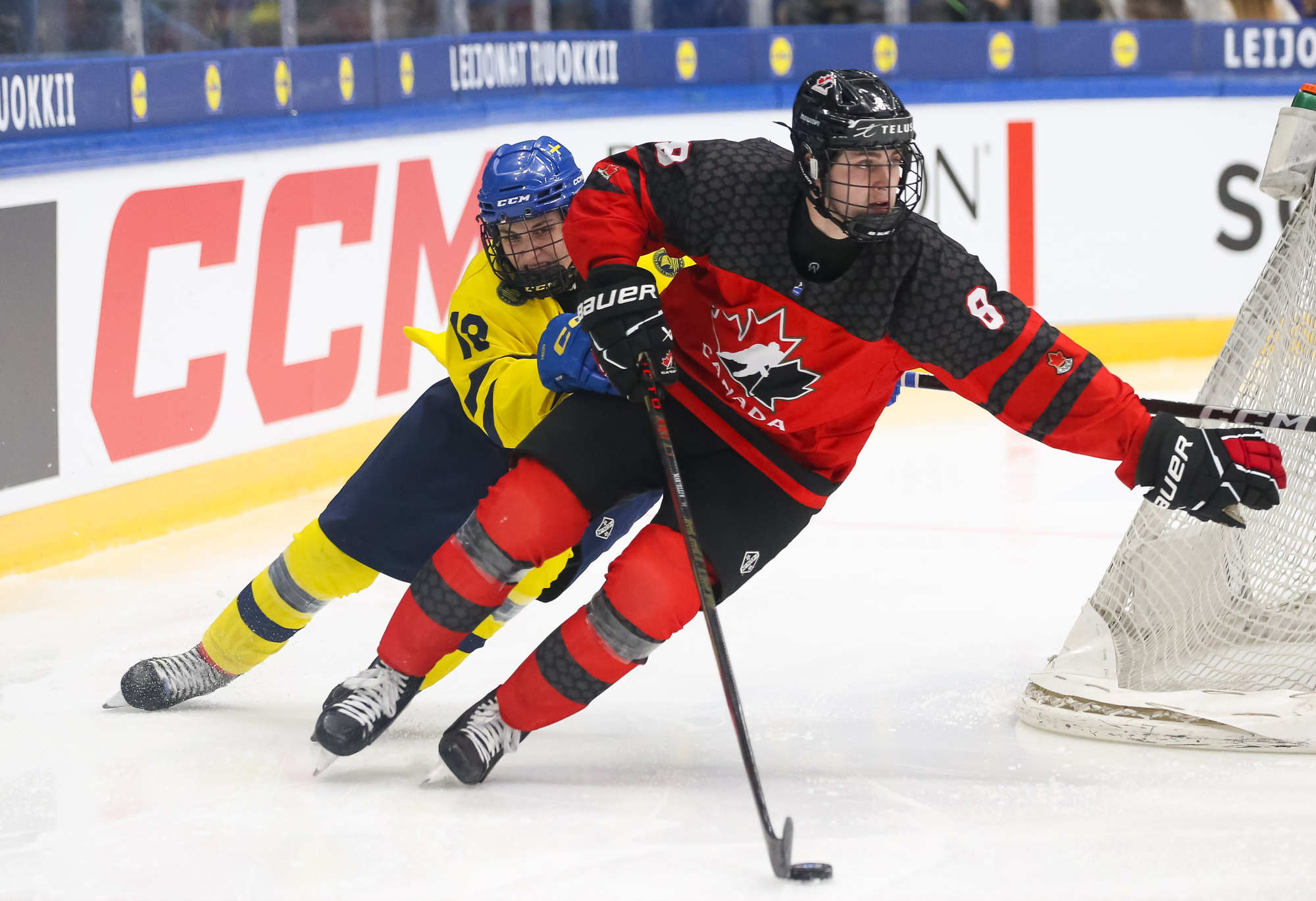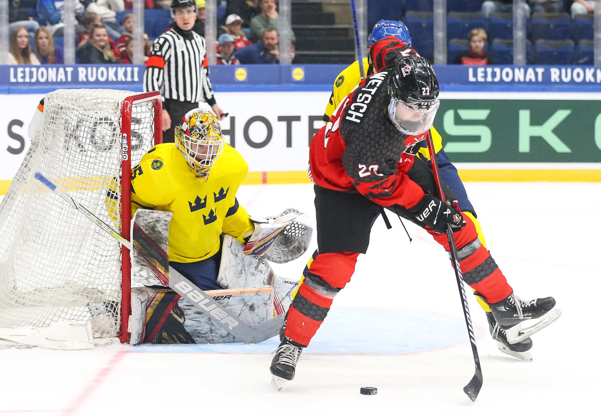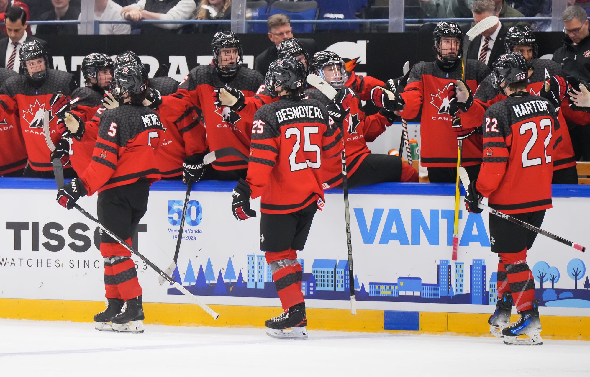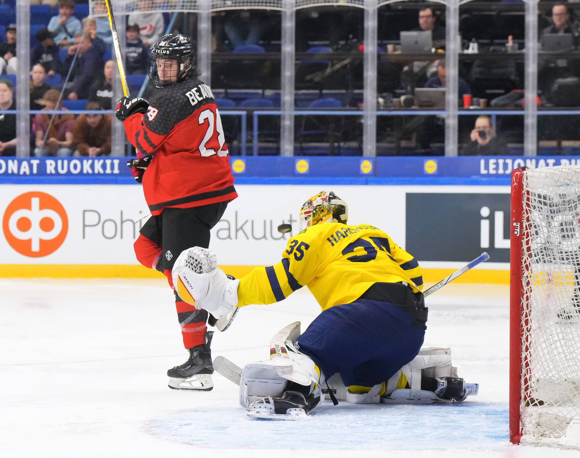 Canada jumped out to a 4-0 first period lead and led 5-1 in the second but had to defend a one-goal lead late in the game as the Swedes never went away. Canada held on for a 5-4 win and a berth in the gold medal game at the 2024 IIHF U18 World Championship.