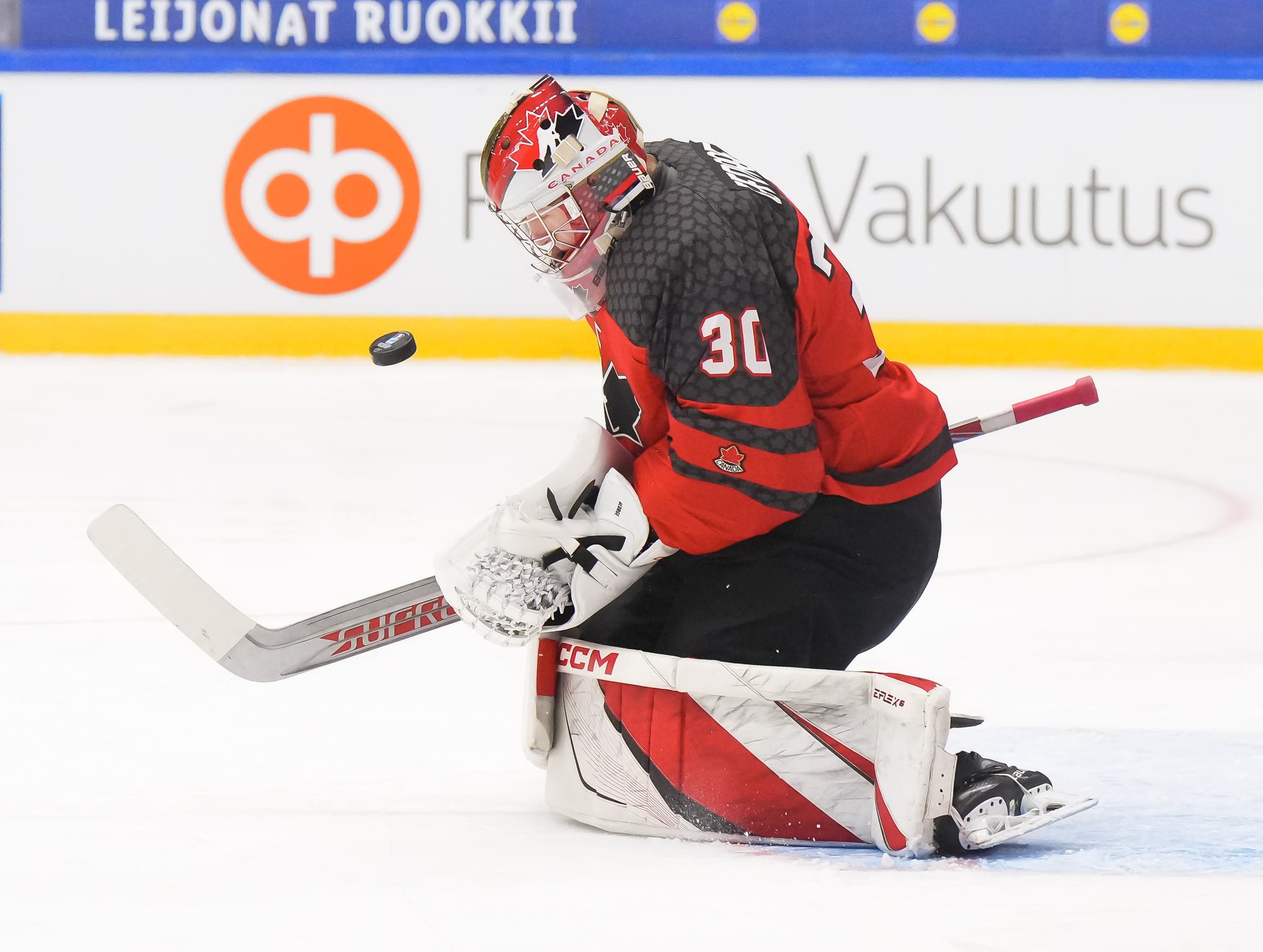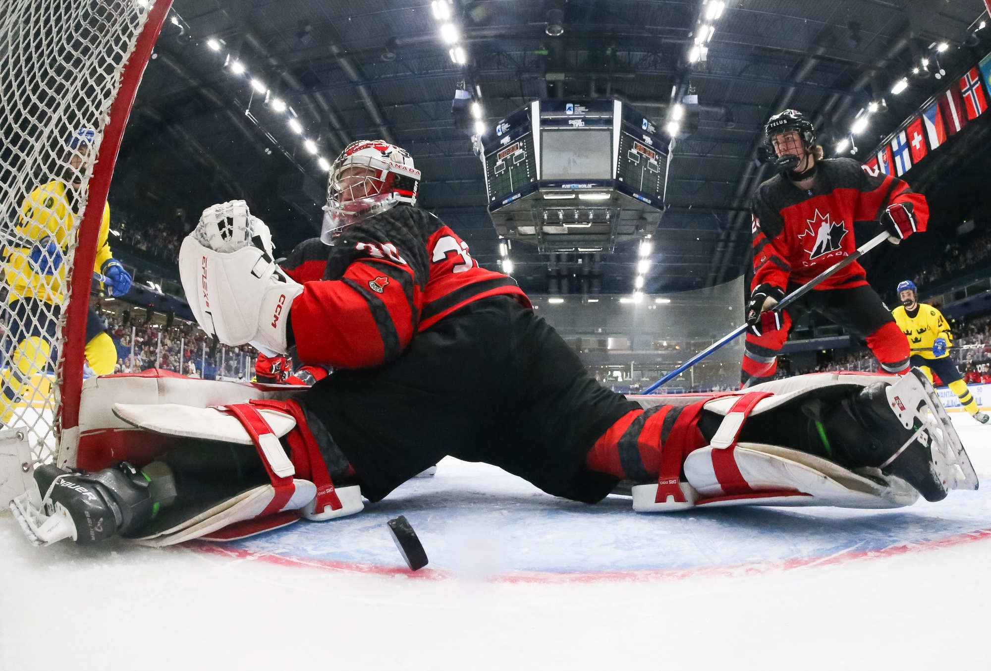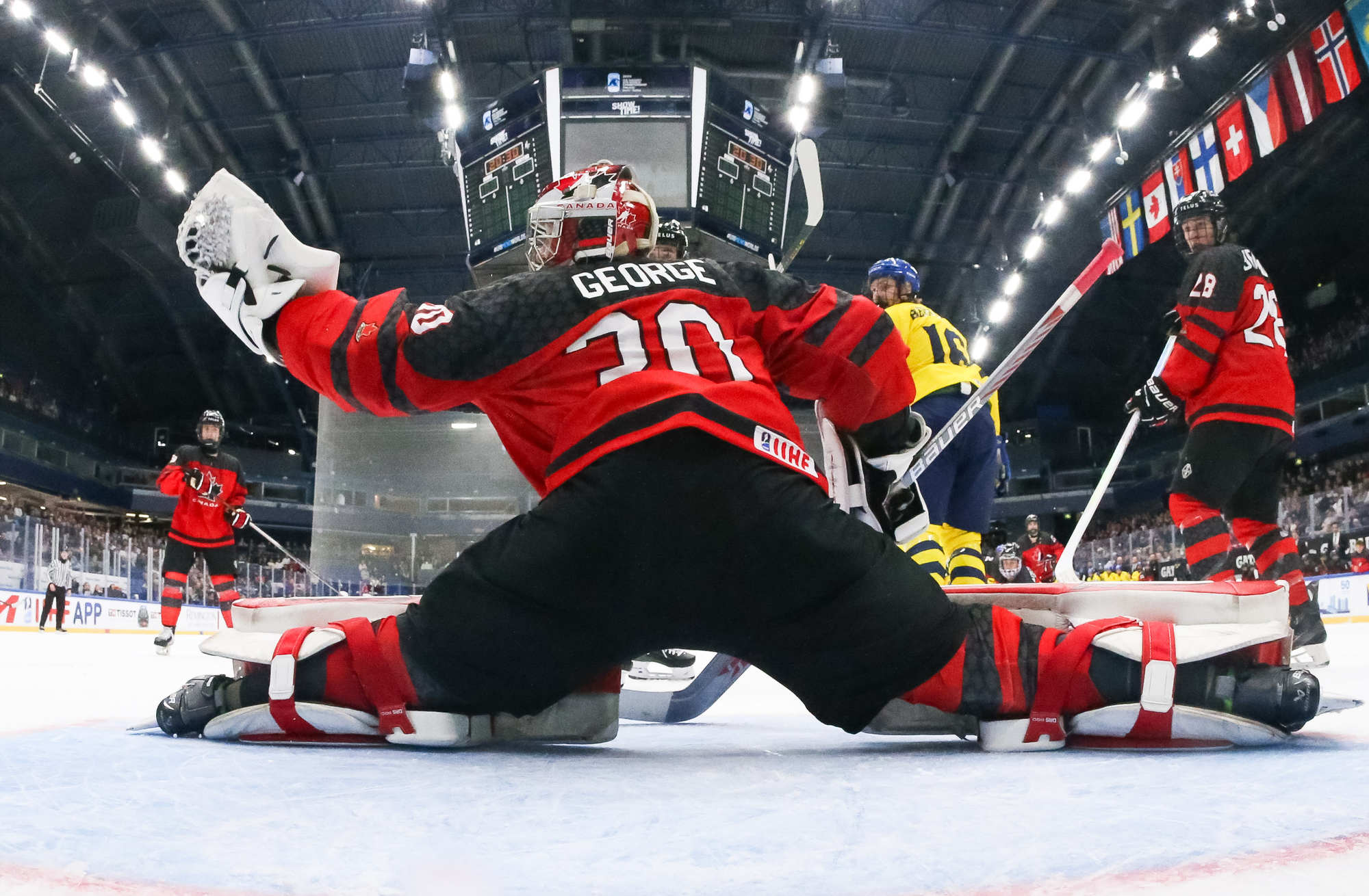 George made his best save of the game moments later as he robbed Lucas Pettersson with a glove save. George had Pettersson’s number all game, stopping the highly-skilled Swedish forward numerous times from in close. The Swedes outshot Canada 16-7 in the second and George was the reason Canada took a 5-2 lead into the intermission.