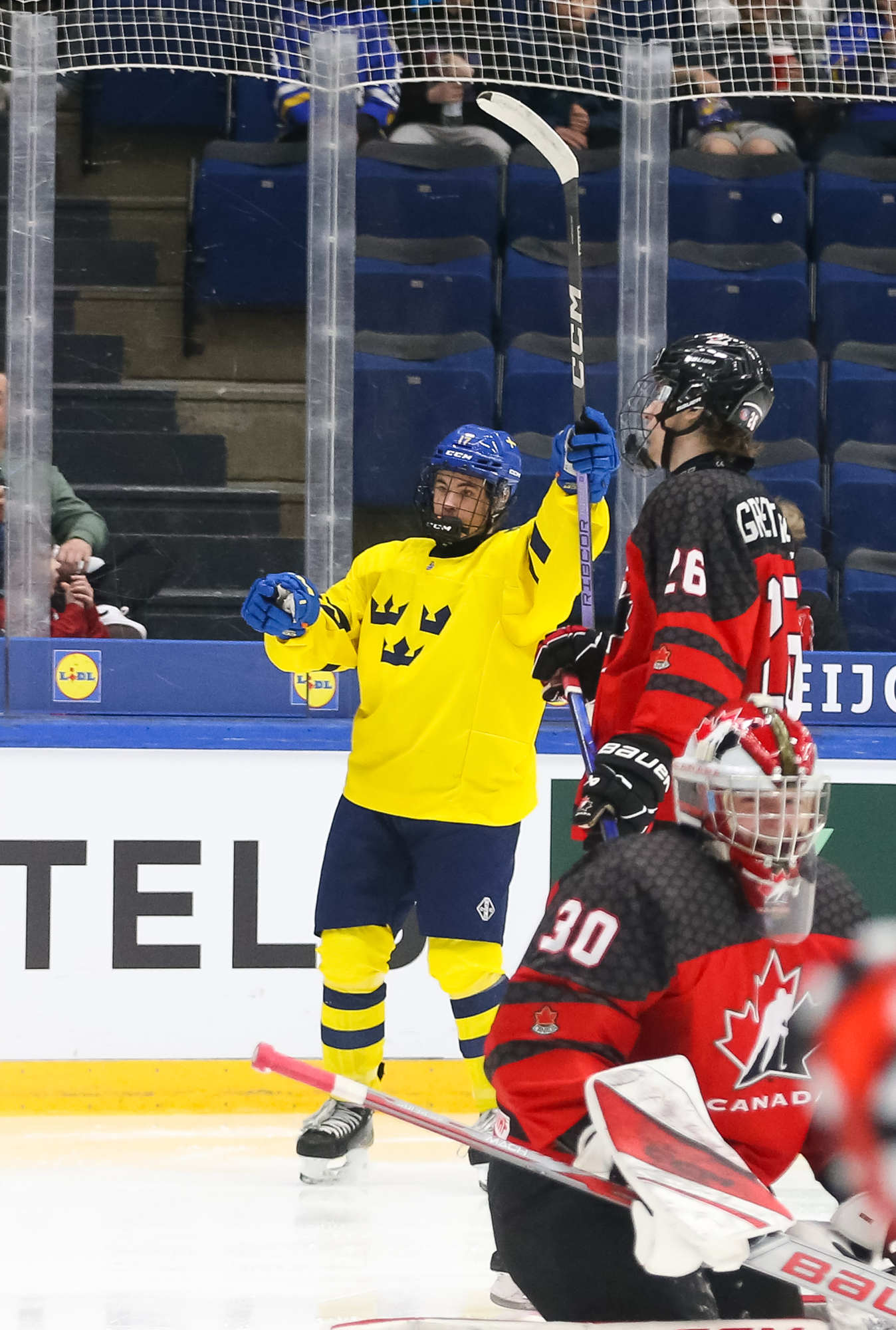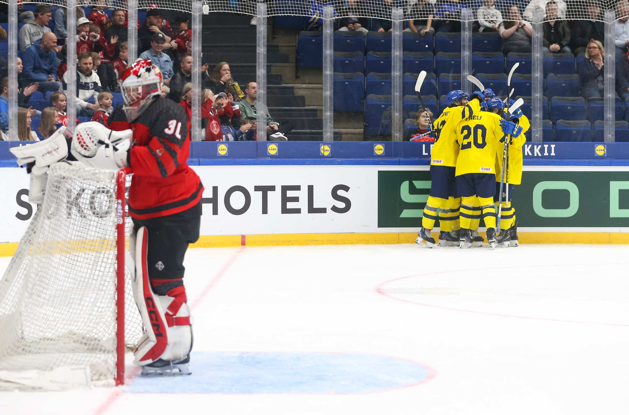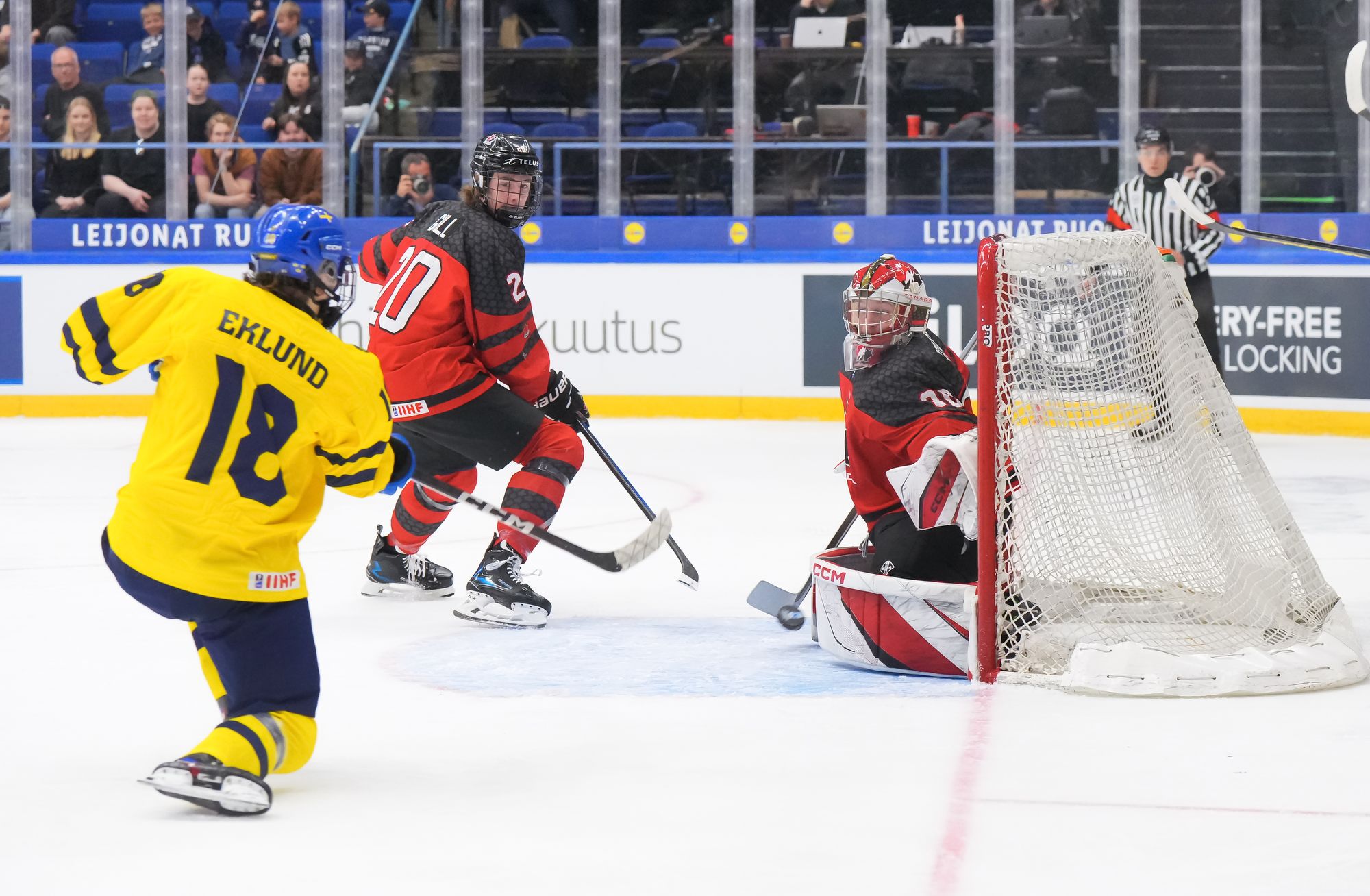 Canada led 5-2 after two periods but third-period goals by Sweden’s Victor Eklund and Hugo Orrsten caused some tense moments on the Canadian bench and kept the result in doubt until the end.