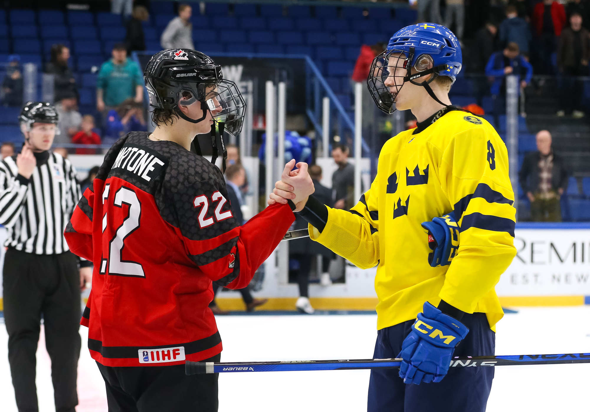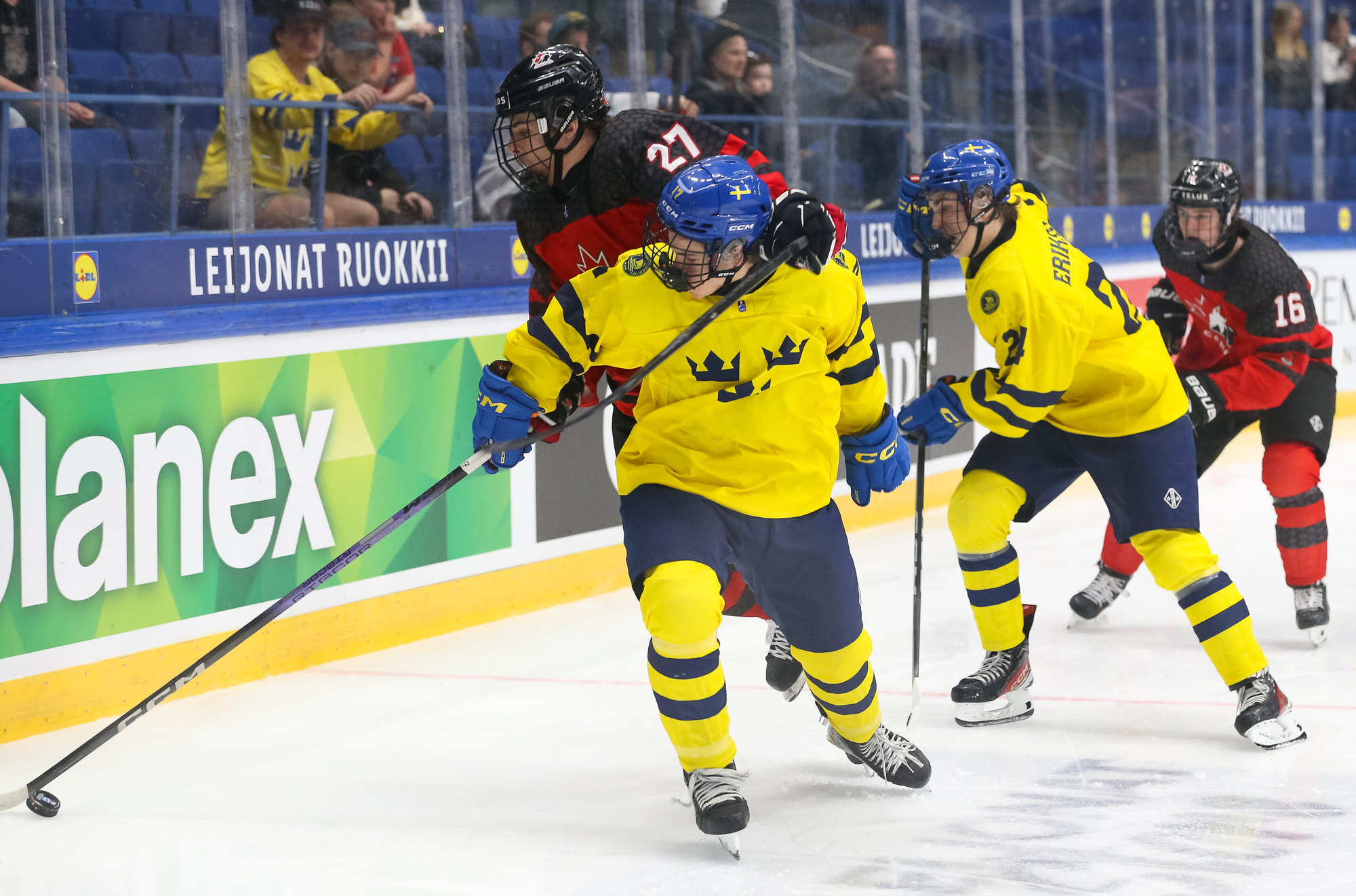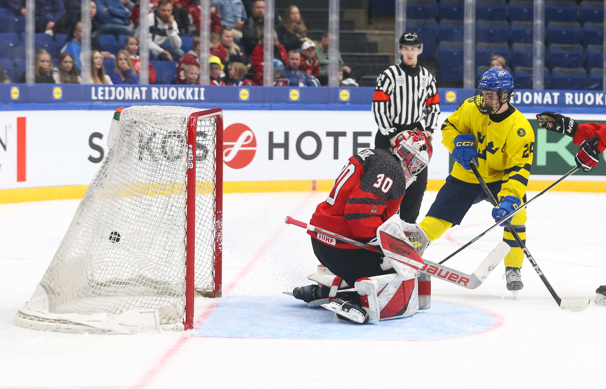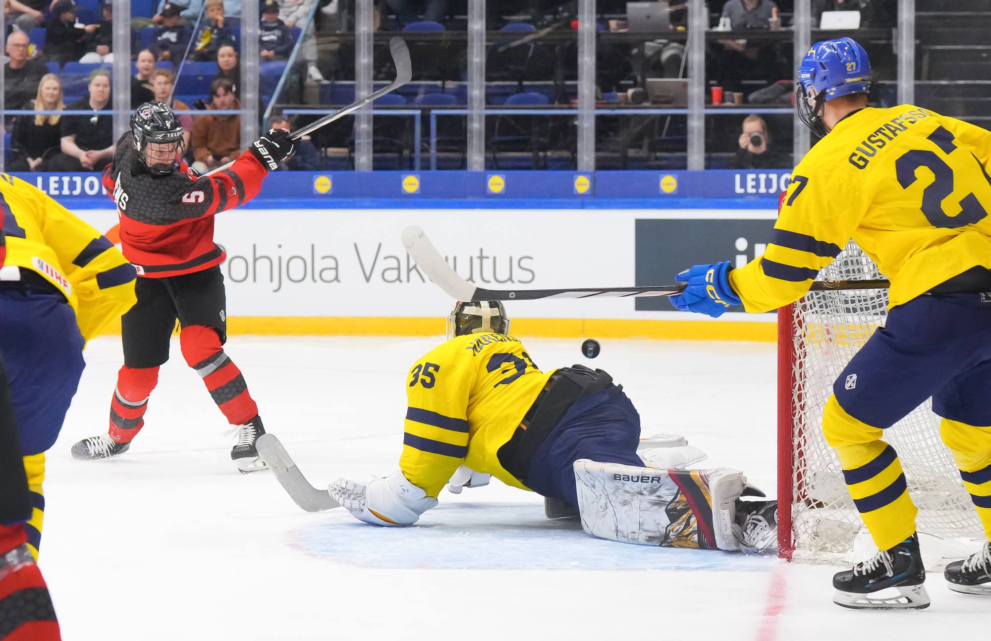Canada led 5-2 after two periods but third-period goals by Sweden’s Victor Eklund and Hugo Orrsten caused some tense moments on the Canadian bench and kept the result in doubt until the end.