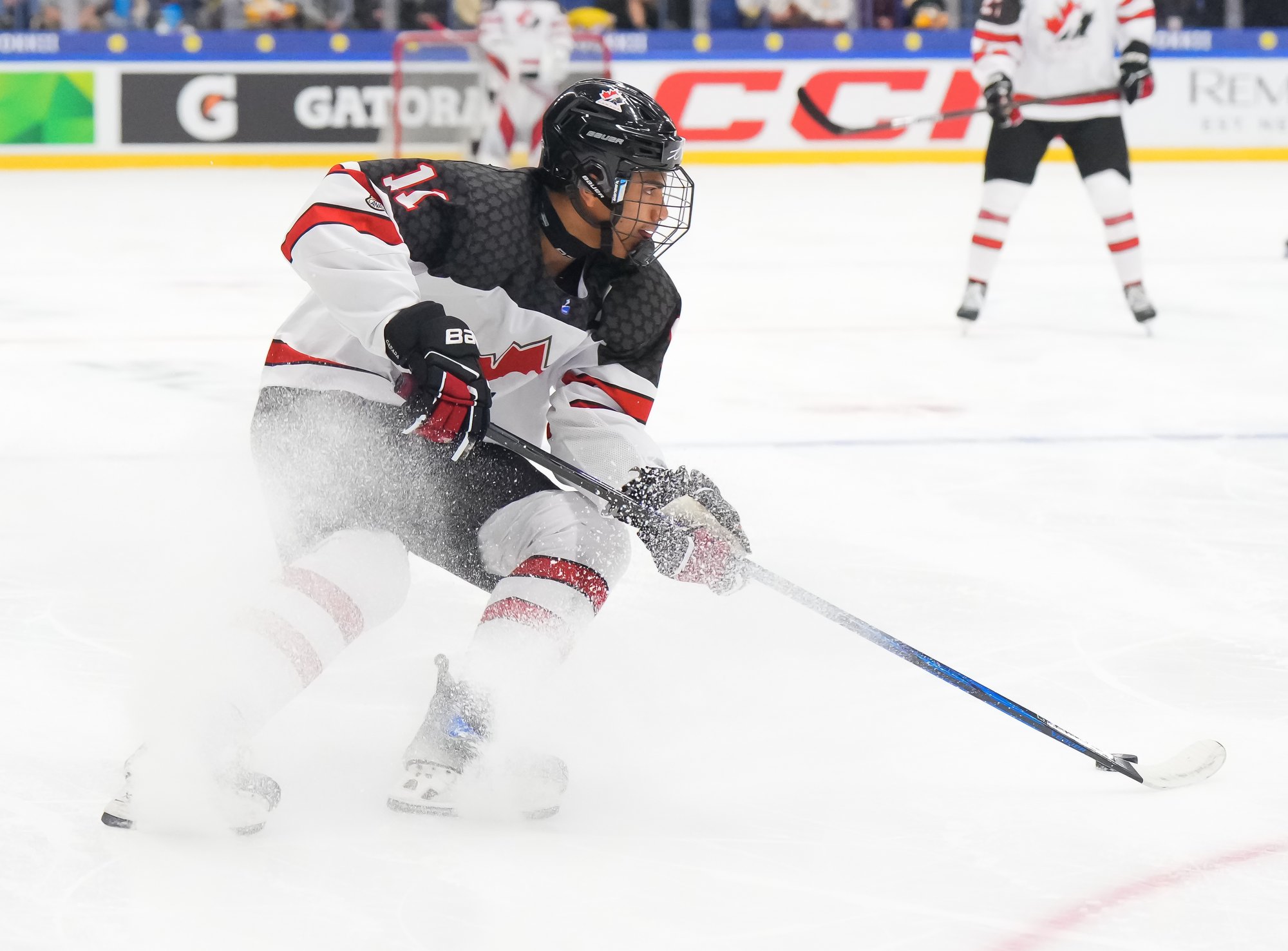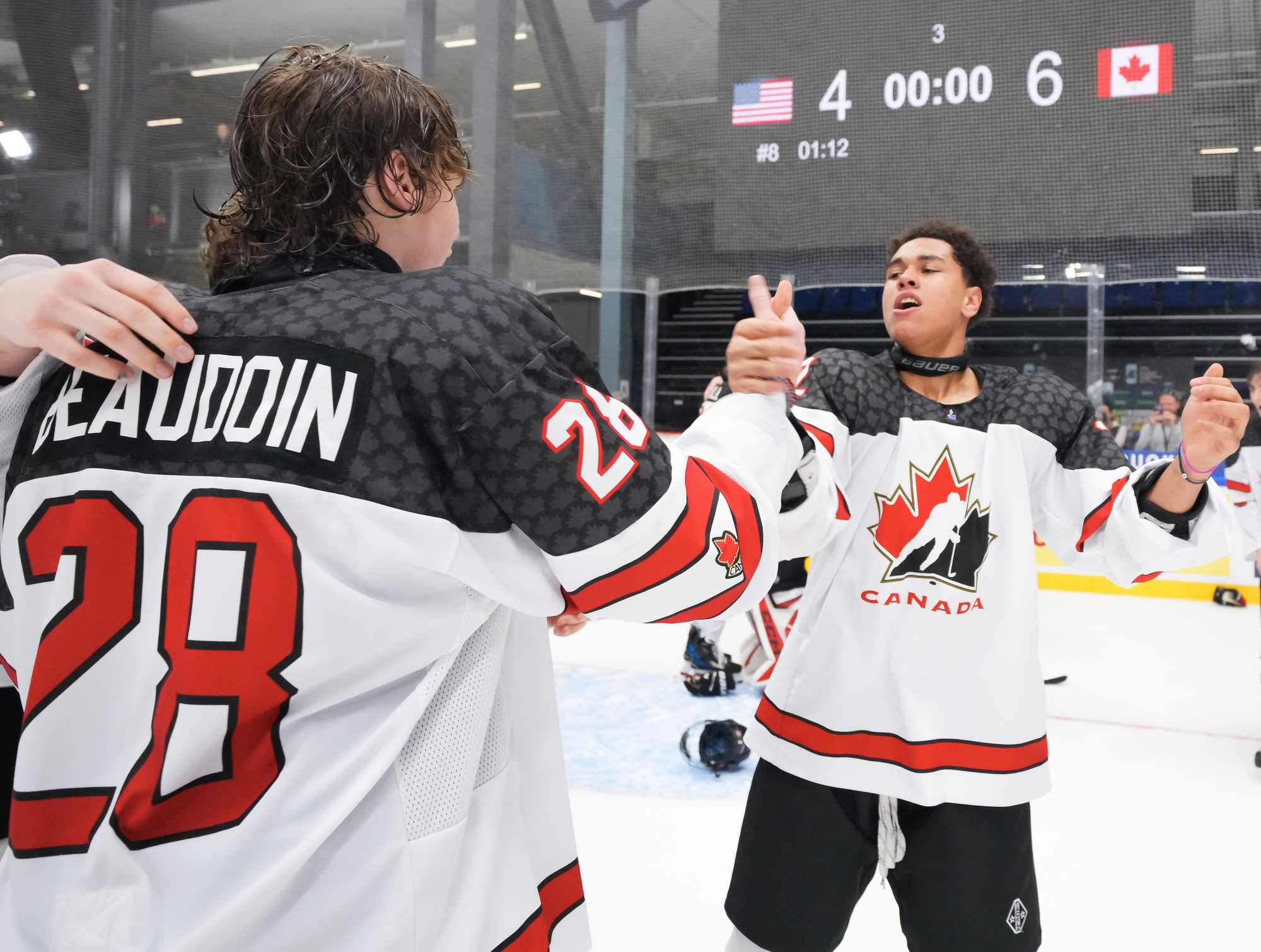 With 46 seconds left in the major, Canada went up 4-3 at 13:40 when Beaudoin barged to the net to finish off a passing play with Ritchie and Jett Luchanko.