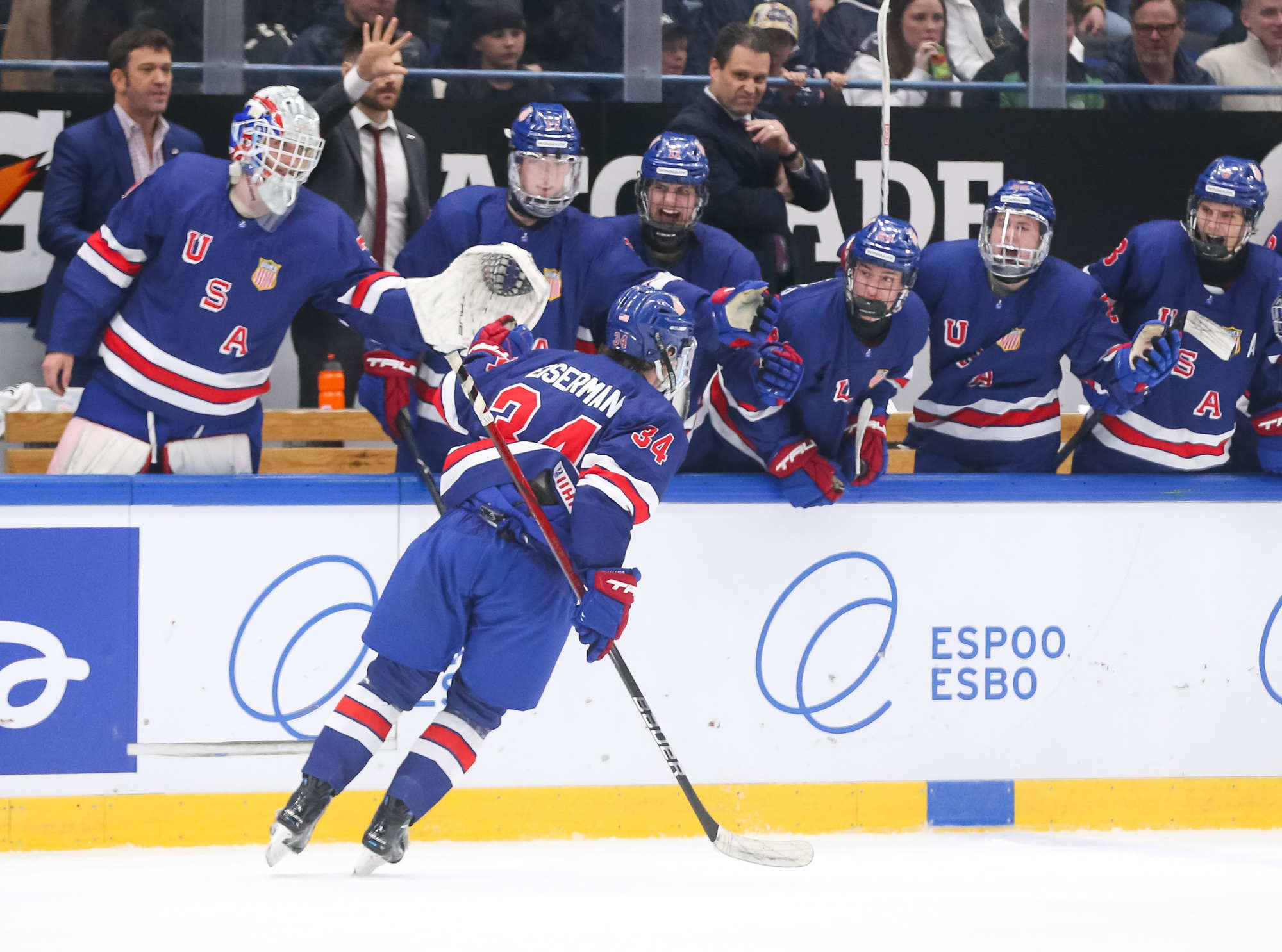 The U.S., which came in with the tournament's top power play (52 percent), struck back three minutes later. With Martone serving a high-sticking minor, Eiserman finally converted a Hutson feed with his deadly one-timer. It lifted him past Cole Caufield for the all-time USA Hockey National Team Development Program lead (127 to 126).
