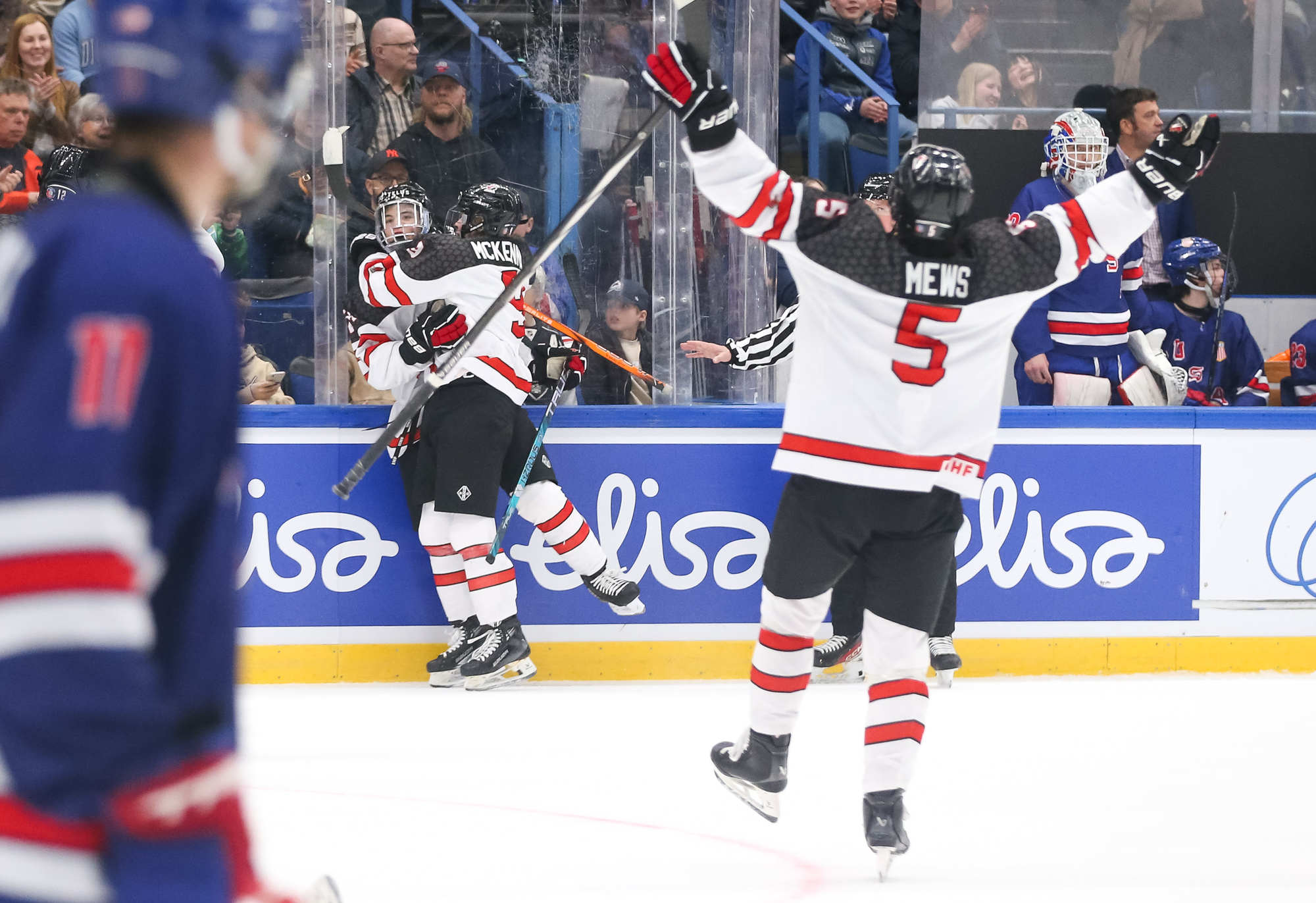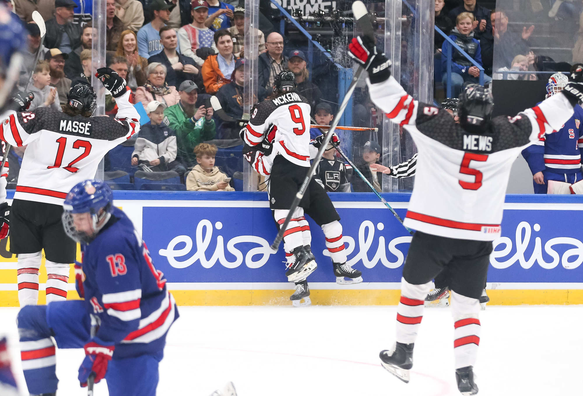 With under three minutes to play, the U.S. pulled Kempf for the extra attacker. However, McKenna completed his hat trick with the empty-netter at 18:42, taking over the tournament goals lead (10). The Canadian party was on.