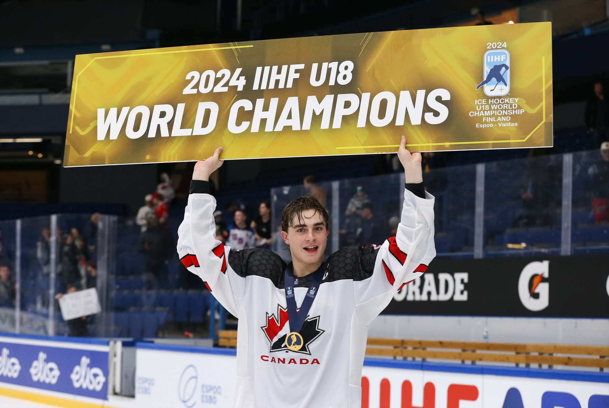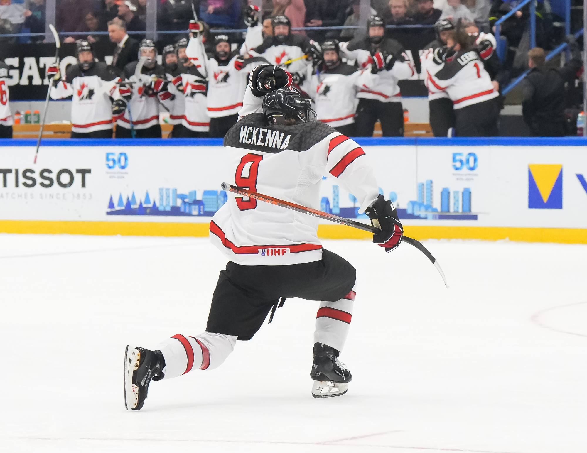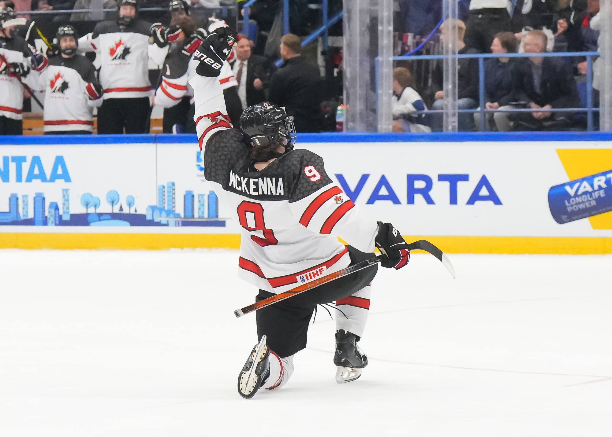 With a hat trick and assist from Gavin McKenna (#9), Canada rallied for a dramatic 6-4 gold-medal win over the U.S. at the 2024 IIHF Ice Hockey U18 World Championship in Espoo, Finland.