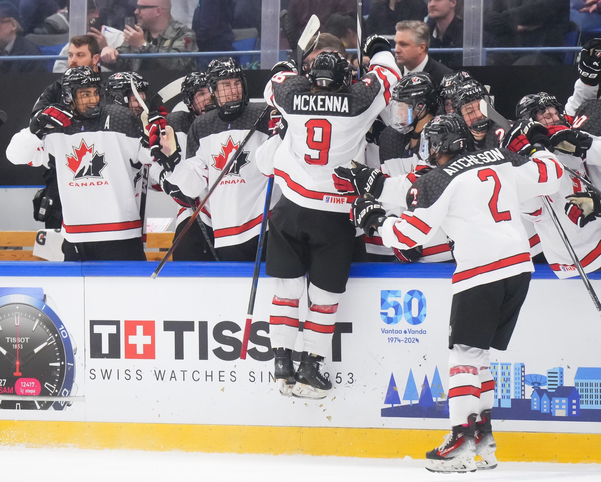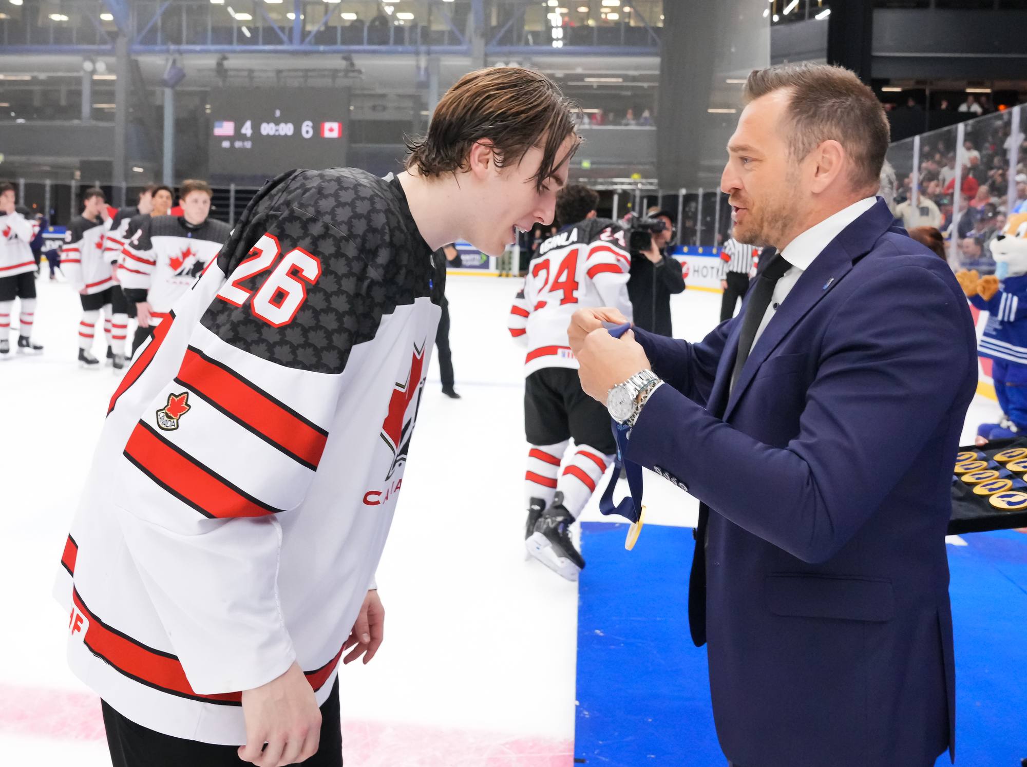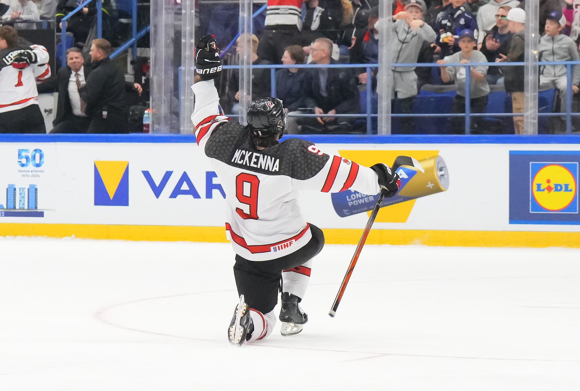 With a hat trick and assist from Gavin McKenna (#9), Canada rallied for a dramatic 6-4 gold-medal win over the U.S. at the 2024 IIHF Ice Hockey U18 World Championship in Espoo, Finland.
