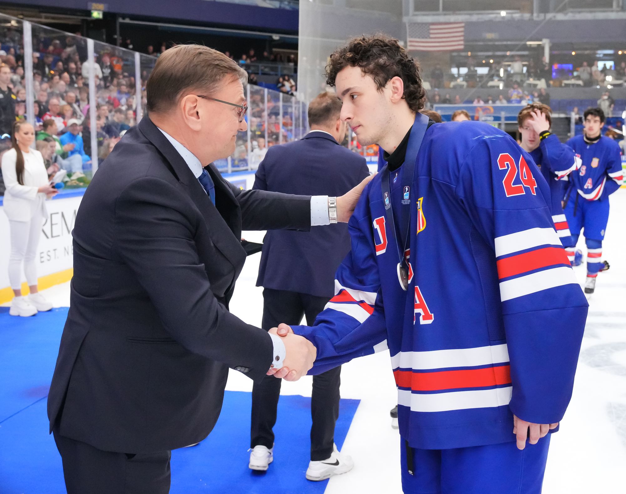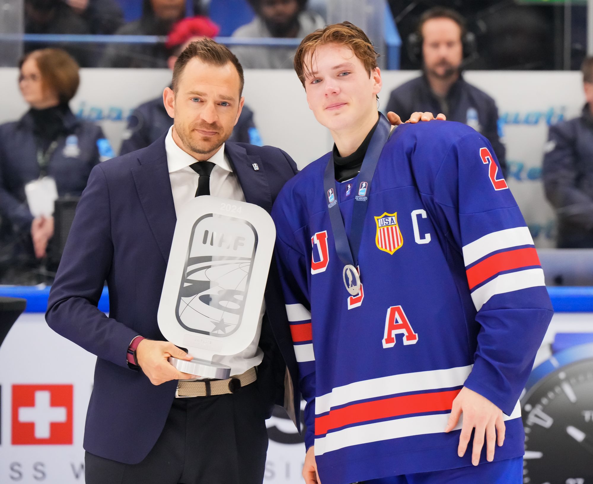 The U.S.'s James Hagens, named MVP, was held pointless in the final. The 17-year-old centre finished with a tournament-high, all-time record 22 points, followed closely by McKenna, who had 20 points.