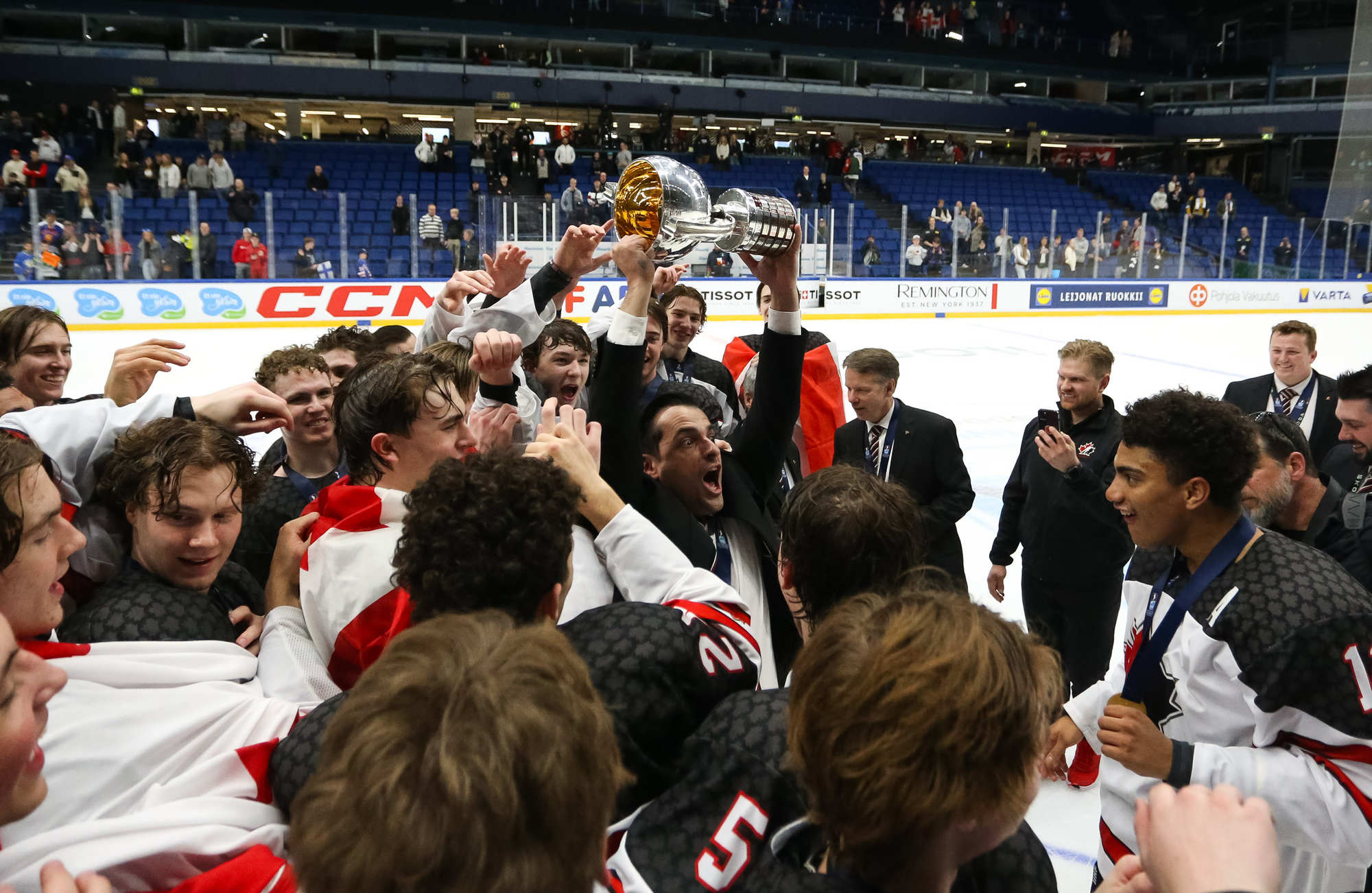 It’s Canada’s fifth U18 Worlds gold medal ever, moving the motherland of hockey one up on host Finland (four). Canada last won in 2021. The Americans remain tops with 11 gold medals in total.