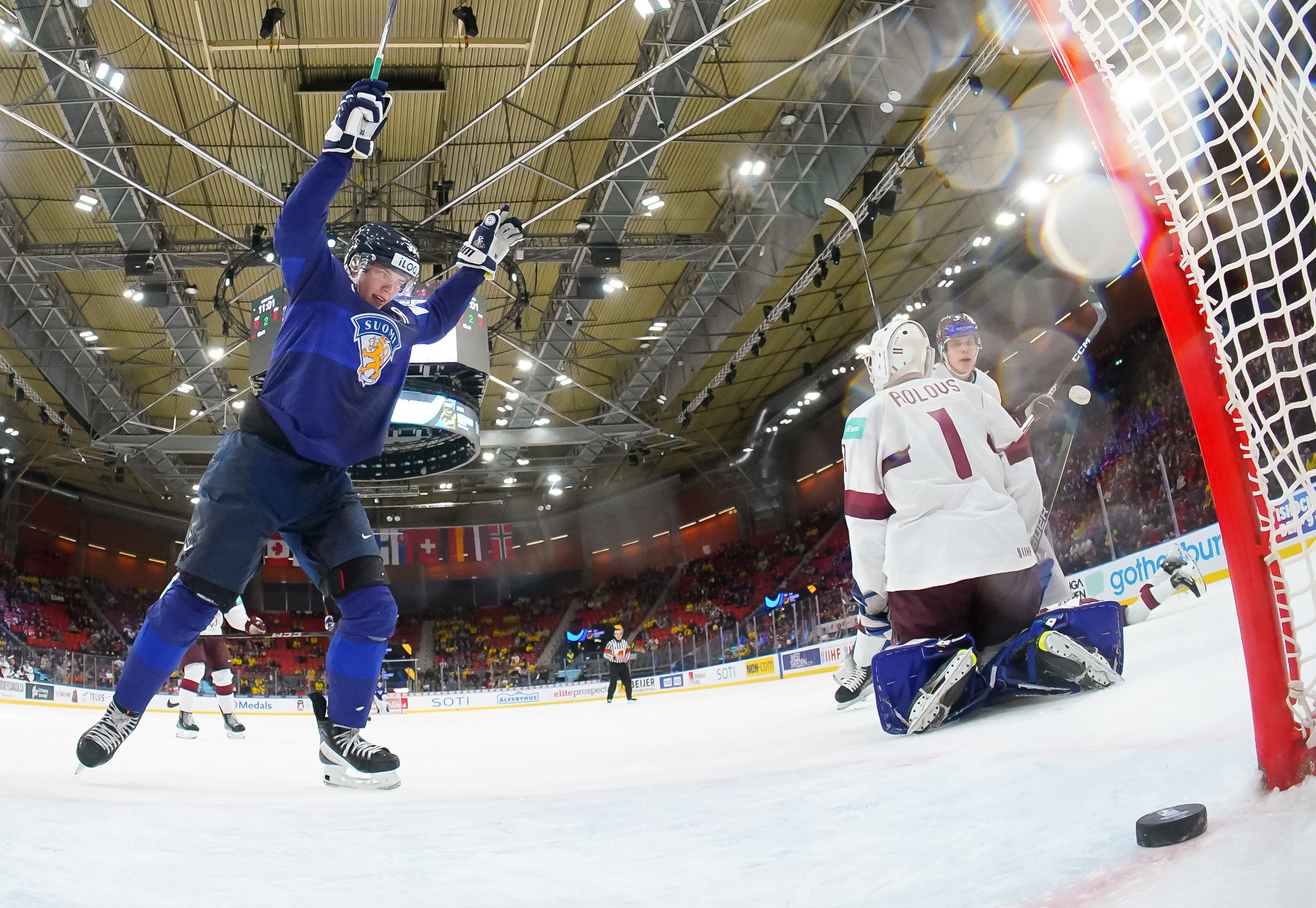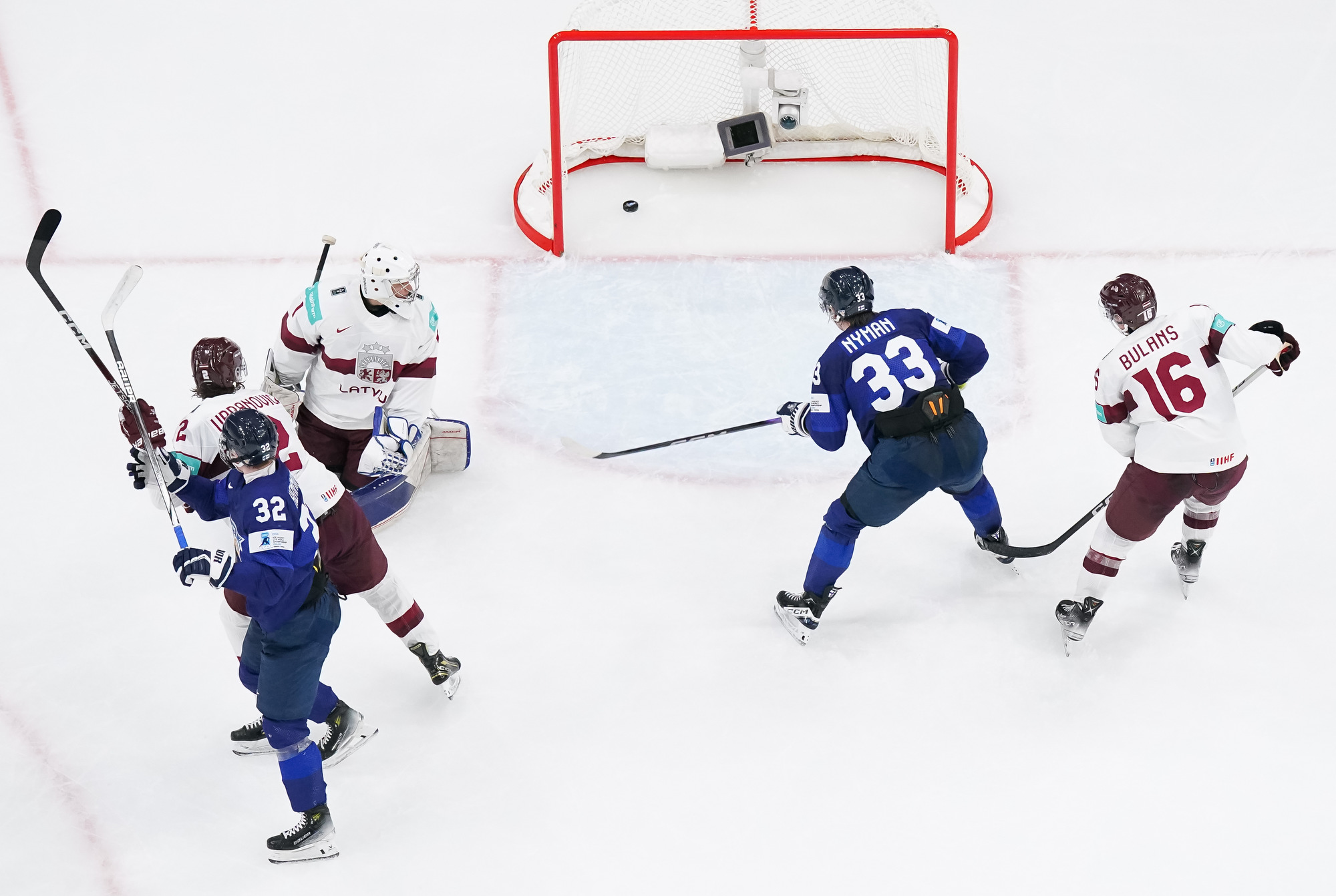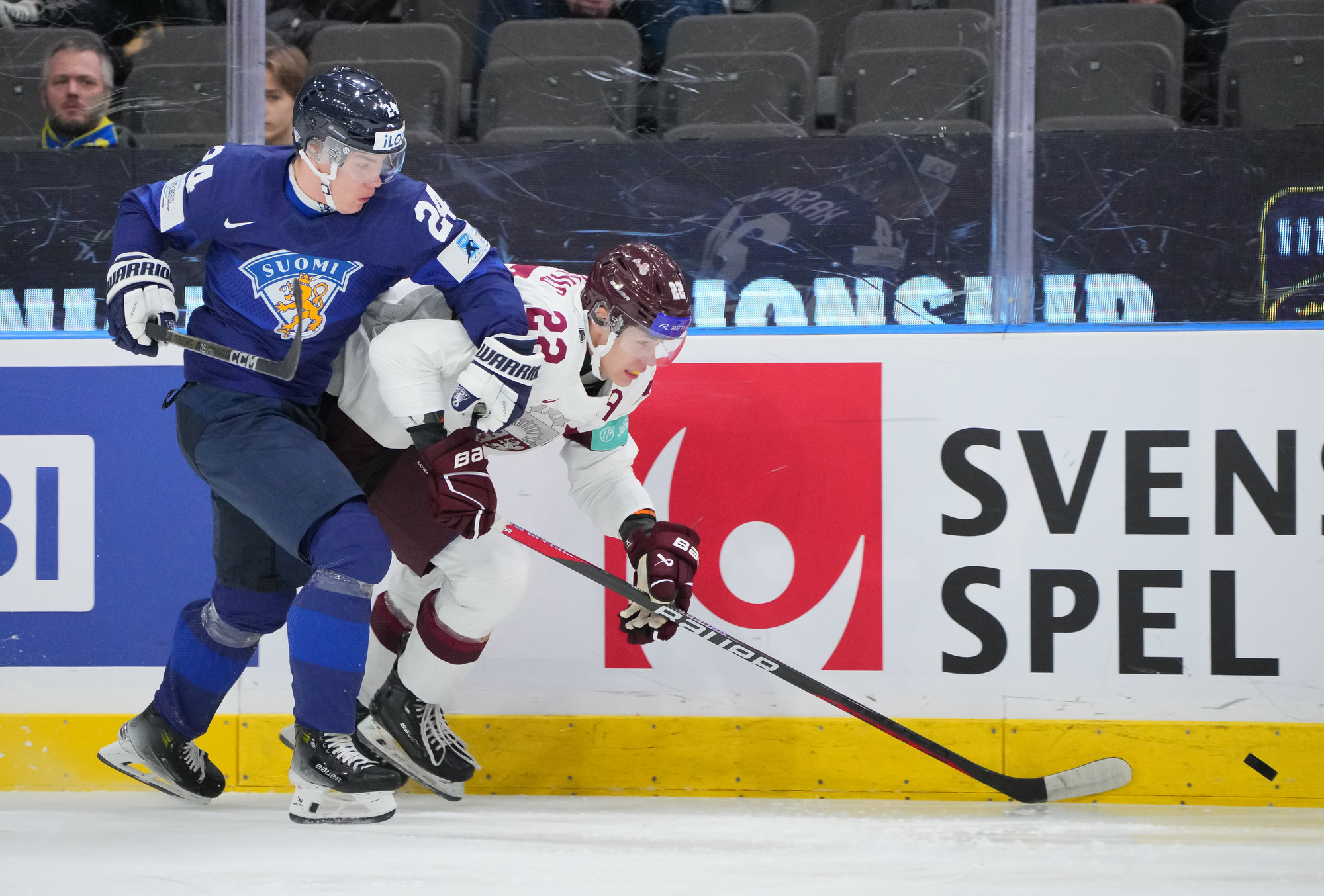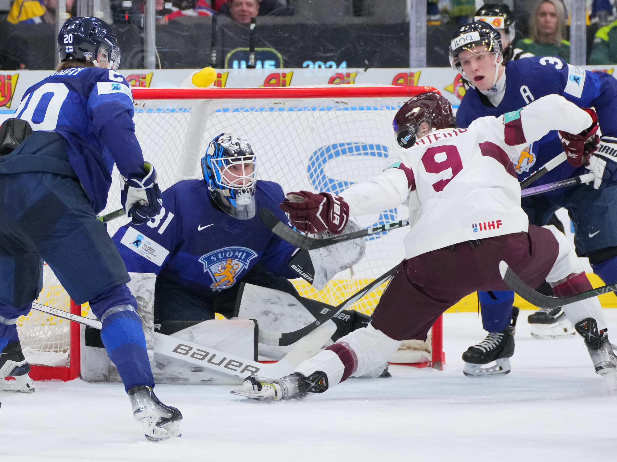 The way Latvia was dominated by the Finns in the opening period was a good primer as to why they had yet to score. Suomi won the puck battles and controlled play inside the Latvia blueline at will, and although Latvia contained Finland for a while--the game was scoreless for more than 14 minutes--it seemed just a matter of time before Finland would score.