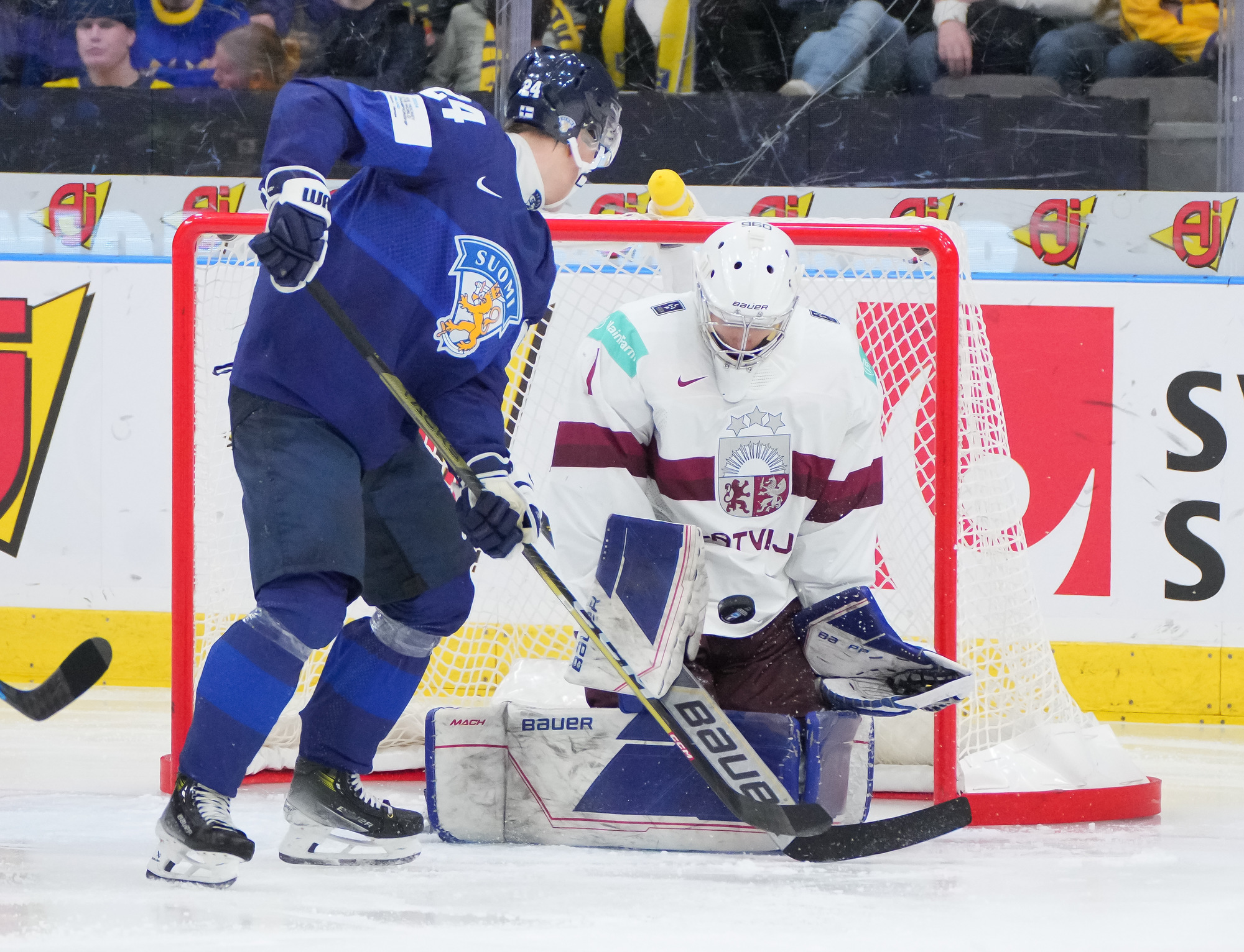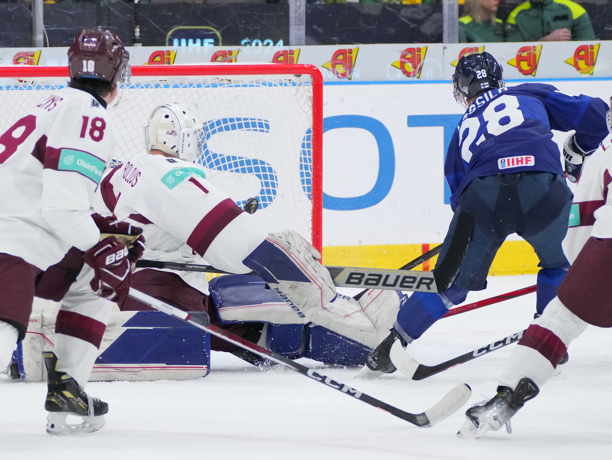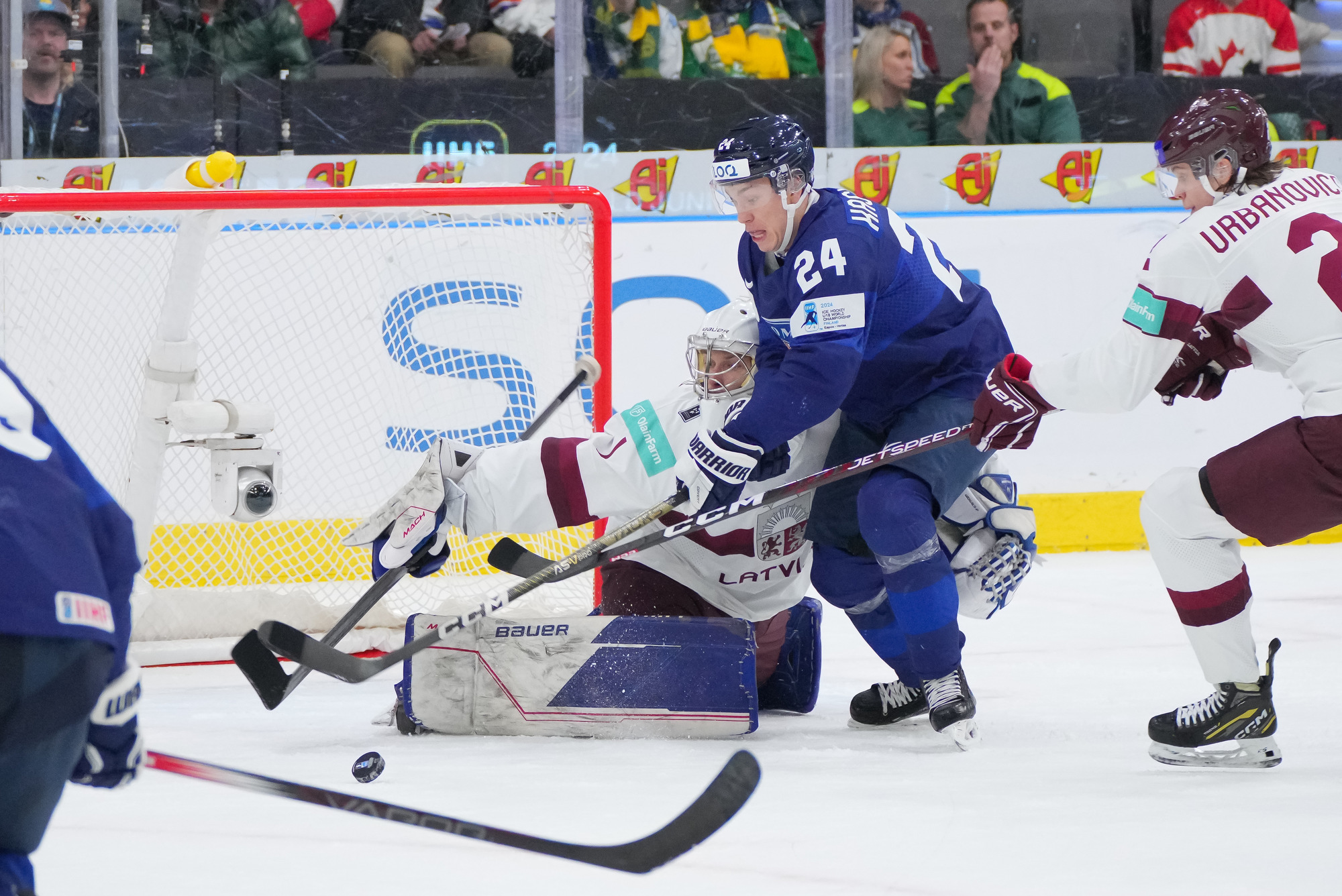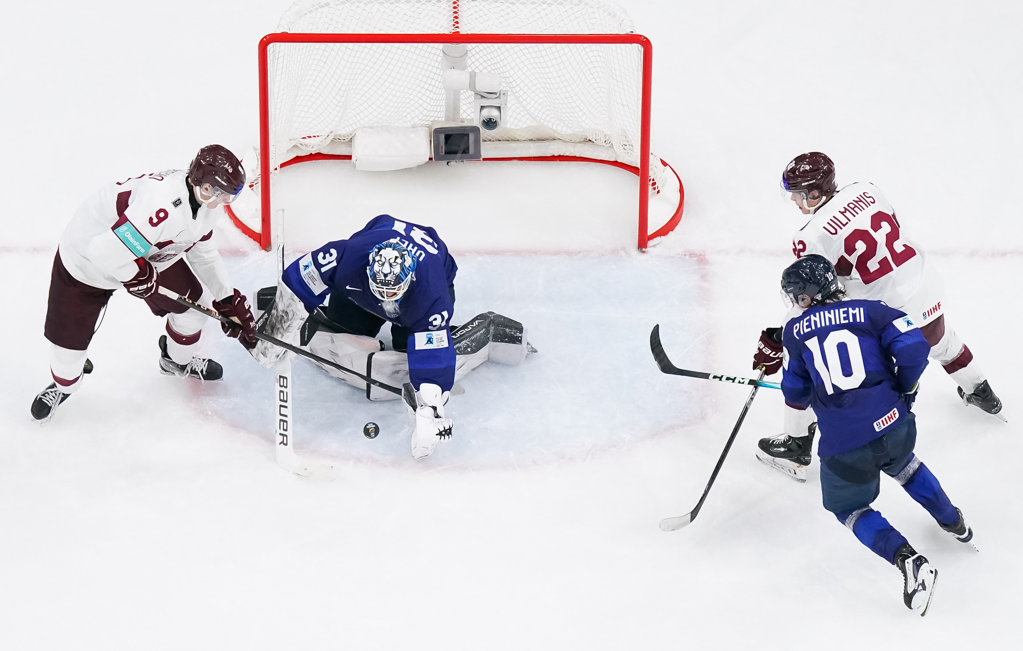That feeling became reality when Toms Mots took a double minor for high sticking. Midway through the extended power play goalie Deivs Rolovs, making his second start of the tournament, couldn’t control a Kasper Halttunen point shot and captain Jere Lassila was there to swat the rebound into the empty net at 14:15.