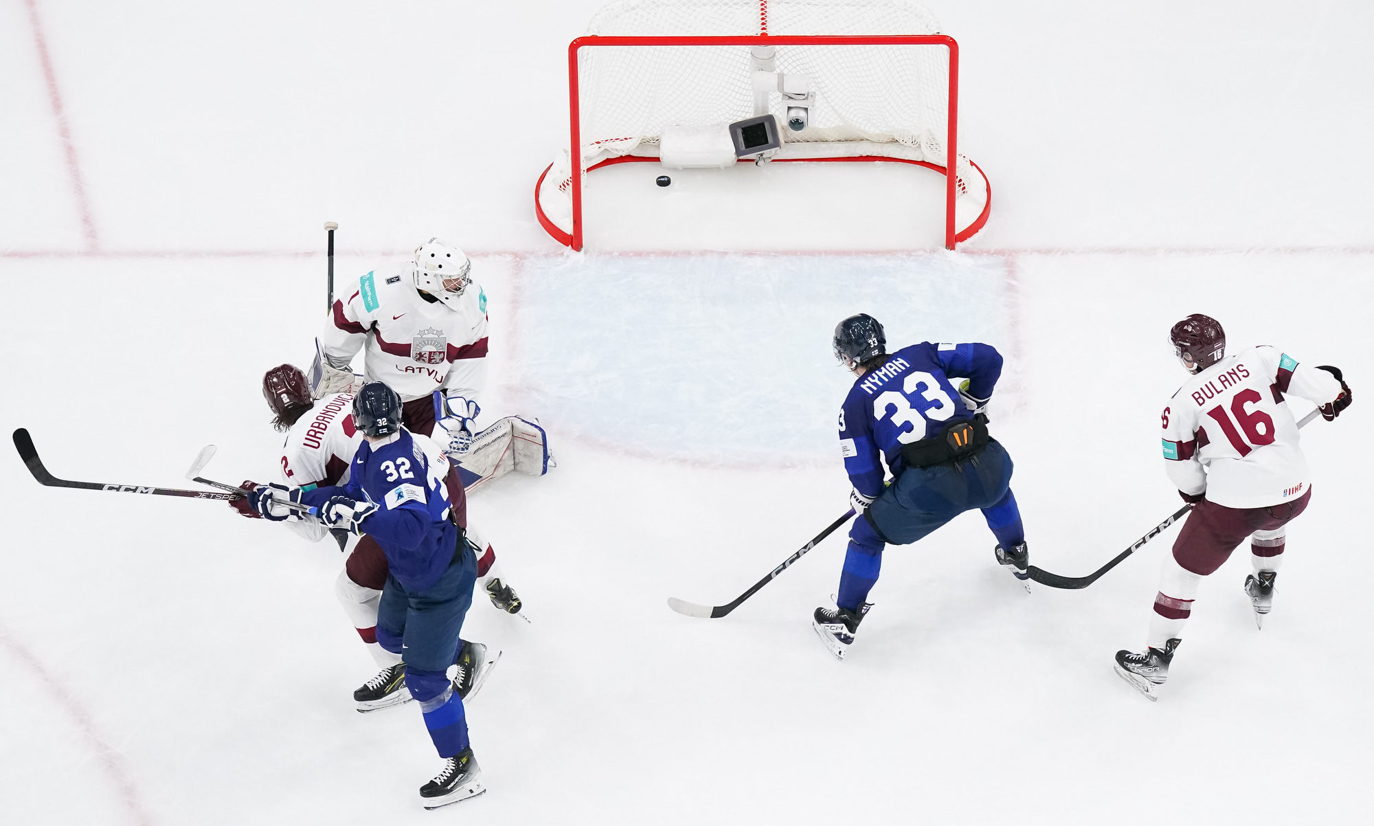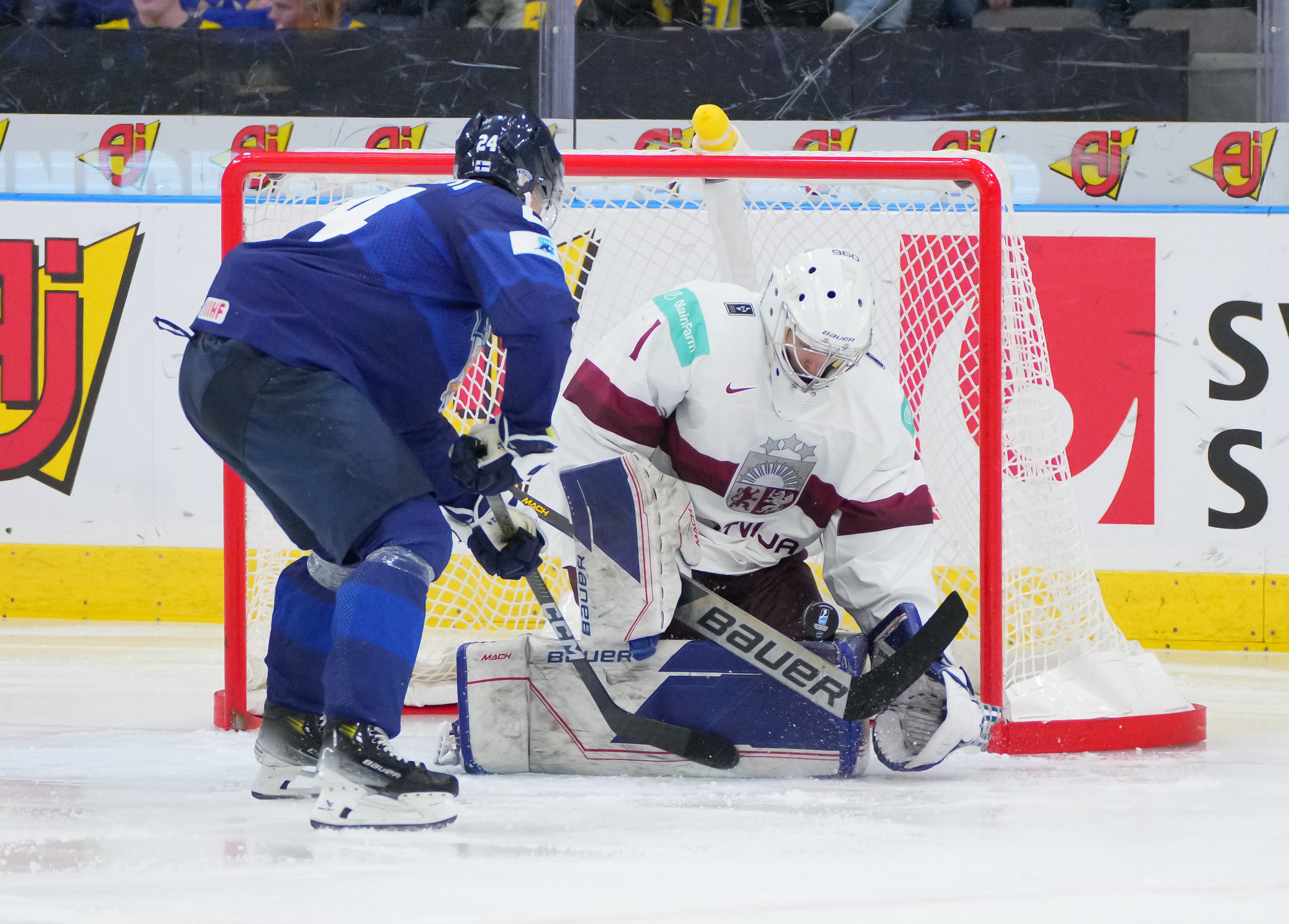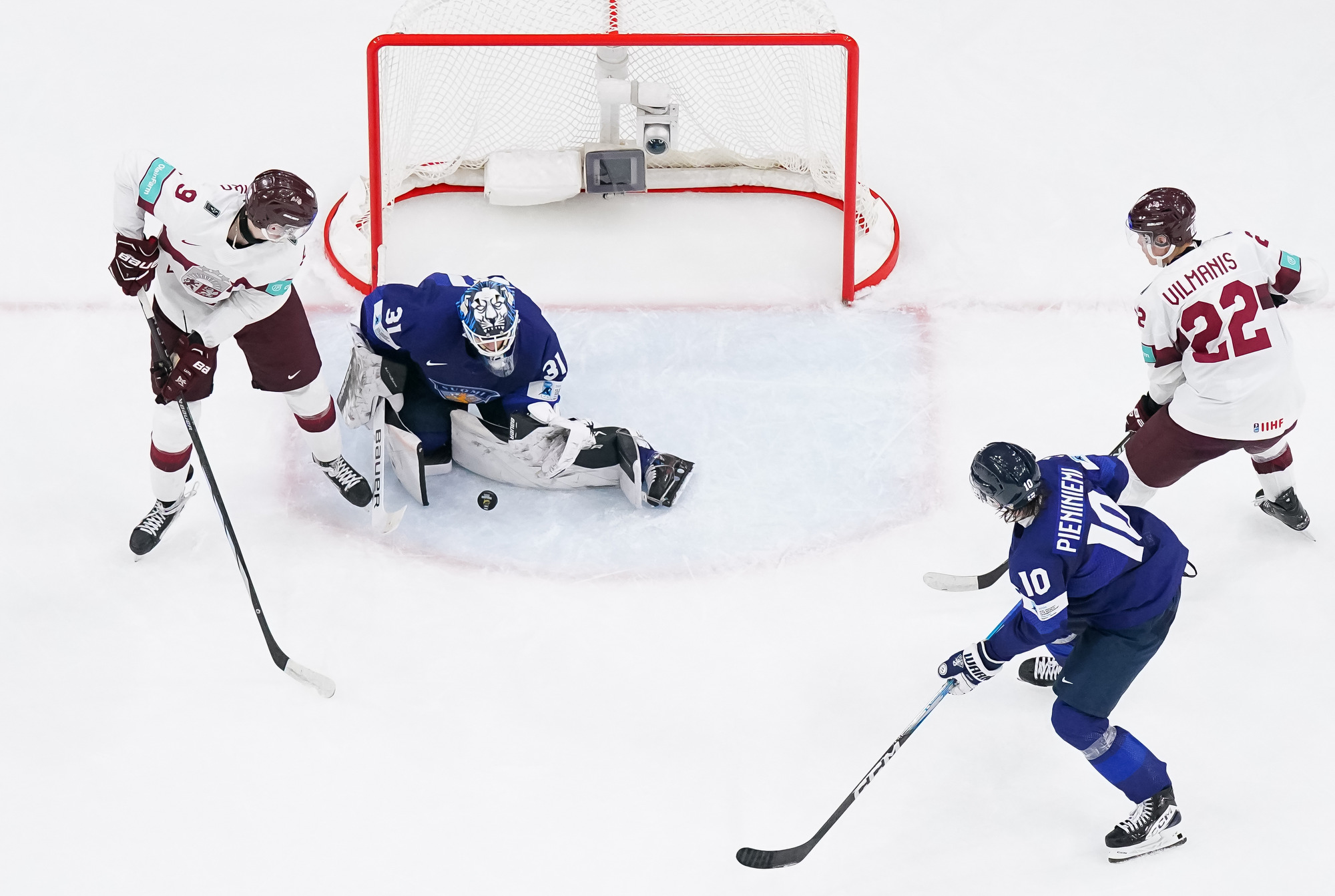 That feeling became reality when Toms Mots took a double minor for high sticking. Midway through the extended power play goalie Deivs Rolovs, making his second start of the tournament, couldn’t control a Kasper Halttunen point shot and captain Jere Lassila was there to swat the rebound into the empty net at 14:15.