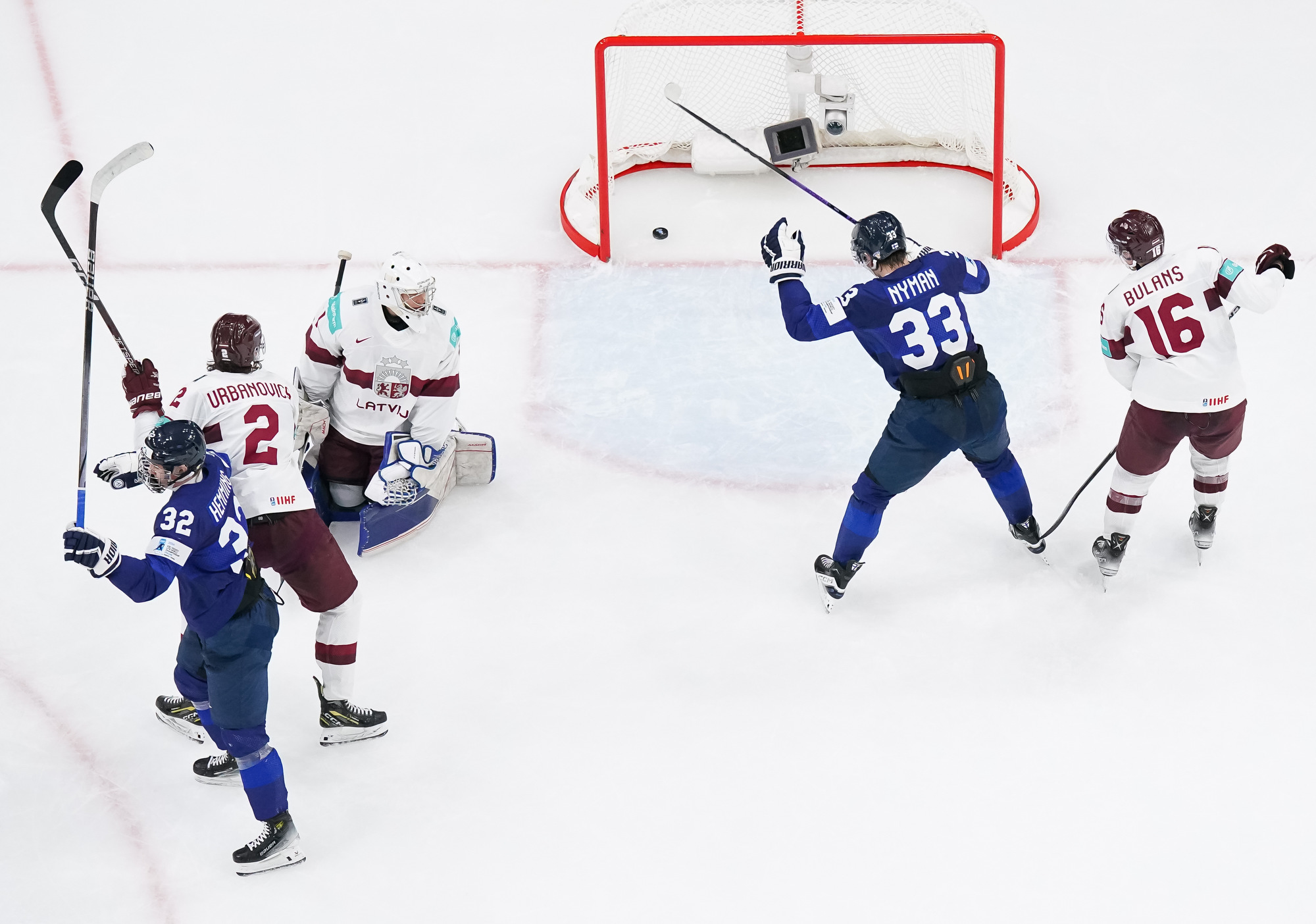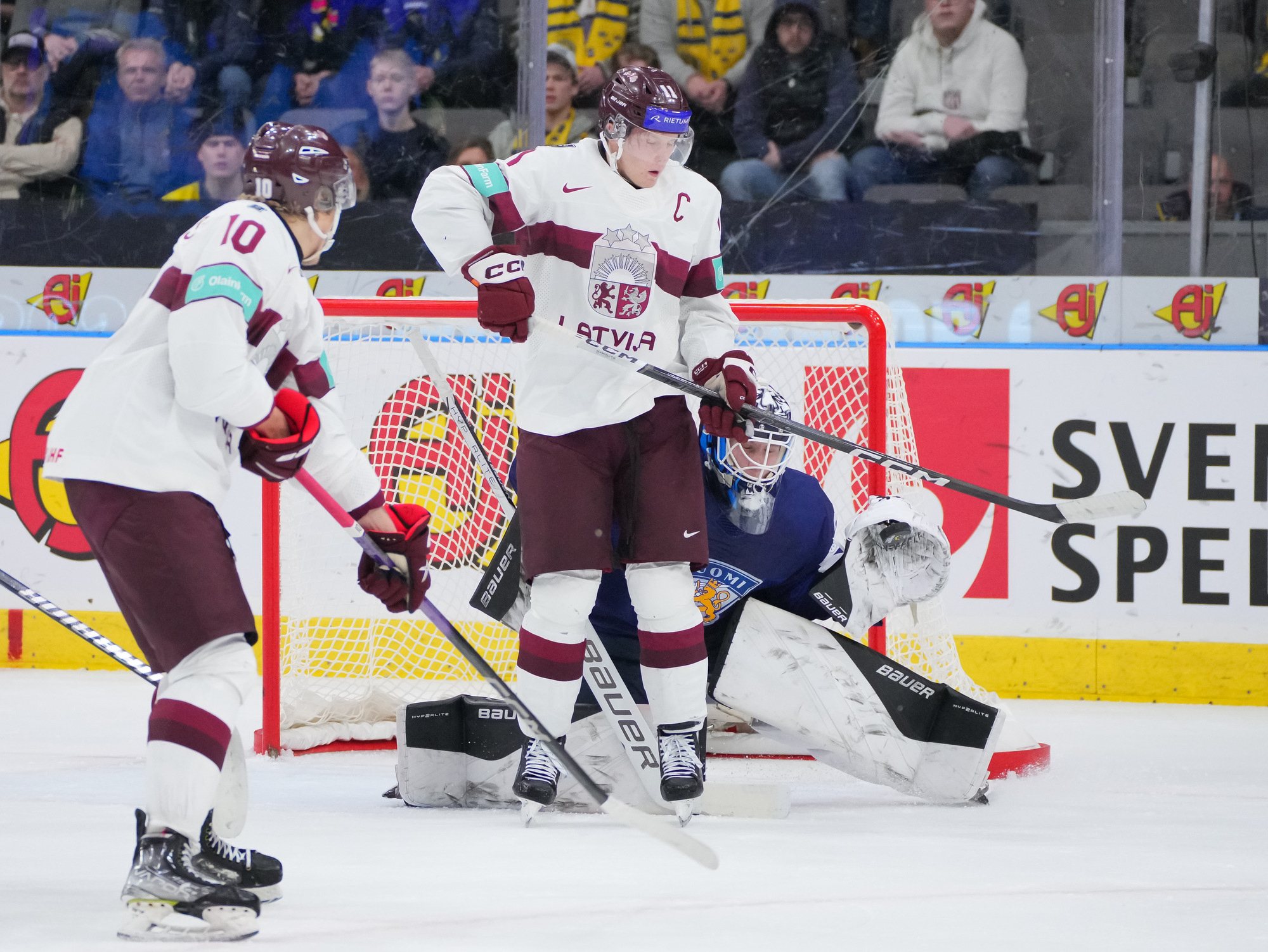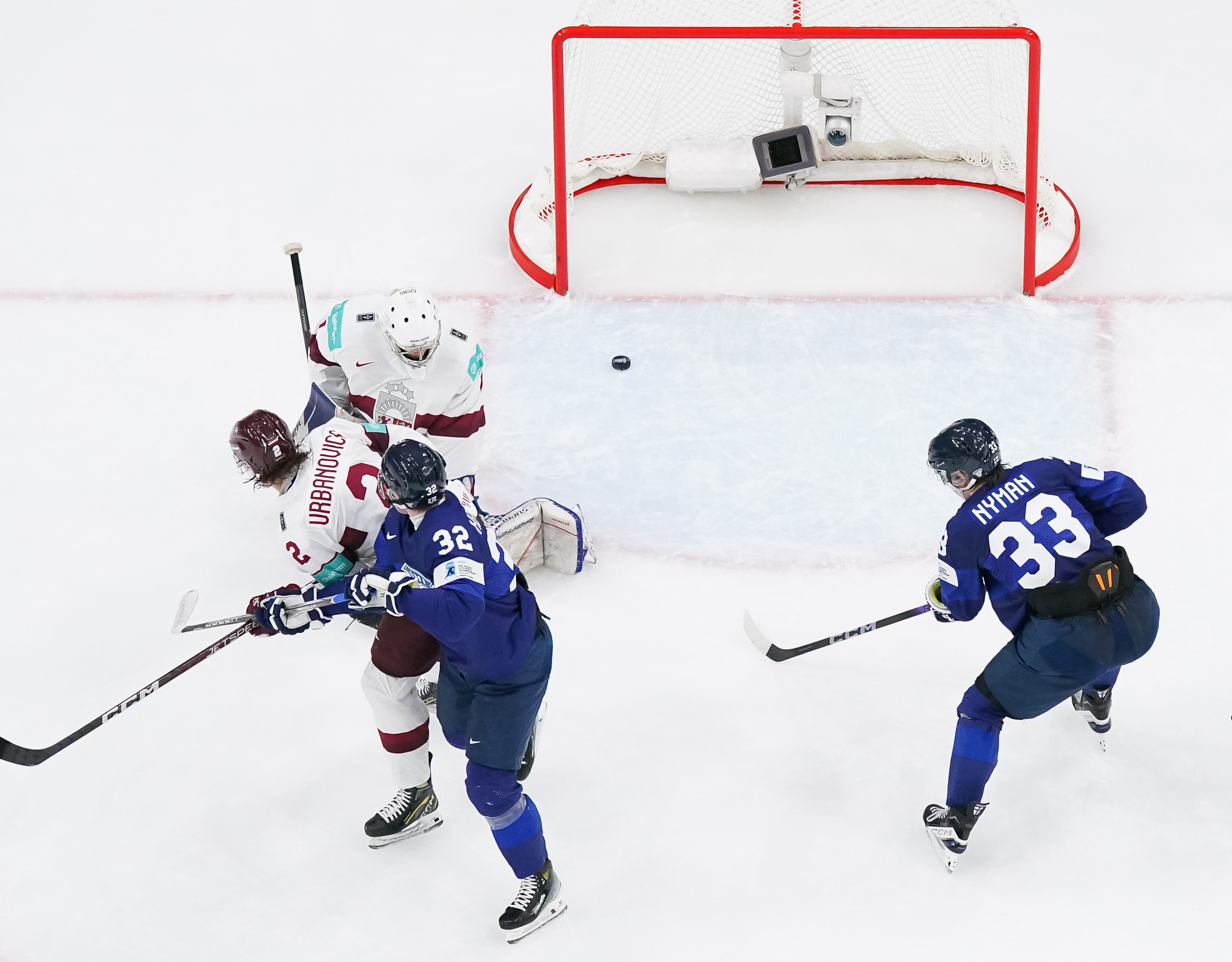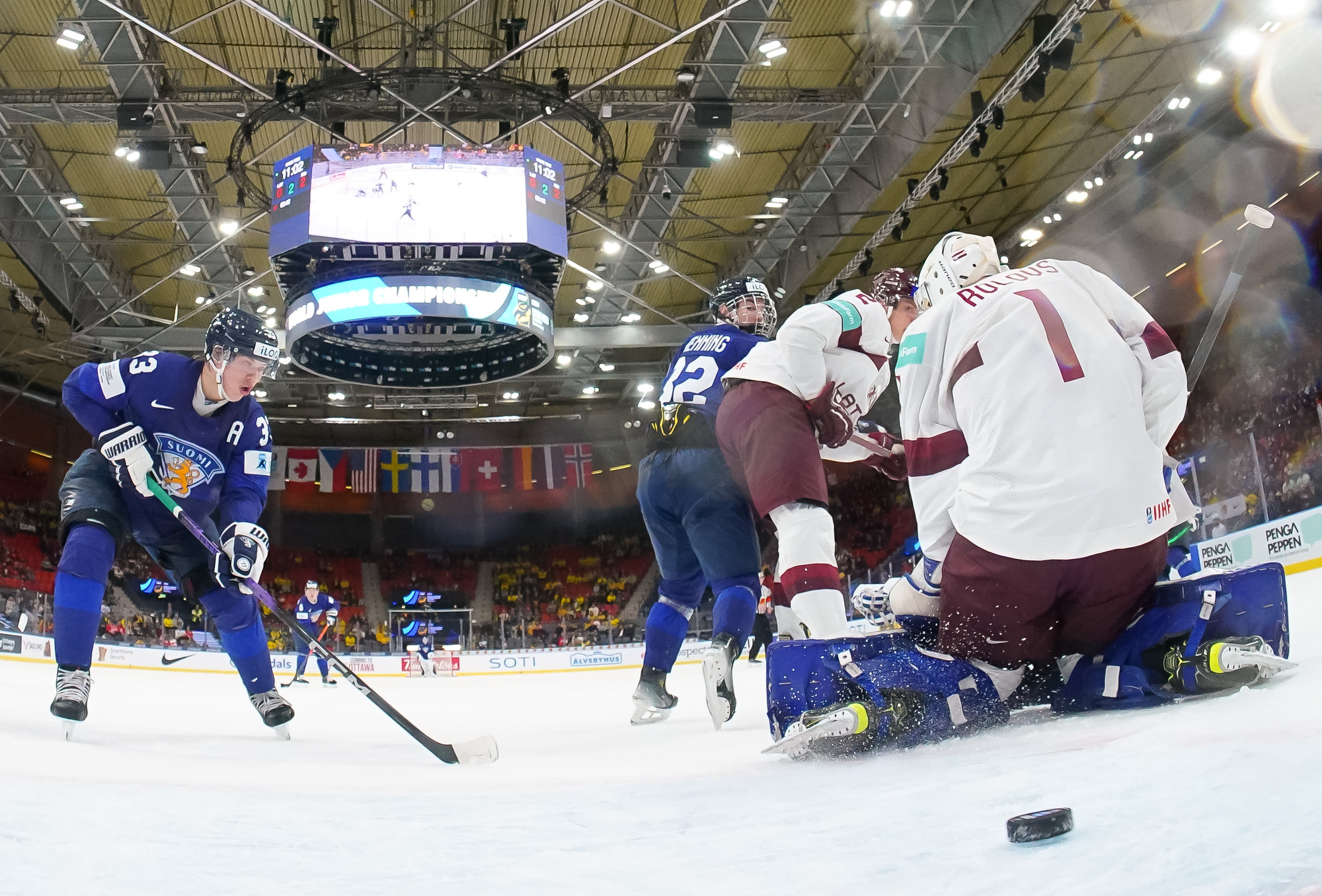 That feeling became reality when Toms Mots took a double minor for high sticking. Midway through the extended power play goalie Deivs Rolovs, making his second start of the tournament, couldn’t control a Kasper Halttunen point shot and captain Jere Lassila was there to swat the rebound into the empty net at 14:15.