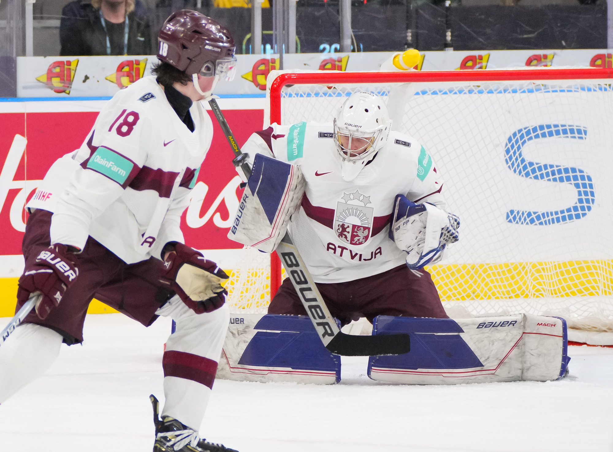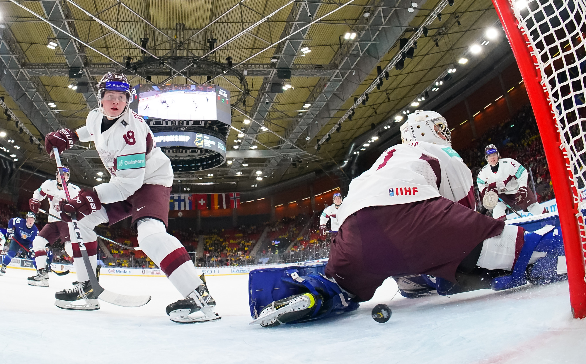 The second was peppered with minor penalties, seven in all, but although Latvia played better defence it still couldn’t generate much in the way of offence. Rolovs was again terrific, making a superb right-pad save off Lassila, but the Finns upped the count to 3-0 at 8:59 on a power play. Halttunen snapped a low shot that beat Deivs five-hole. A little while later Latvia had its best chance when Dans Locmelis hit the post during a five-on-four advantage.