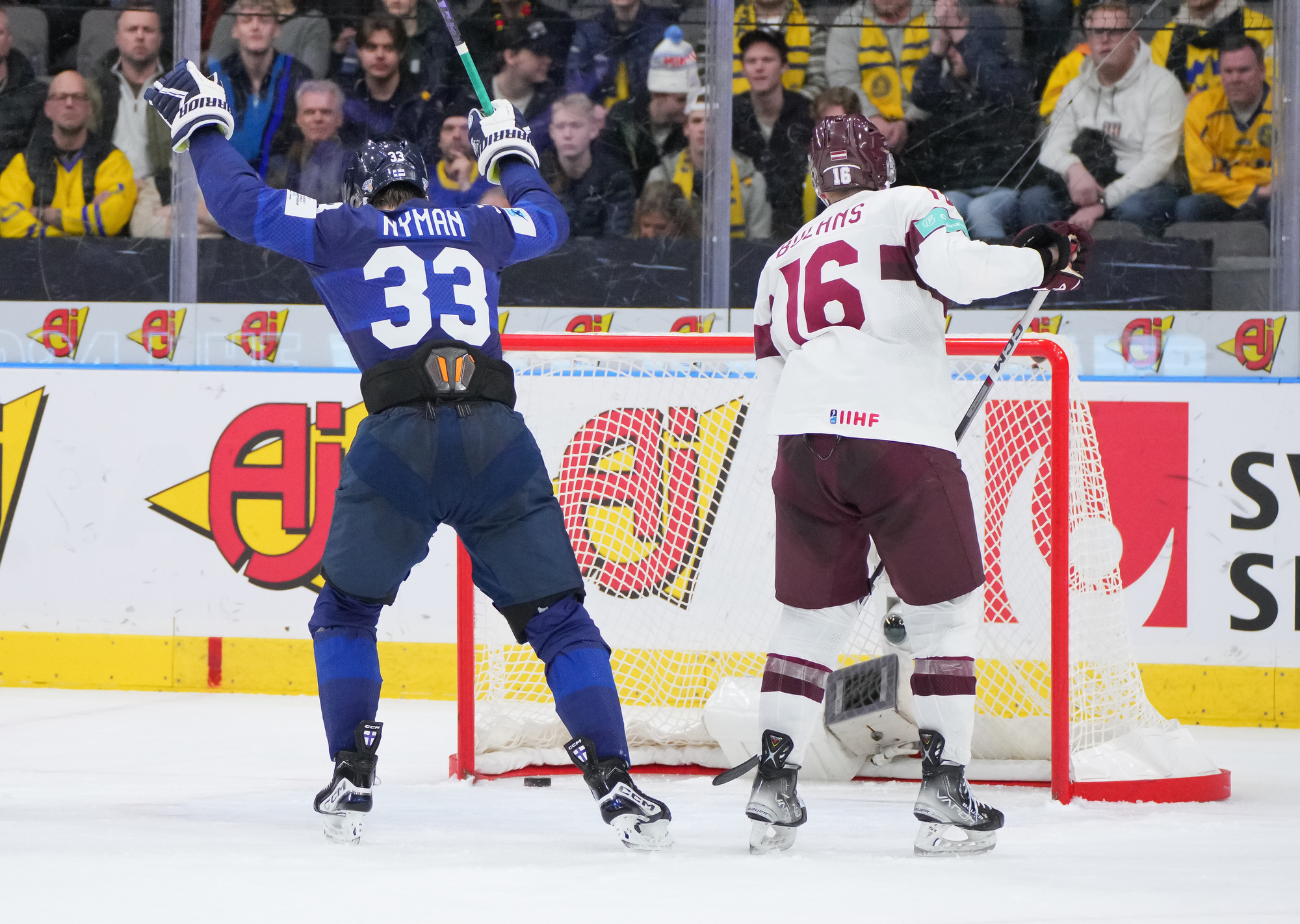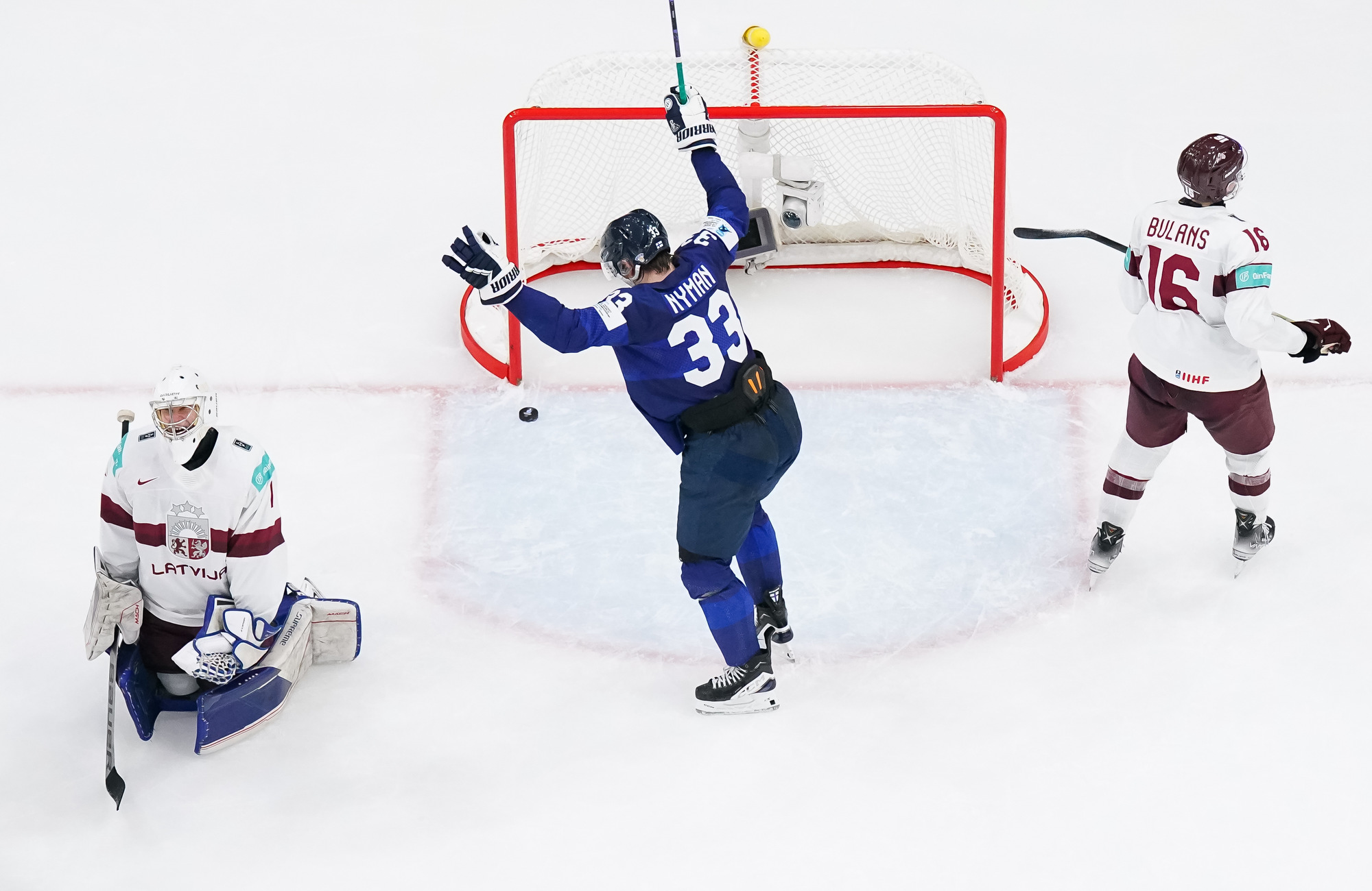 The win gives Finland three points in the Group A standings and a place in the quarter-finals, coming on the heels of losses to Canada and Germany. Latvia, 0-3, now must beat Germany tomorrow and then hope the Germans lose to Canada on Sunday. If this happens, they, too, will qualify for the playoffs, but a loss tomorrow will send them to the one-game relegation round.