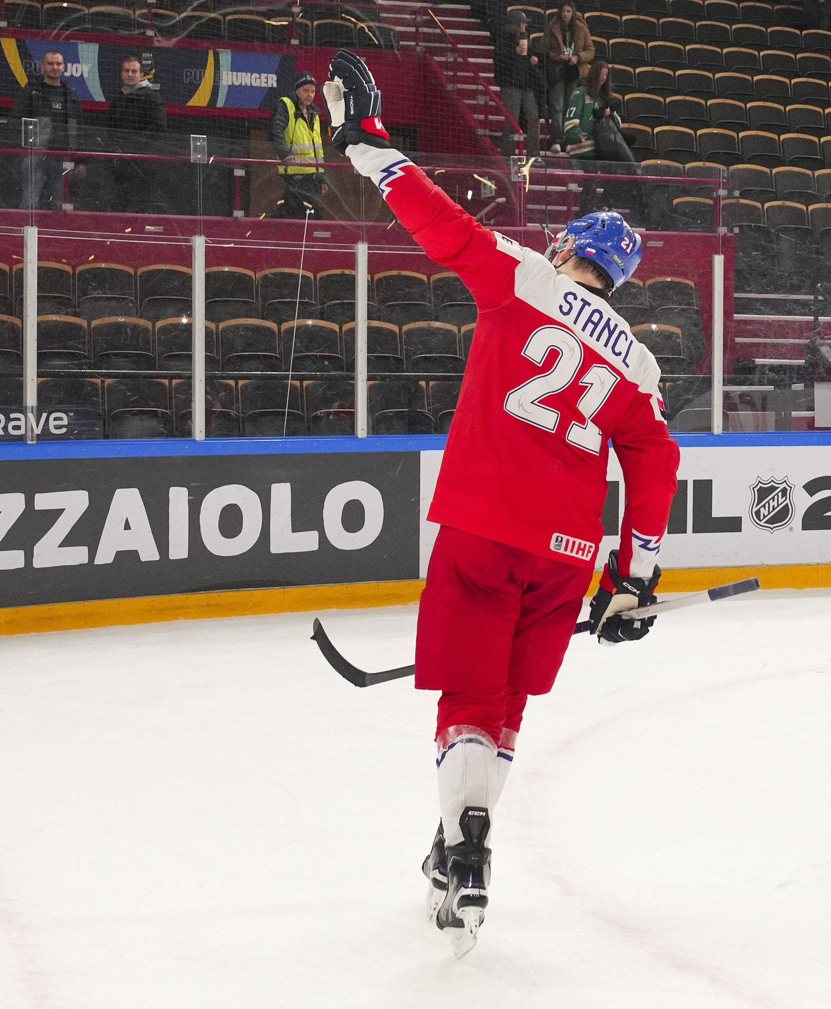 On the go-ahead goal, 17-year-old defender Tomas Galvas jumped up on the right side and dished a backhand pass to Kulich to bang into the gaping cage at 12:47. In his third World Juniors, the 19-year-old Buffalo Sabres prospect is the all-time leading Czech goal-scorer (in the post-Czechoslovakia era) with 13 goals, surpassing Michael Frolik (12).