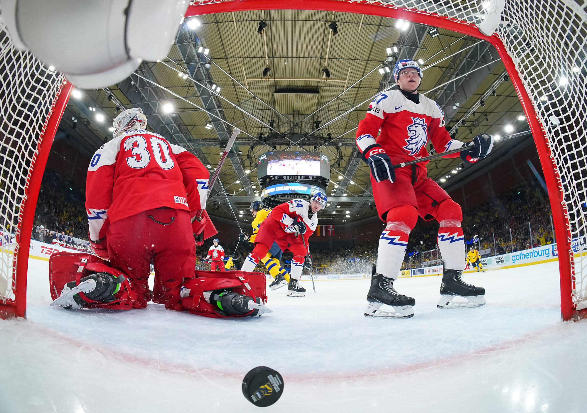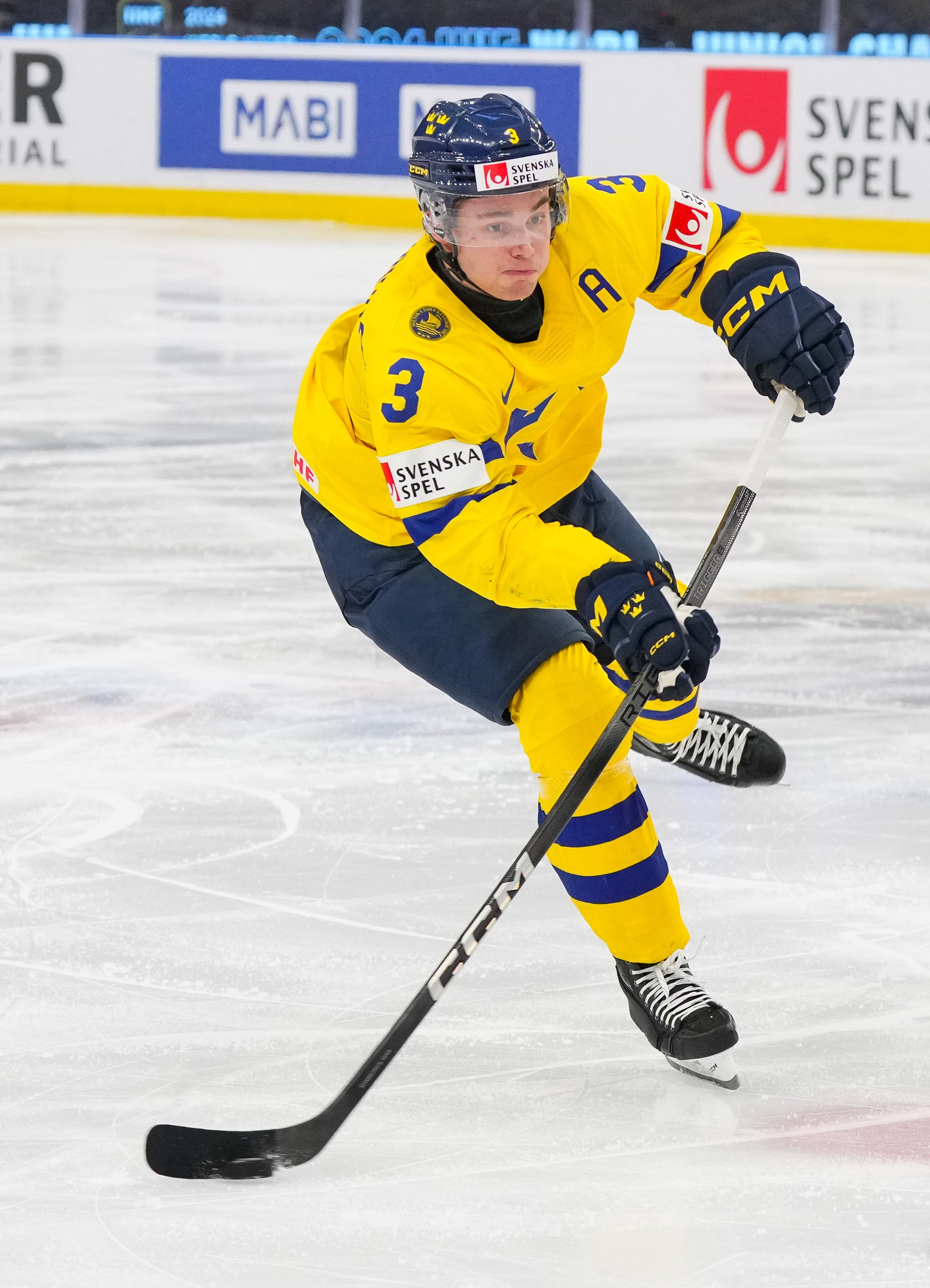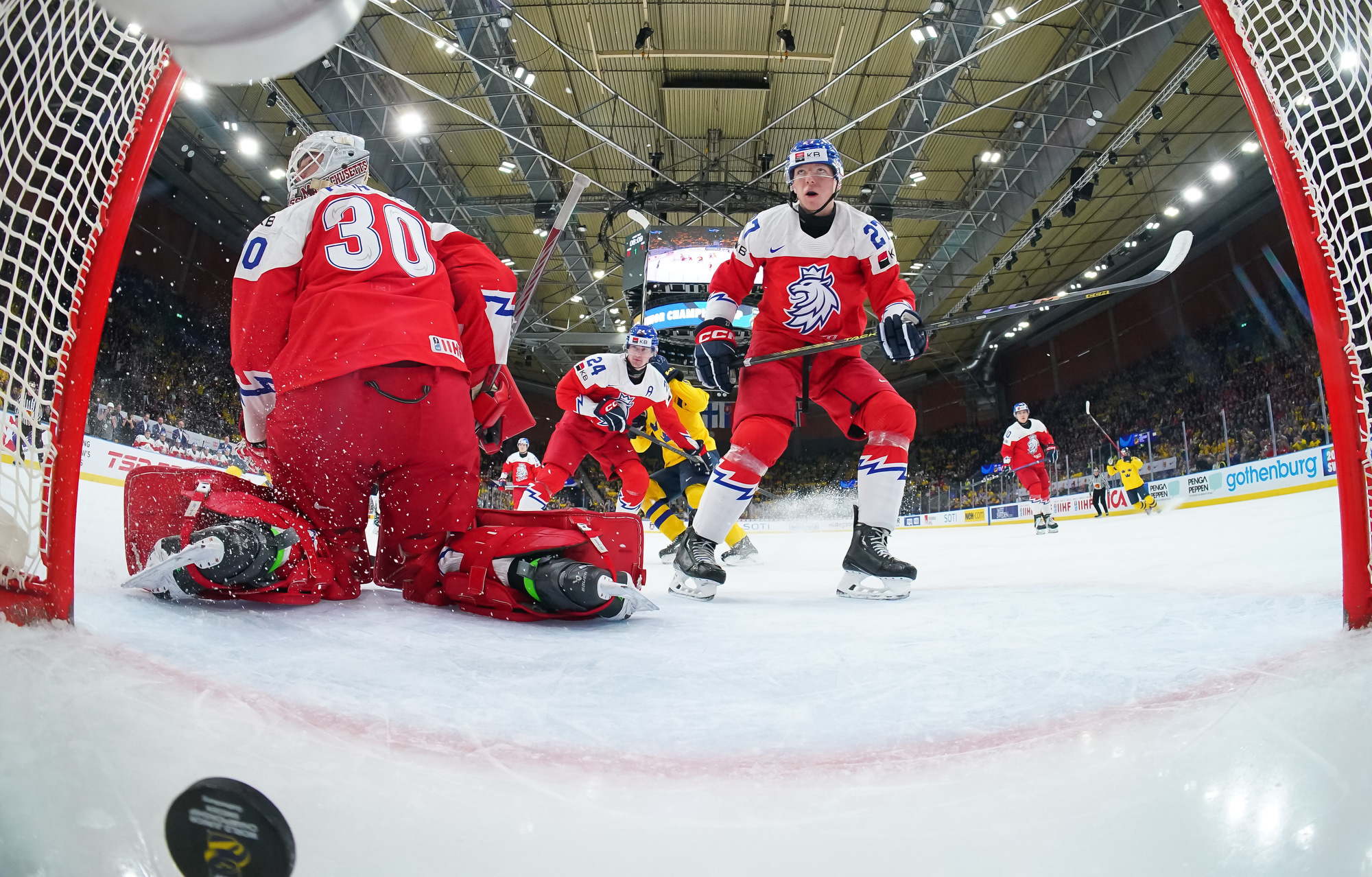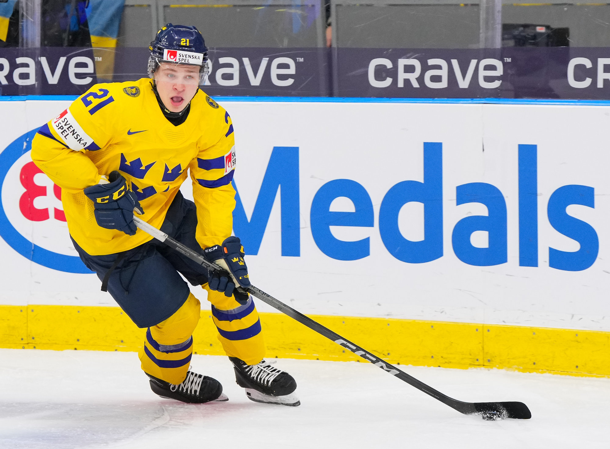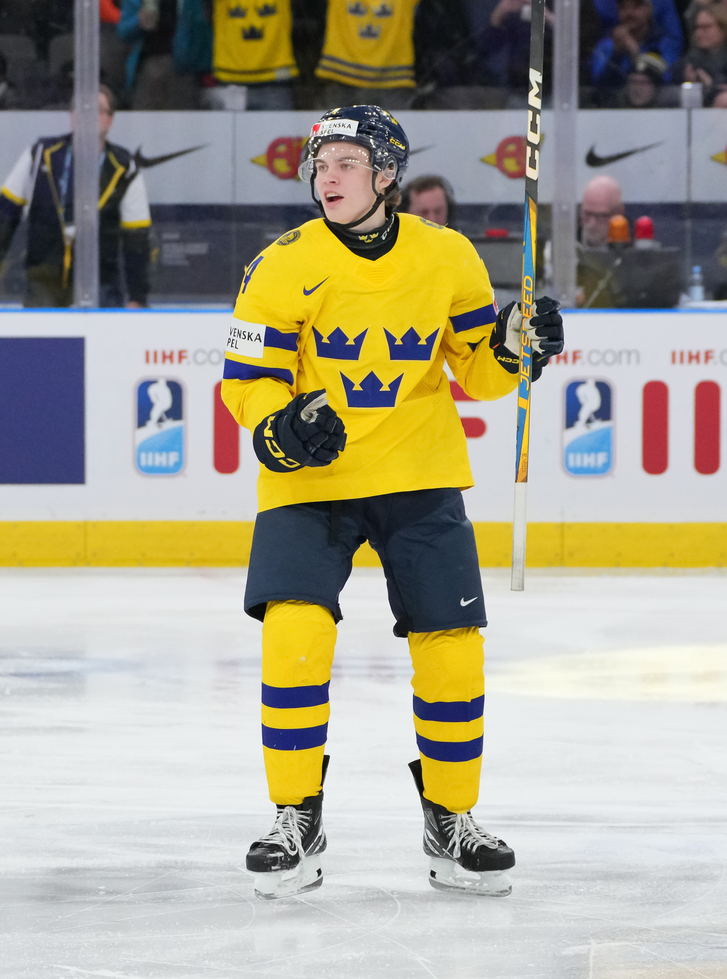 Just 16 seconds after it began, Sandin Pellikka teed up a pass for Lekkerimaki, and he wired a bullet past Hrabal from the point at 5:14. But the Swedes were only just getting started. They opened a two-goal lead at 12:00 when Lindstein fed Noah Ostlund a torpedo pass. Ostlund went in alone and beat Hrabal with a backhand over--you guessed it--the glove.
