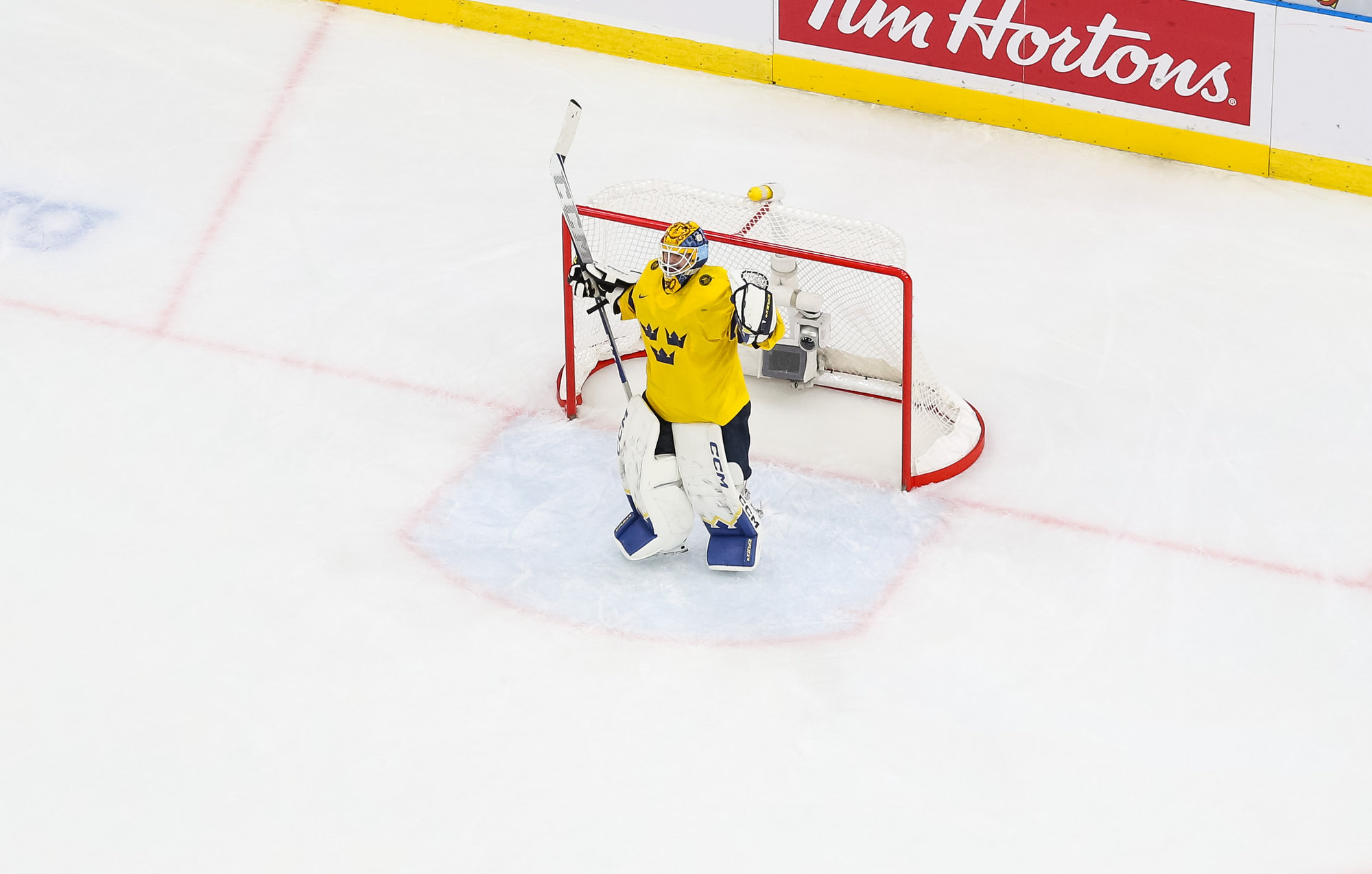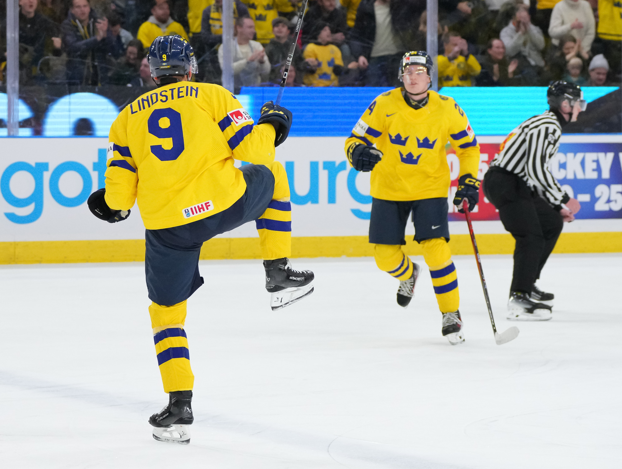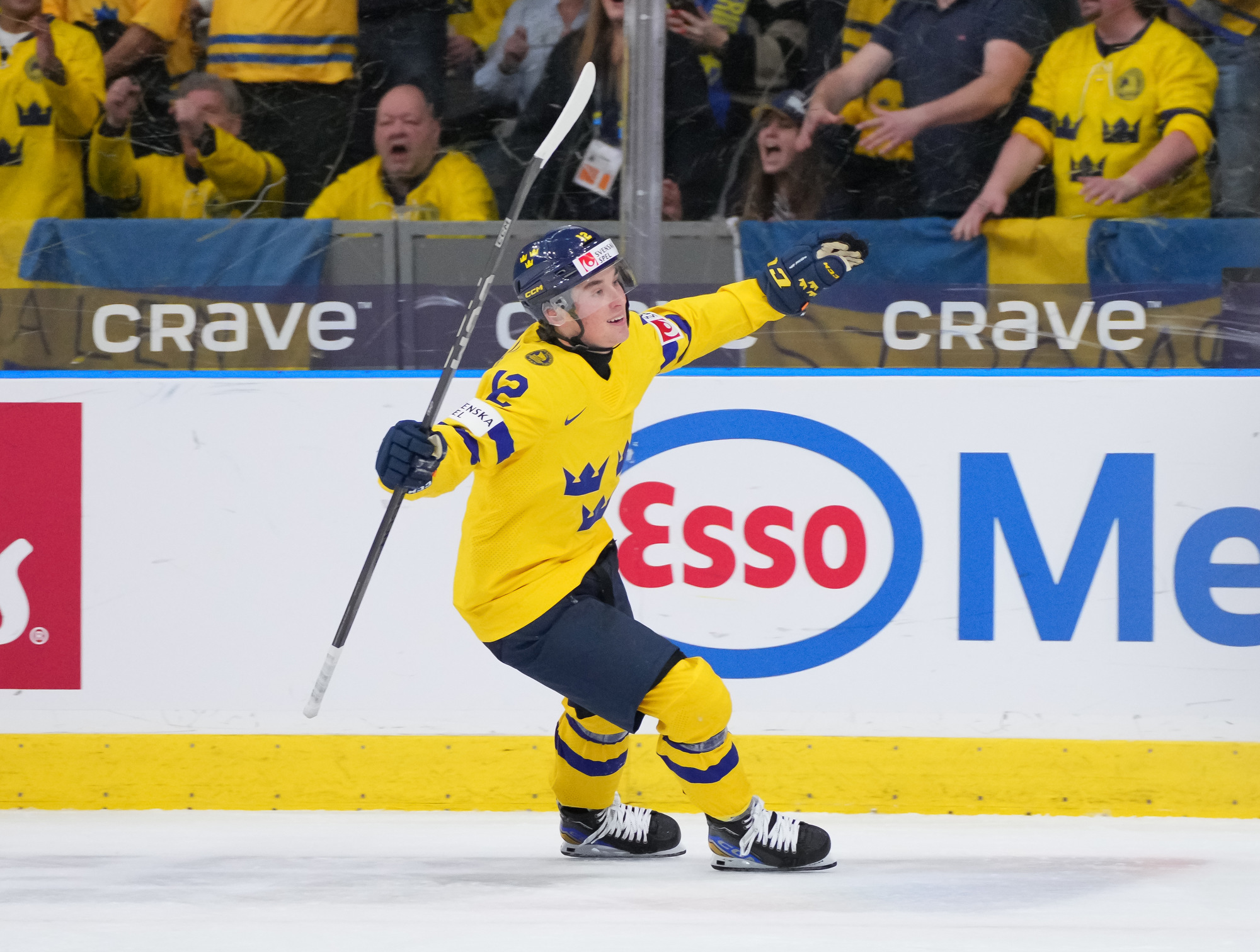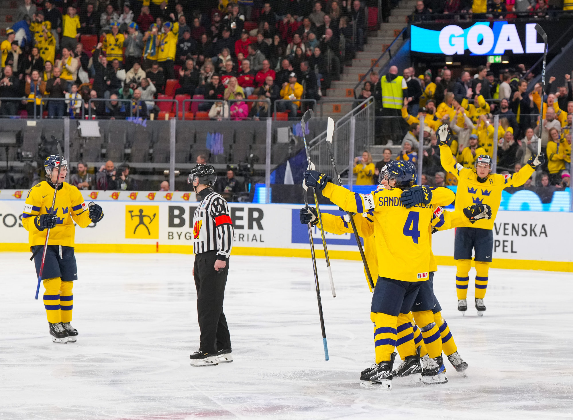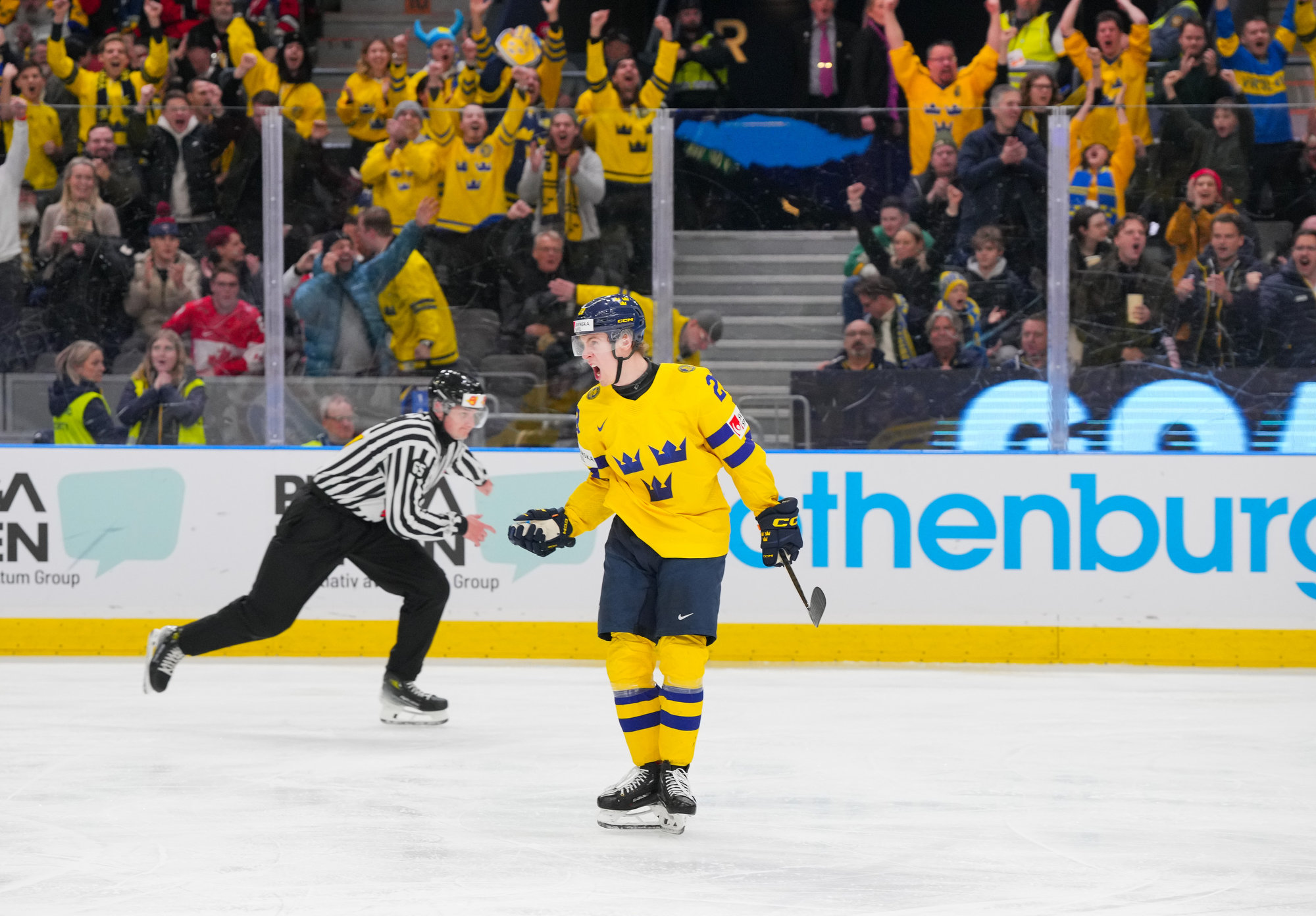 The second was a rollicking, wide-open affair that started with Sverige claiming their first lead. Axel Sandin Pellikka took a quick shot from the point that beat Hrabal over the glove in pretty much the same spot he flubbed Lindstein’s shot.