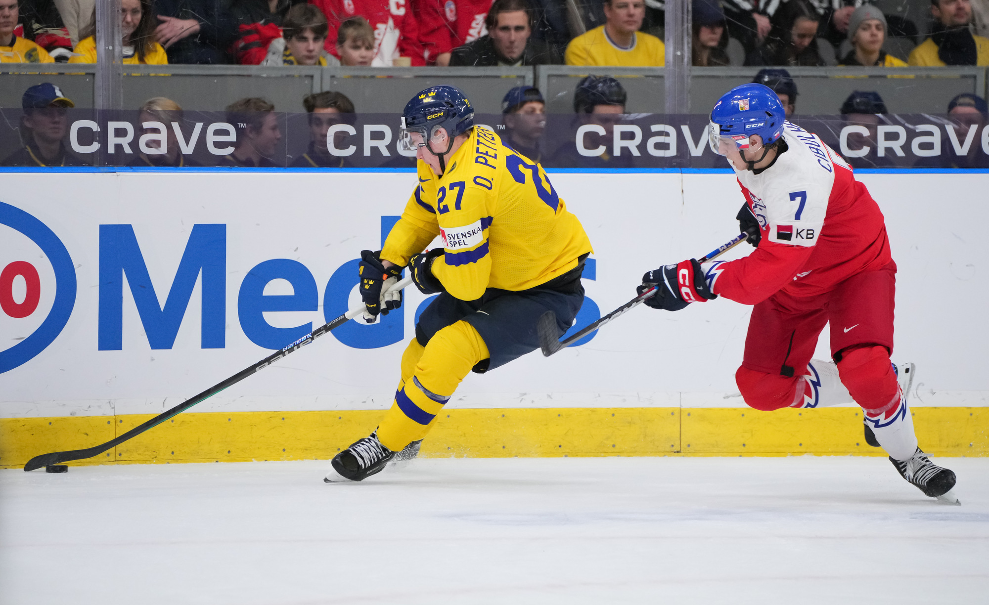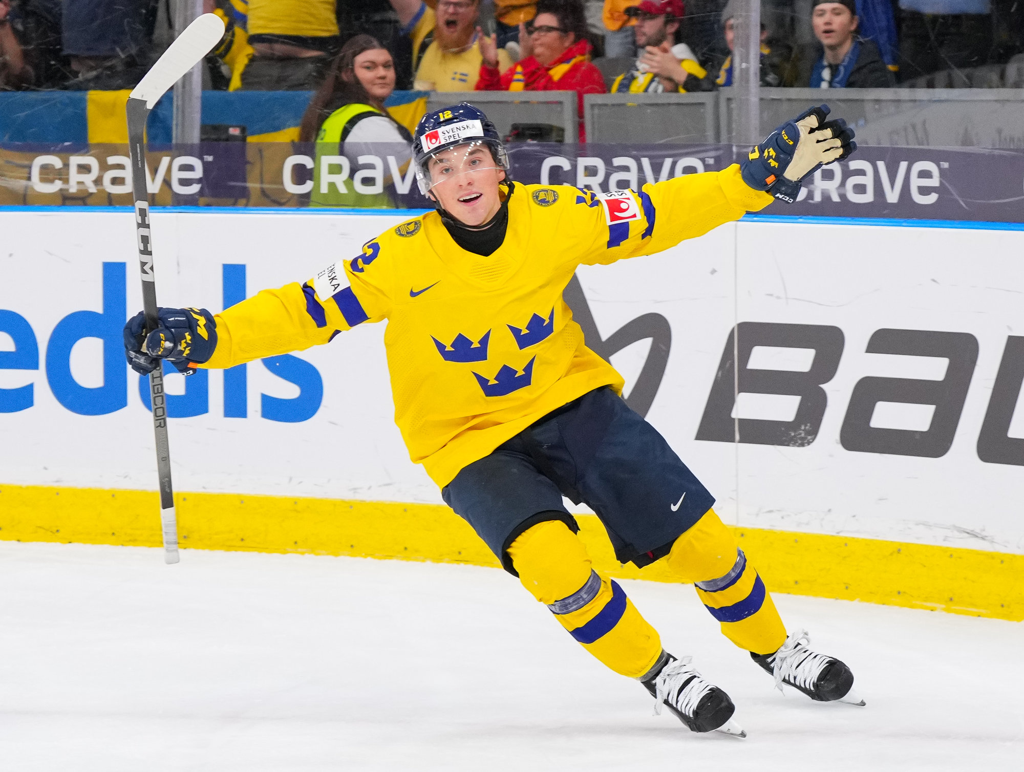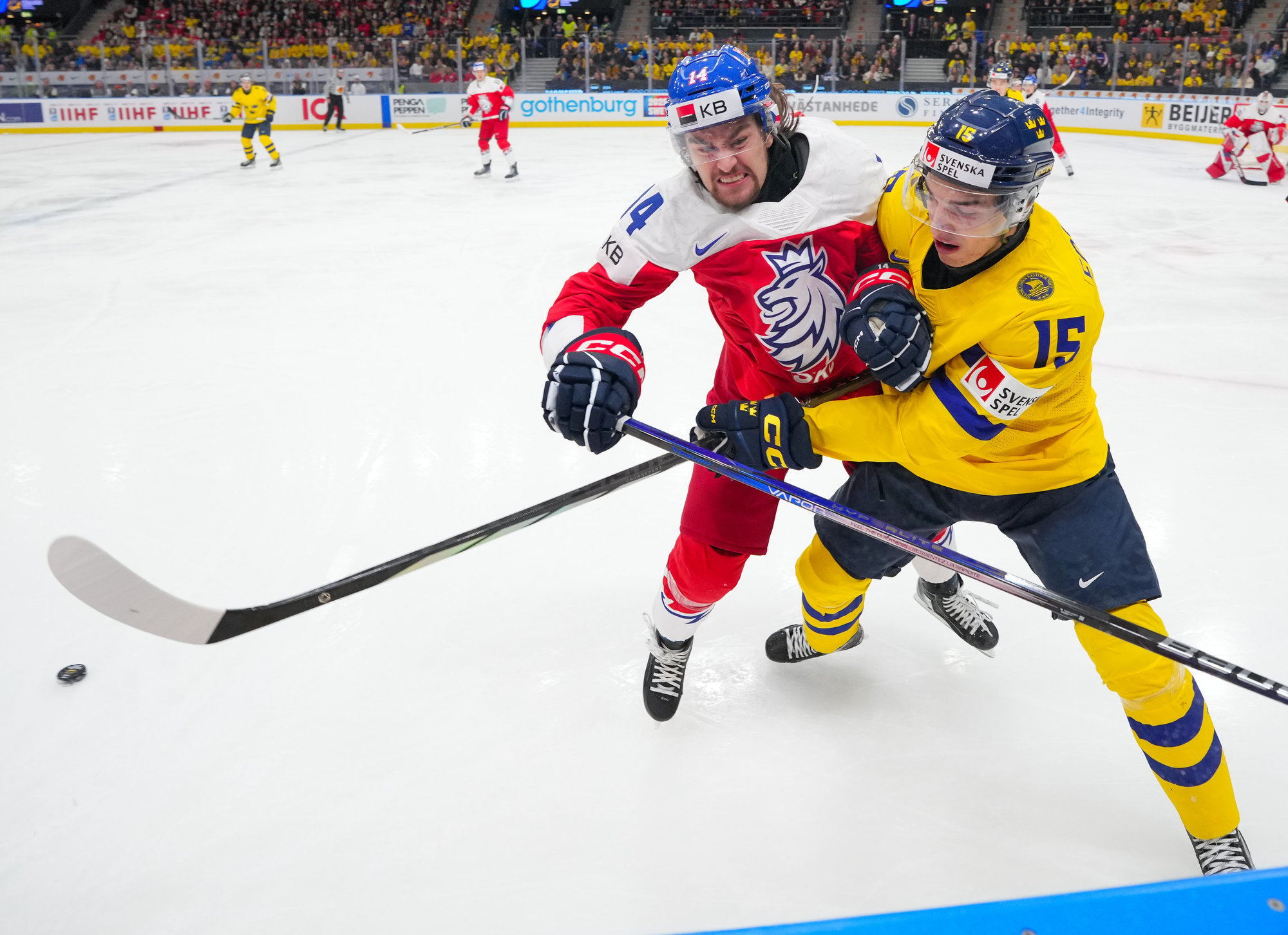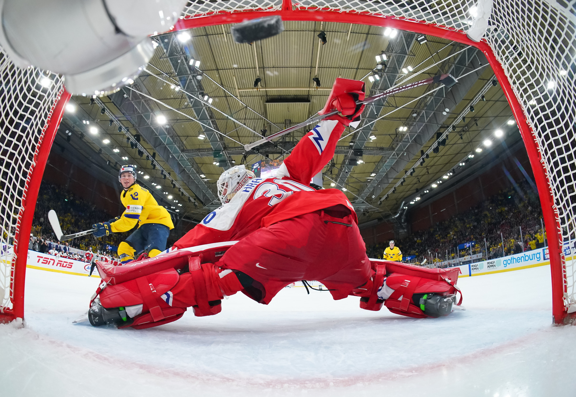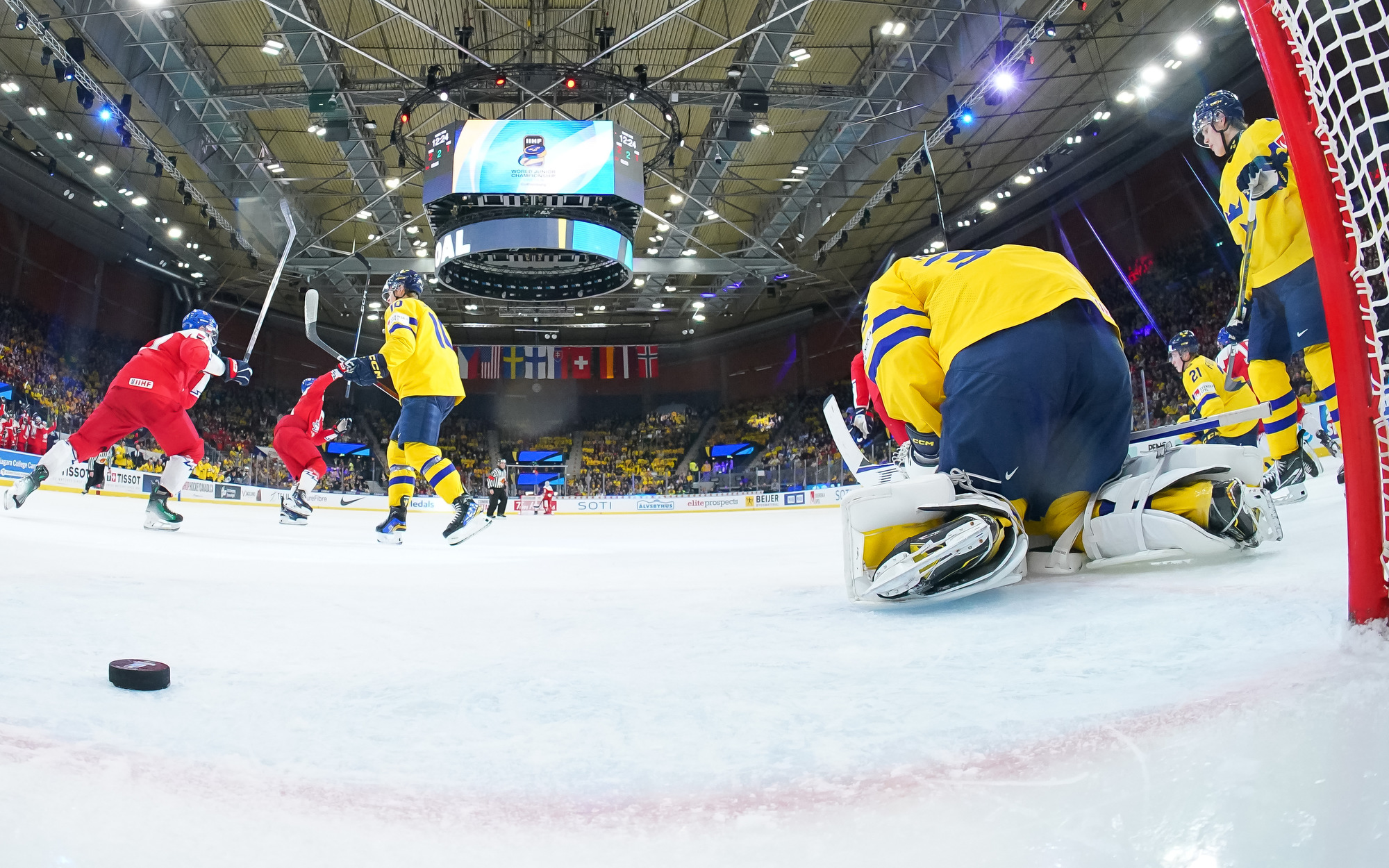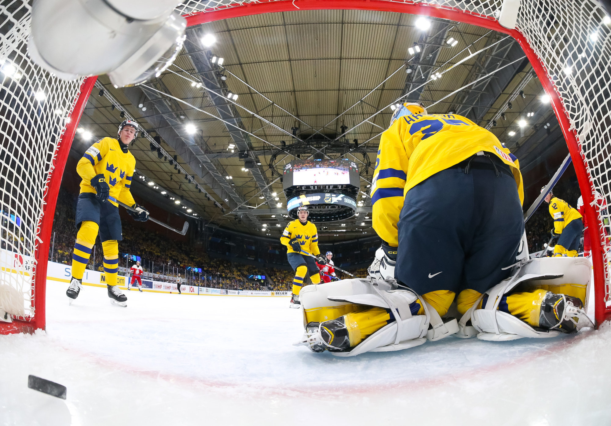 The second was a rollicking, wide-open affair that started with Sverige claiming their first lead. Axel Sandin Pellikka took a quick shot from the point that beat Hrabal over the glove in pretty much the same spot he flubbed Lindstein’s shot.