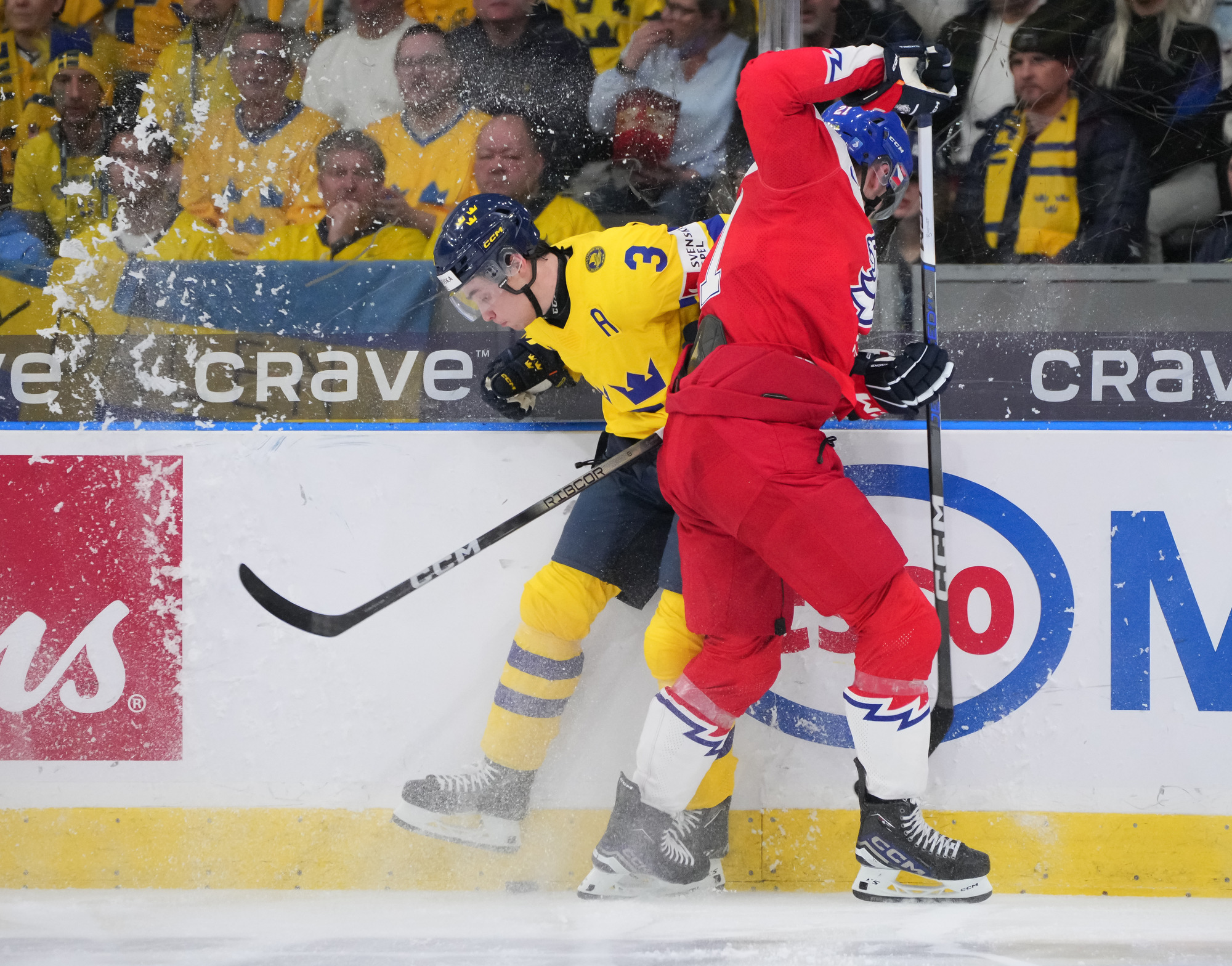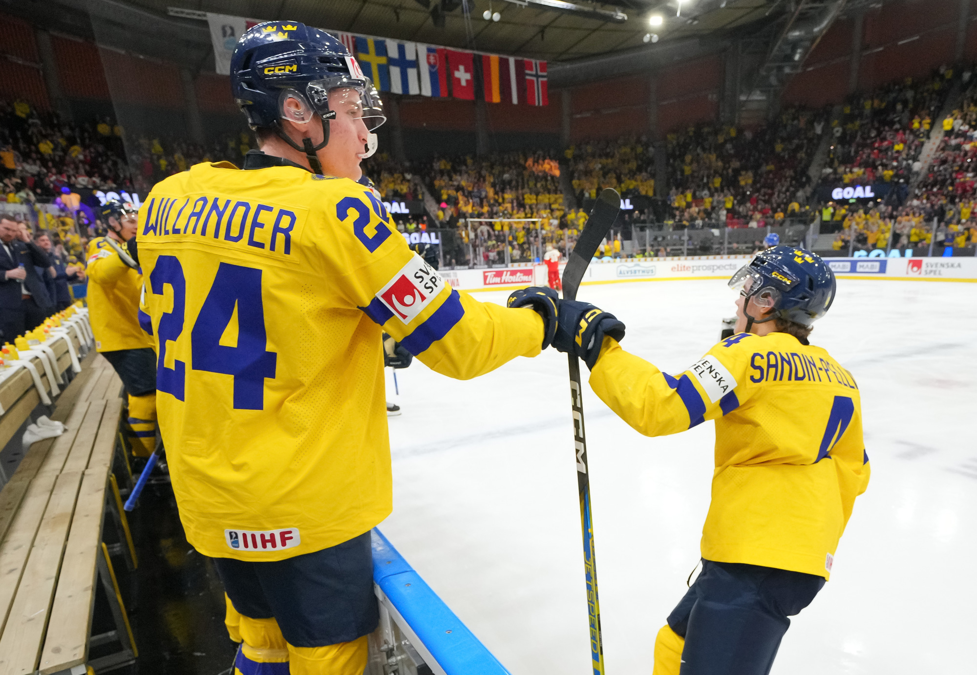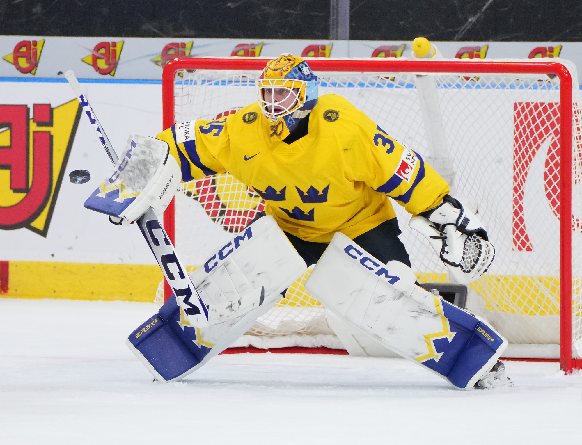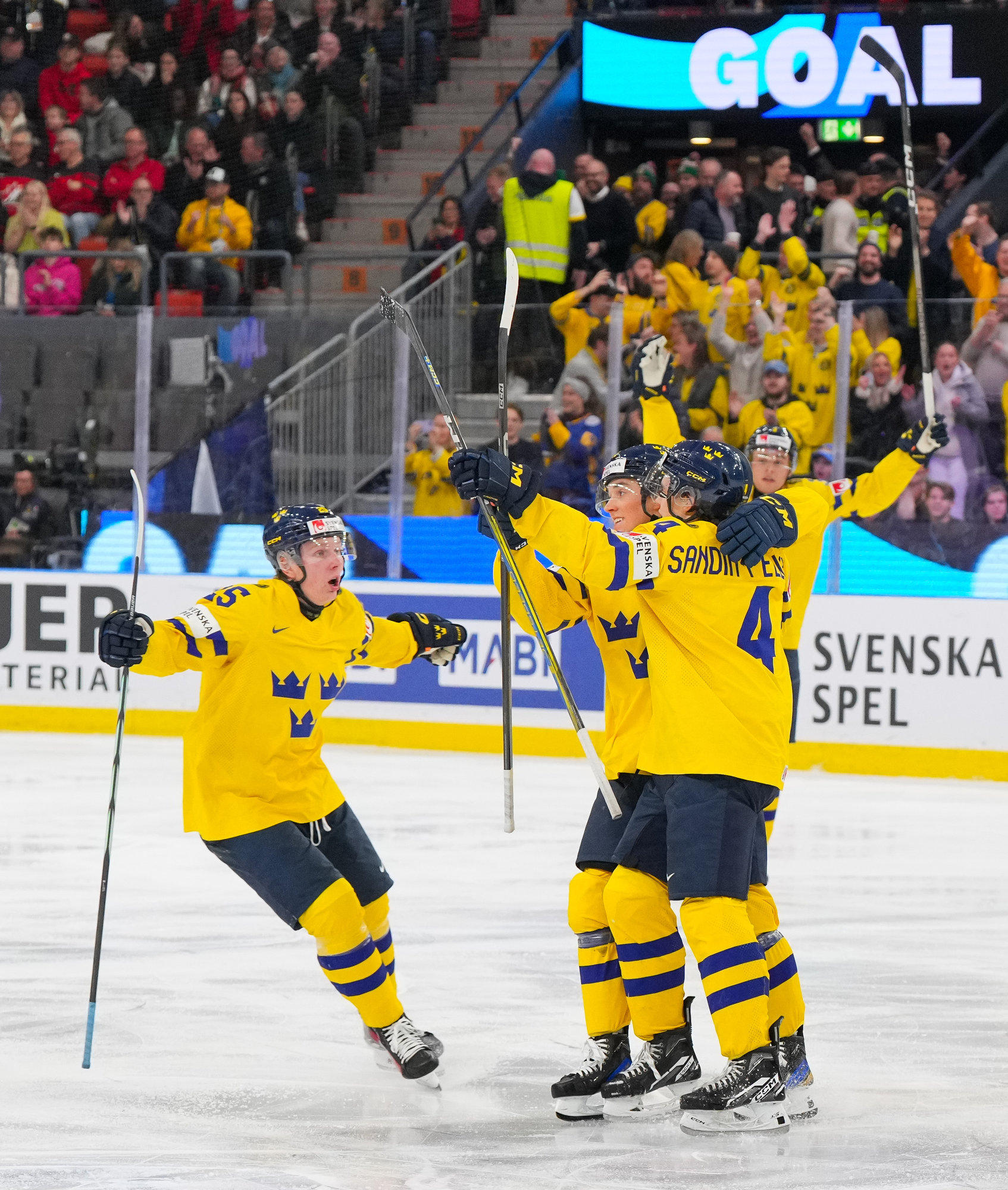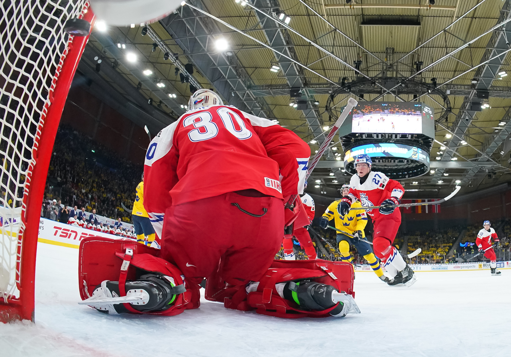 The second was a rollicking, wide-open affair that started with Sverige claiming their first lead. Axel Sandin Pellikka took a quick shot from the point that beat Hrabal over the glove in pretty much the same spot he flubbed Lindstein’s shot.