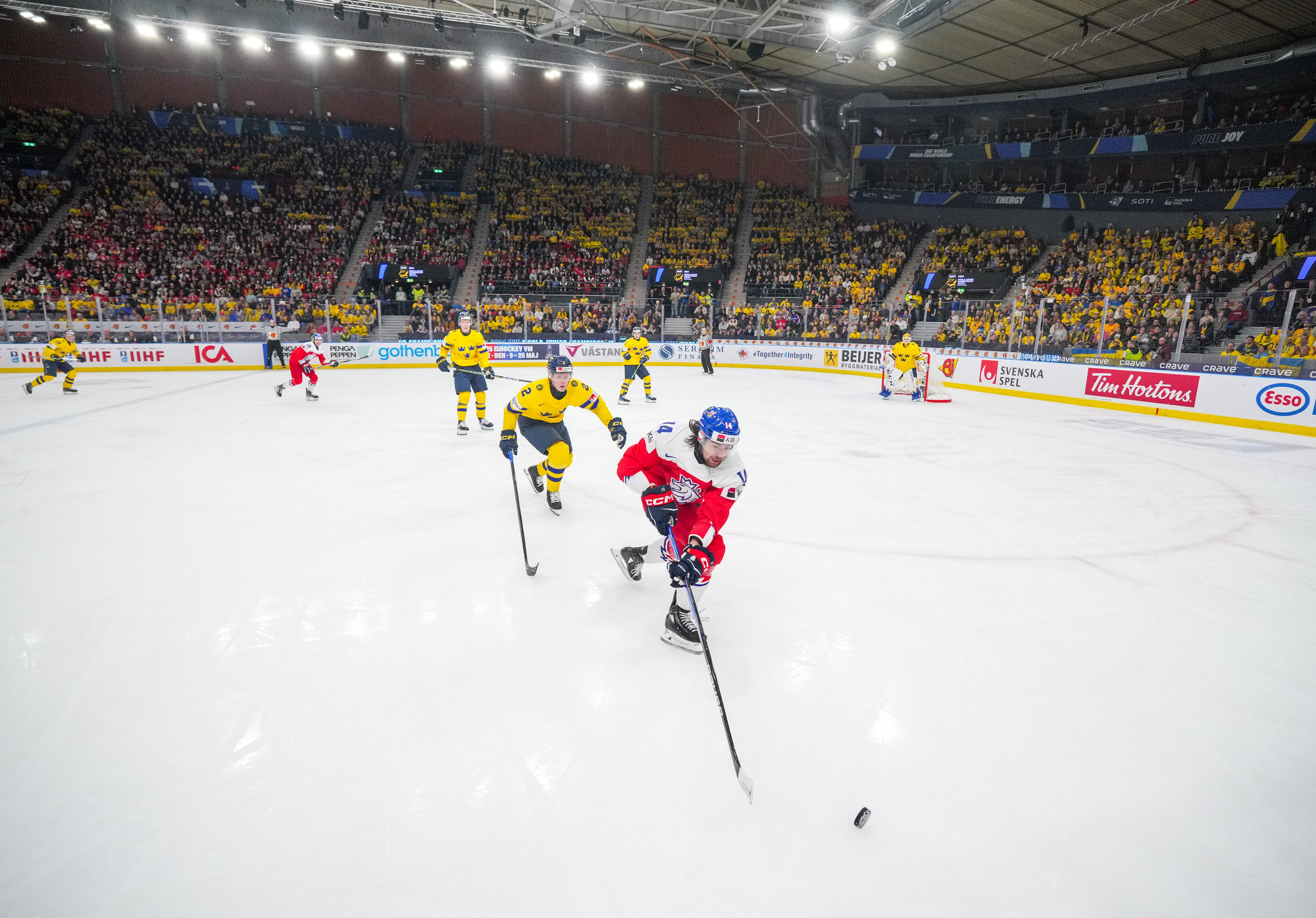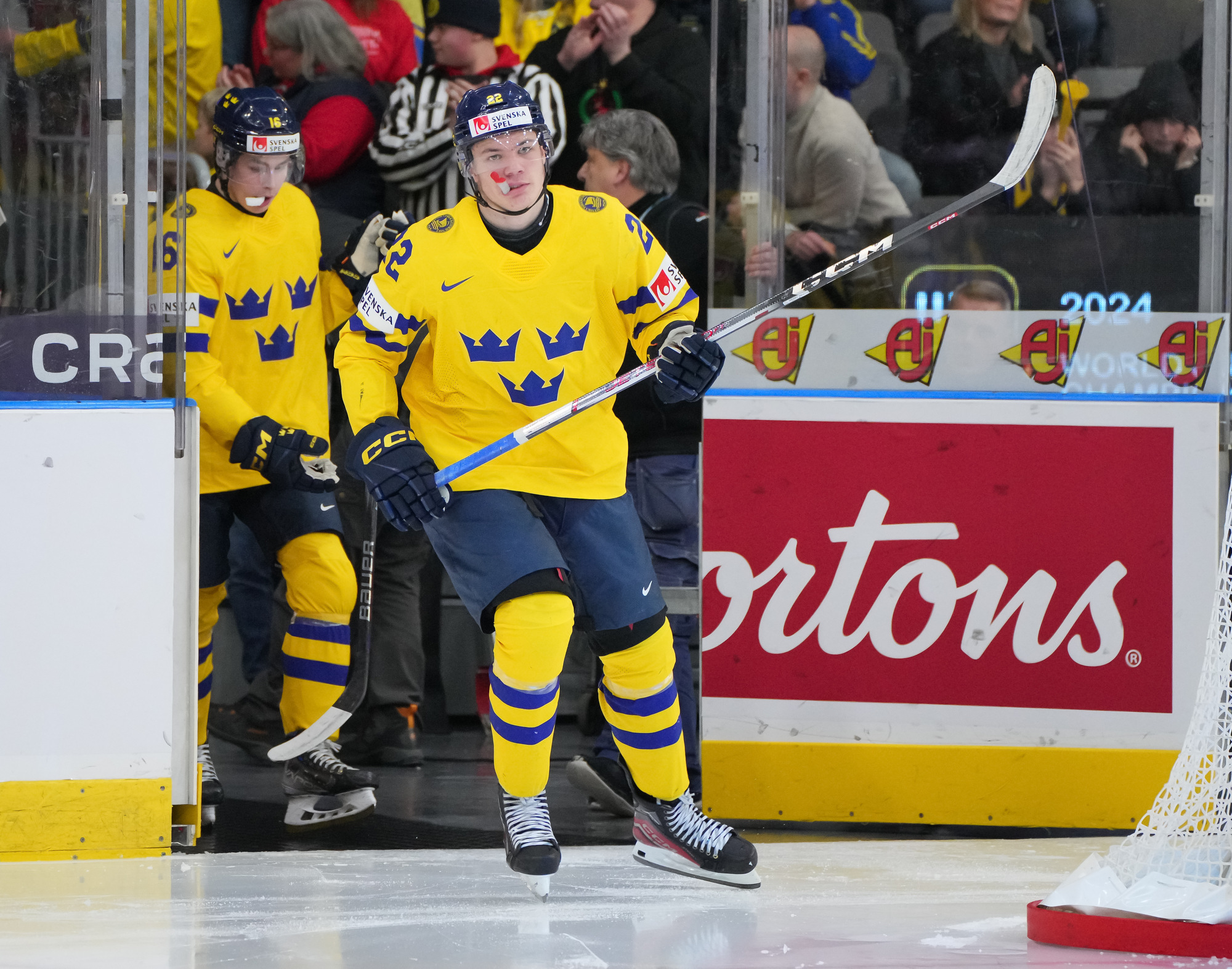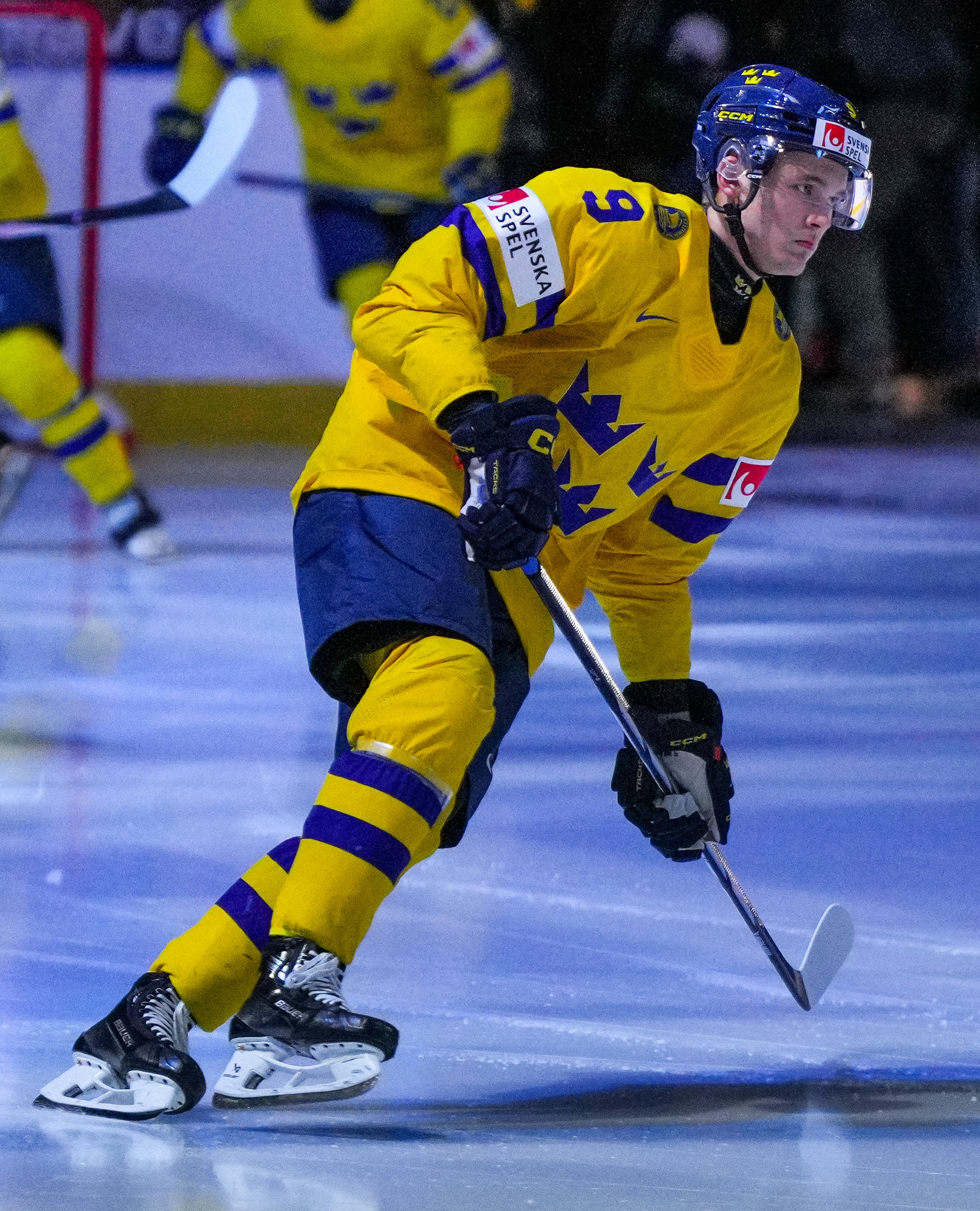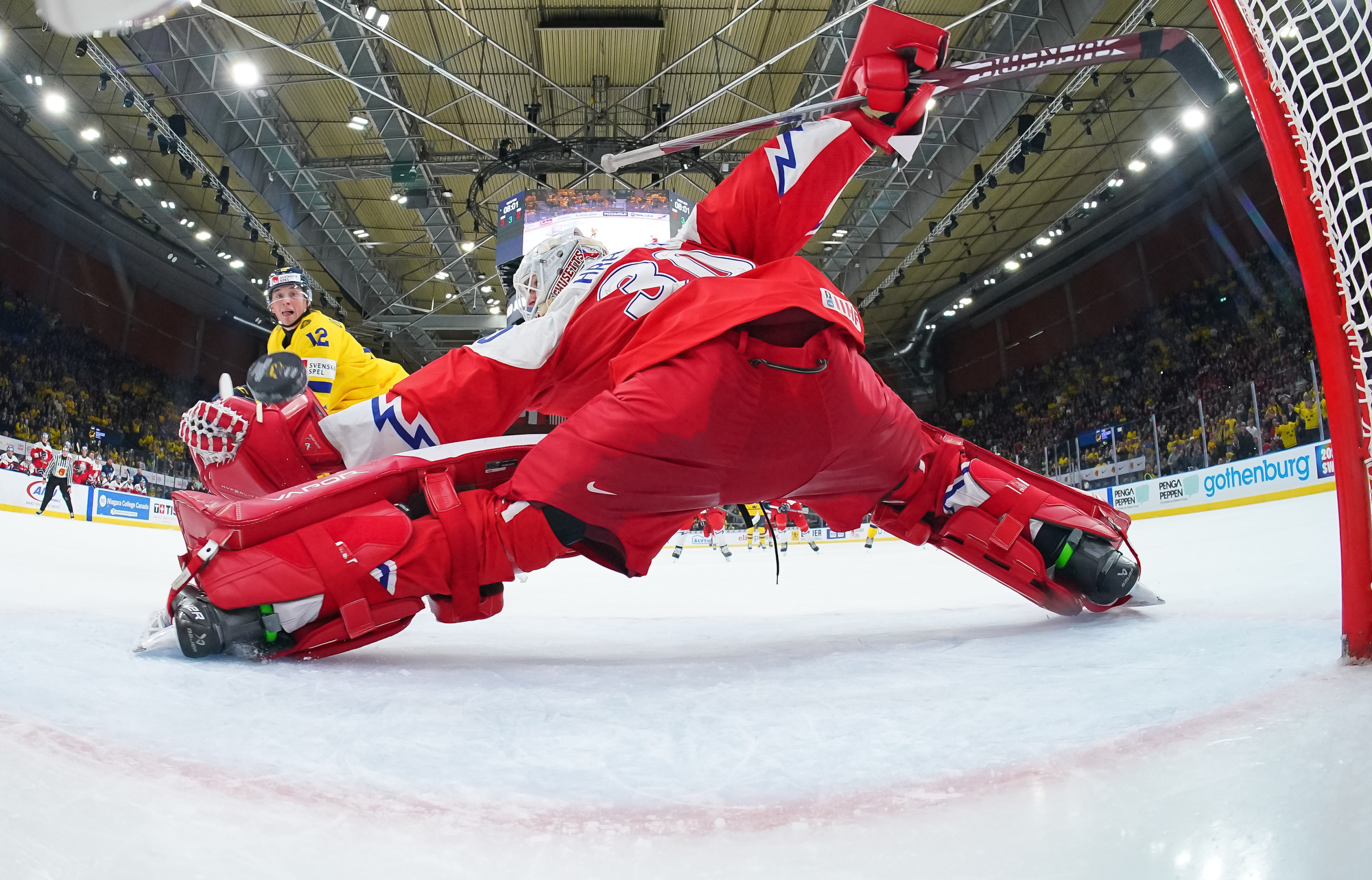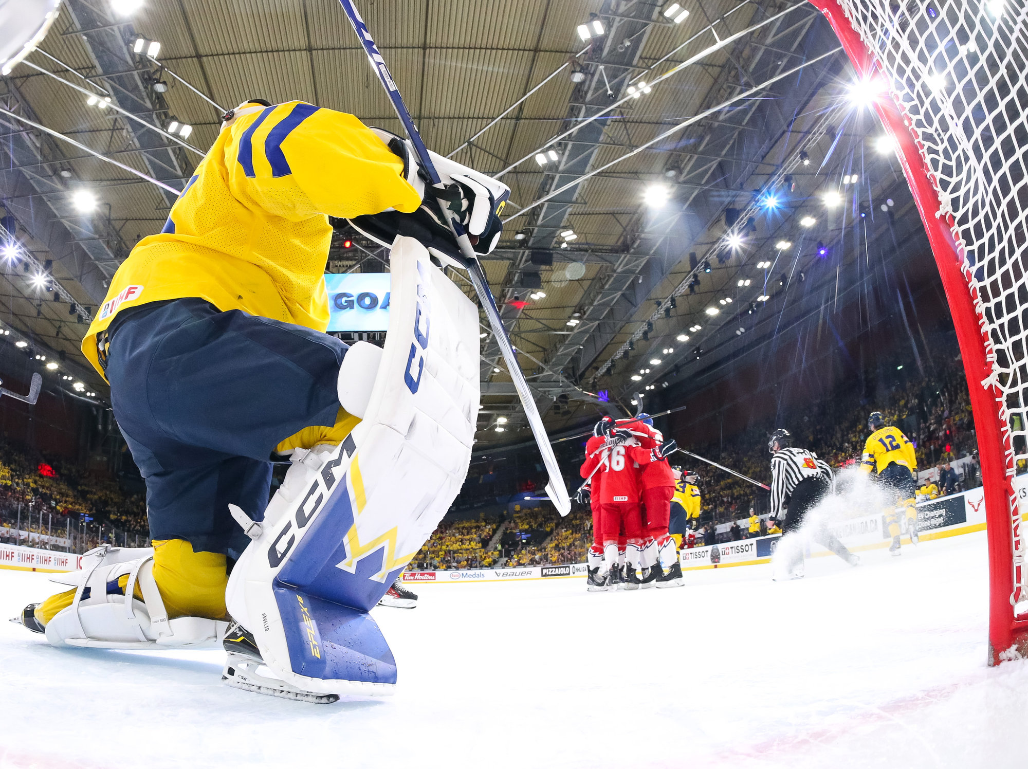 The second was a rollicking, wide-open affair that started with Sverige claiming their first lead. Axel Sandin Pellikka took a quick shot from the point that beat Hrabal over the glove in pretty much the same spot he flubbed Lindstein’s shot.