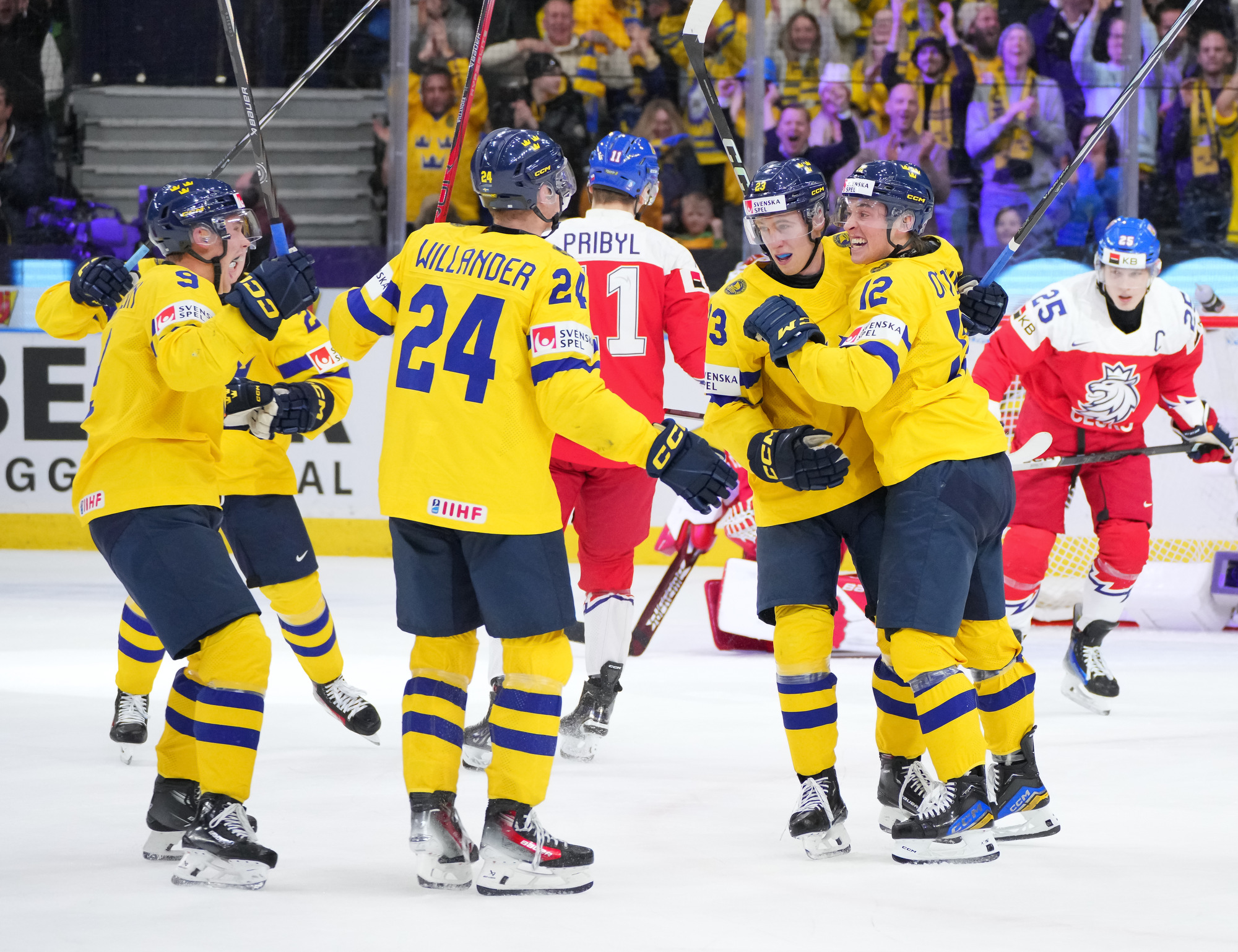 Jonathan Lekkerimaki's power-play goal early in the third period, his first of two, broke a 2-2 tie and held up as the winner this afternoon as Sweden defeated Czechia, 5-2. The win moves the Swedes into the gold-medal game tomorrow for the first time since 2018.