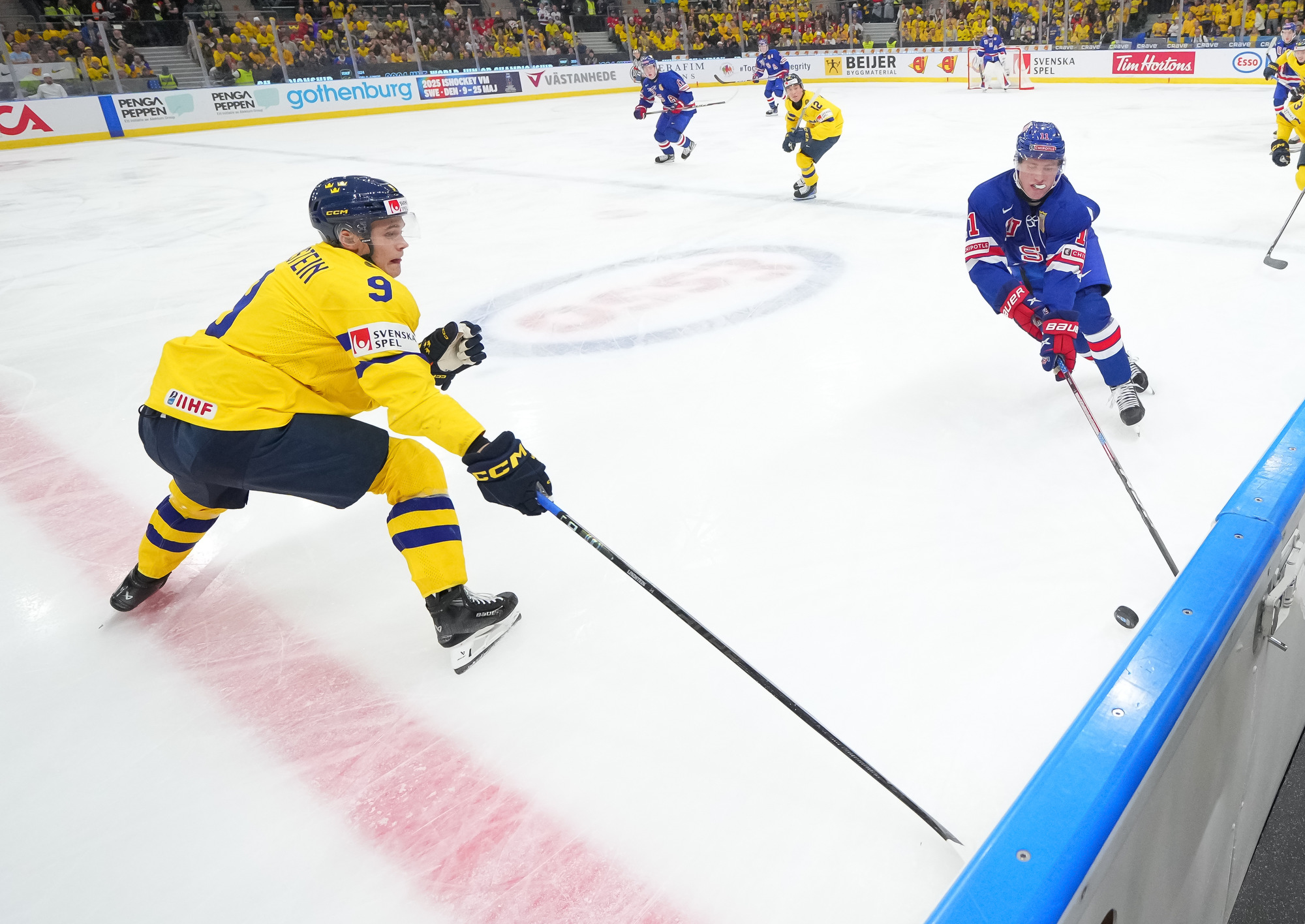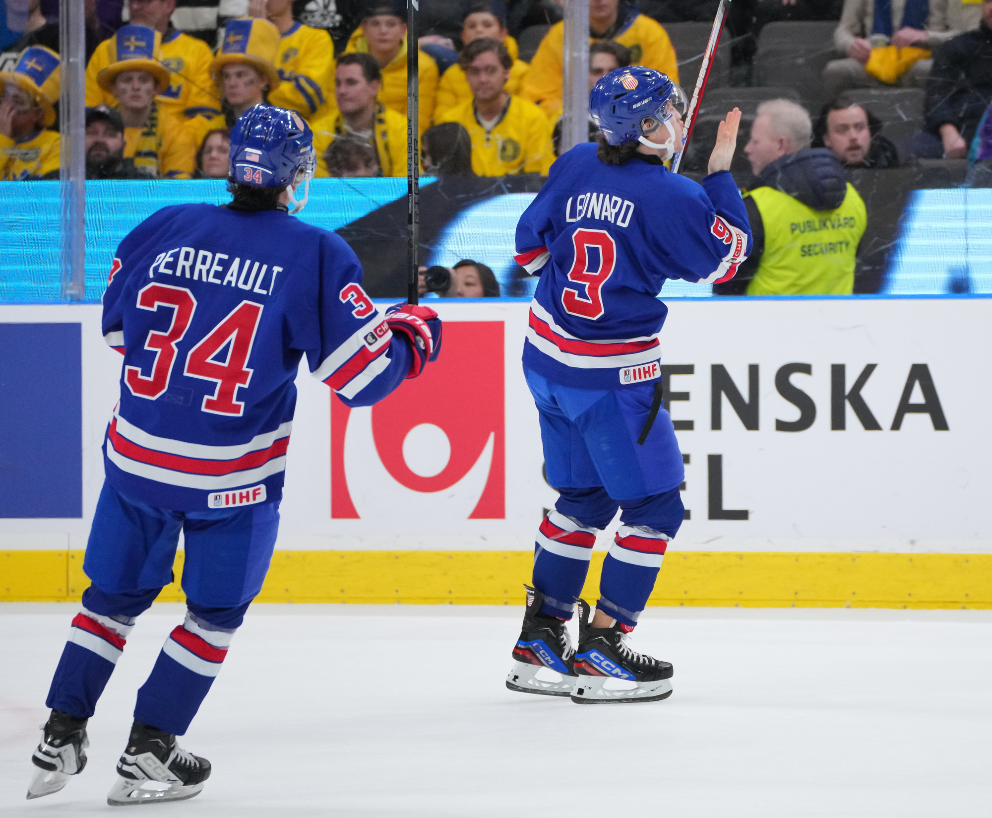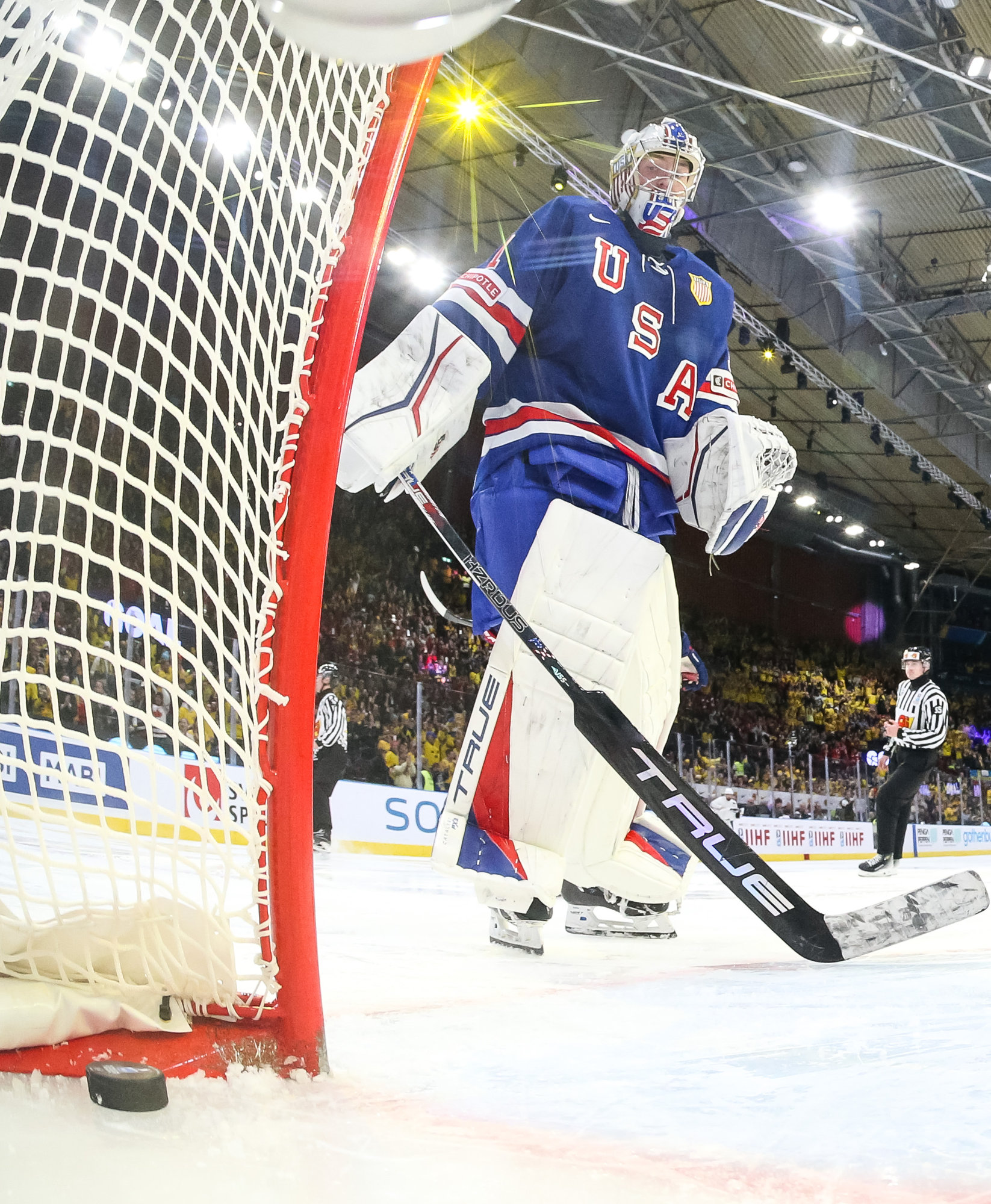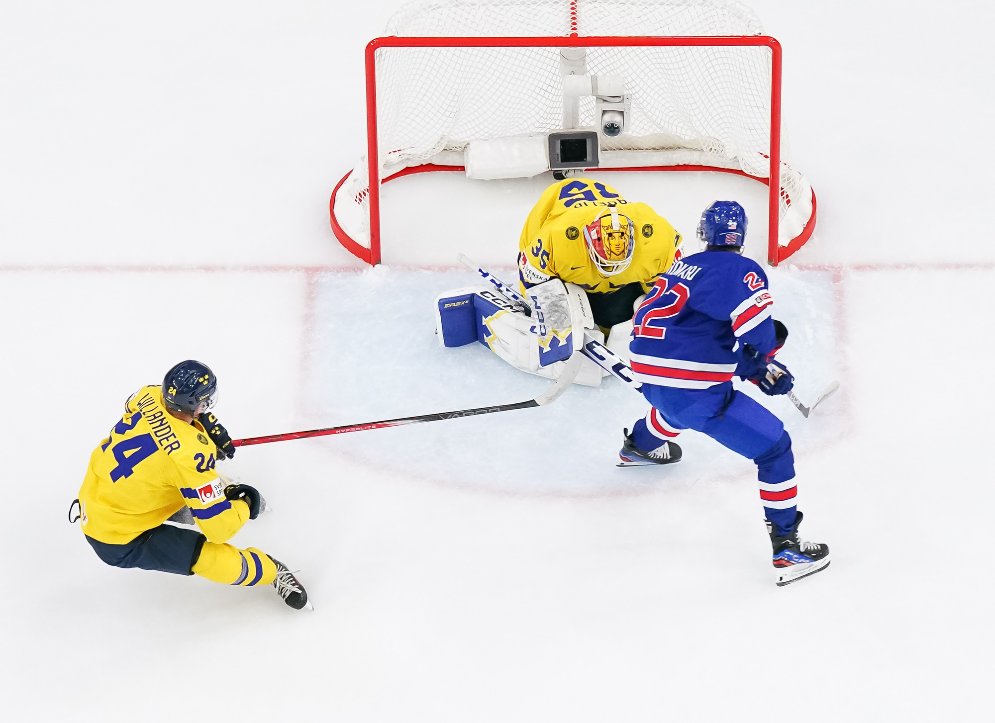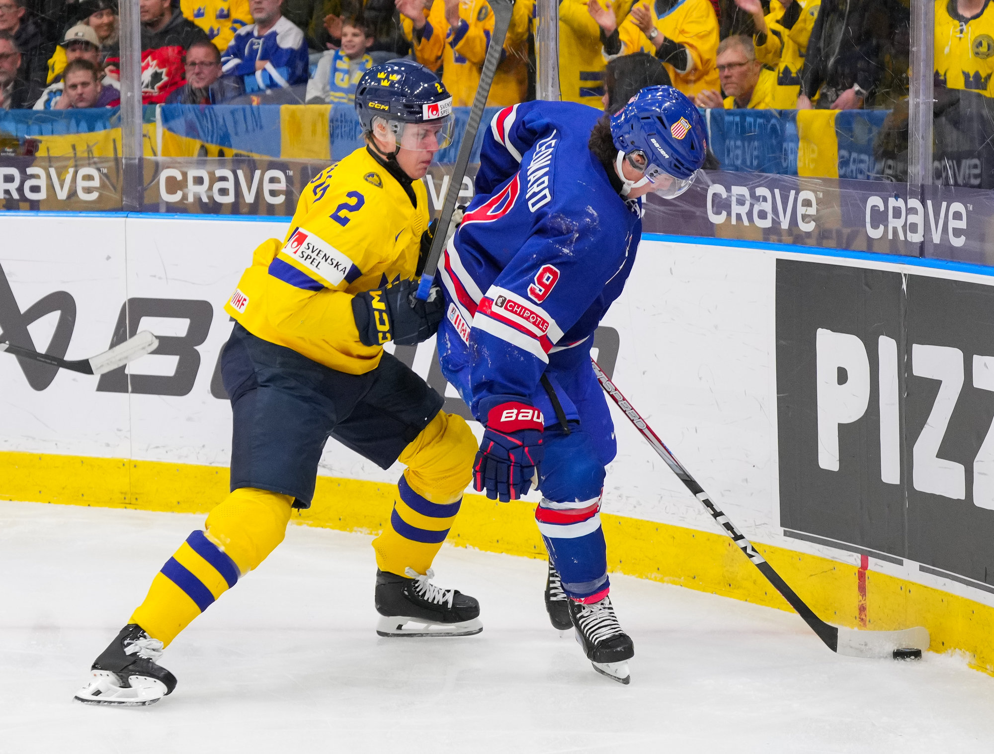Making matters worse, Ostlund took a double minor for high sticking midway through the period, and although the Swedish penalty killers were flawless, it killed four more minutes off the clock for the U.S. Soon after he came out, Ostlund hit the post, and then he was beaten in his own end to the puck by Ryan Leonard, who converted the play with a nice shot at 16:12, more or less sealing the victory.