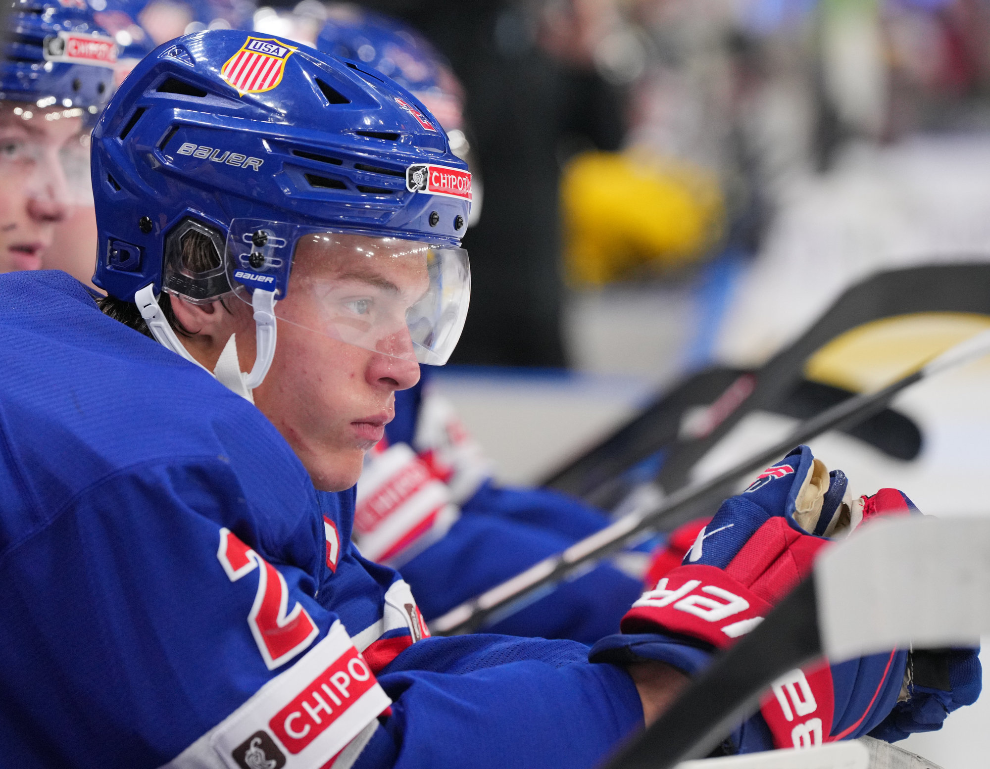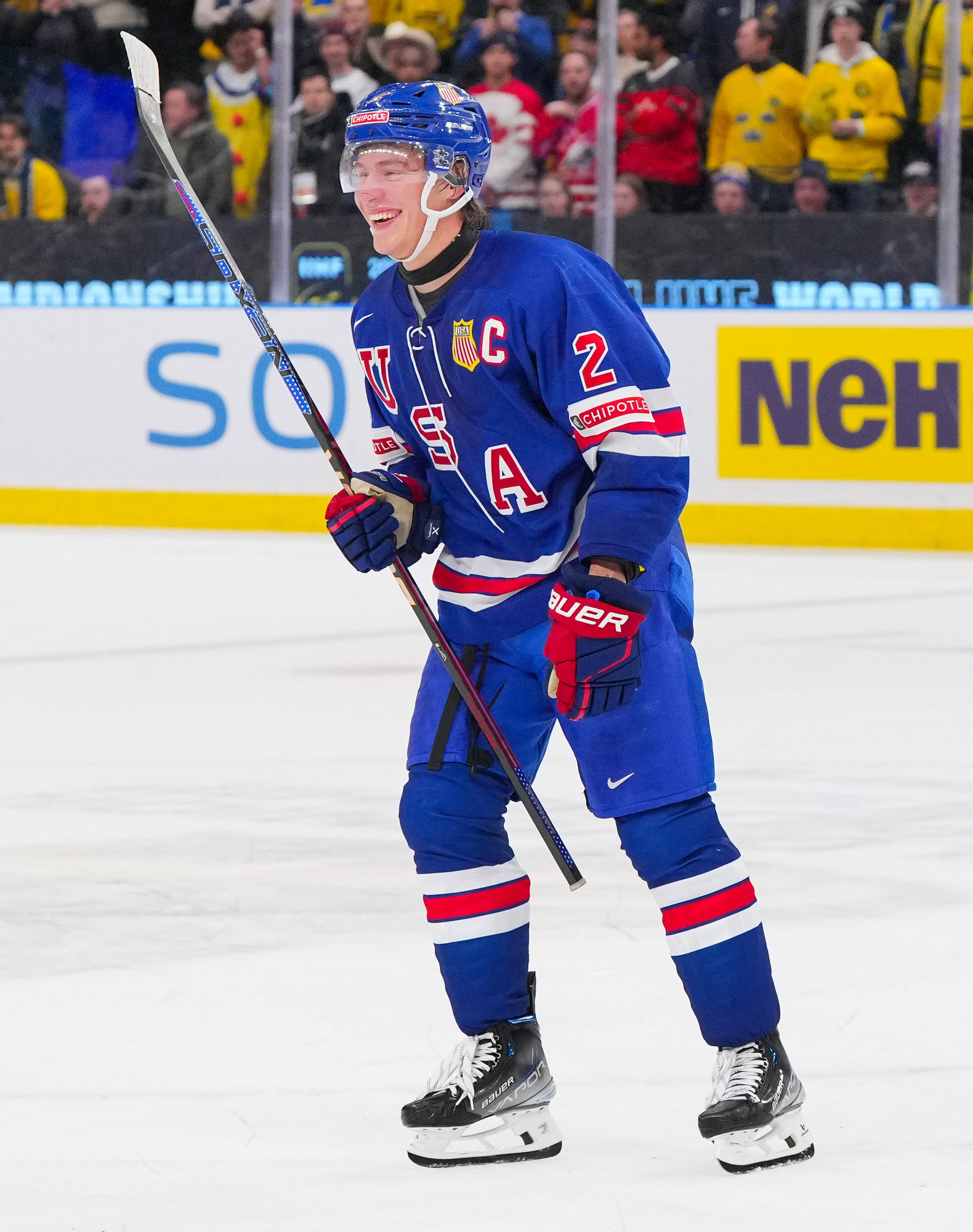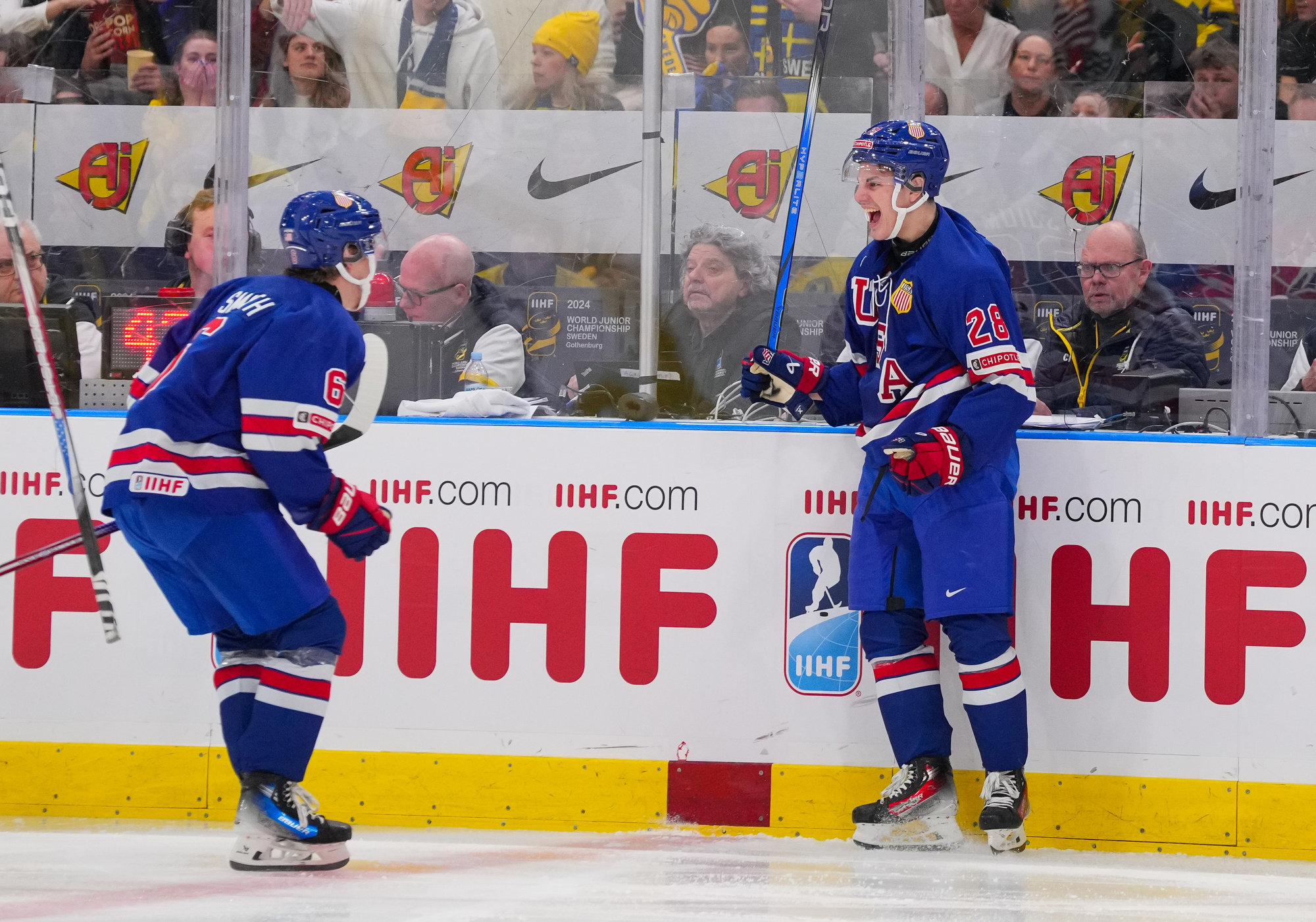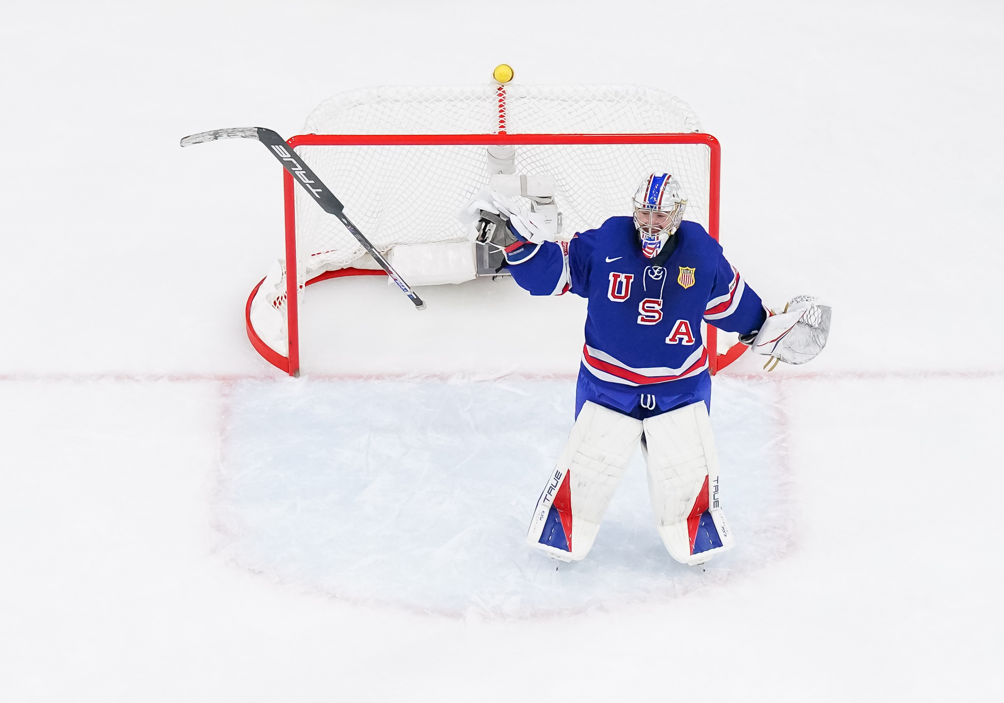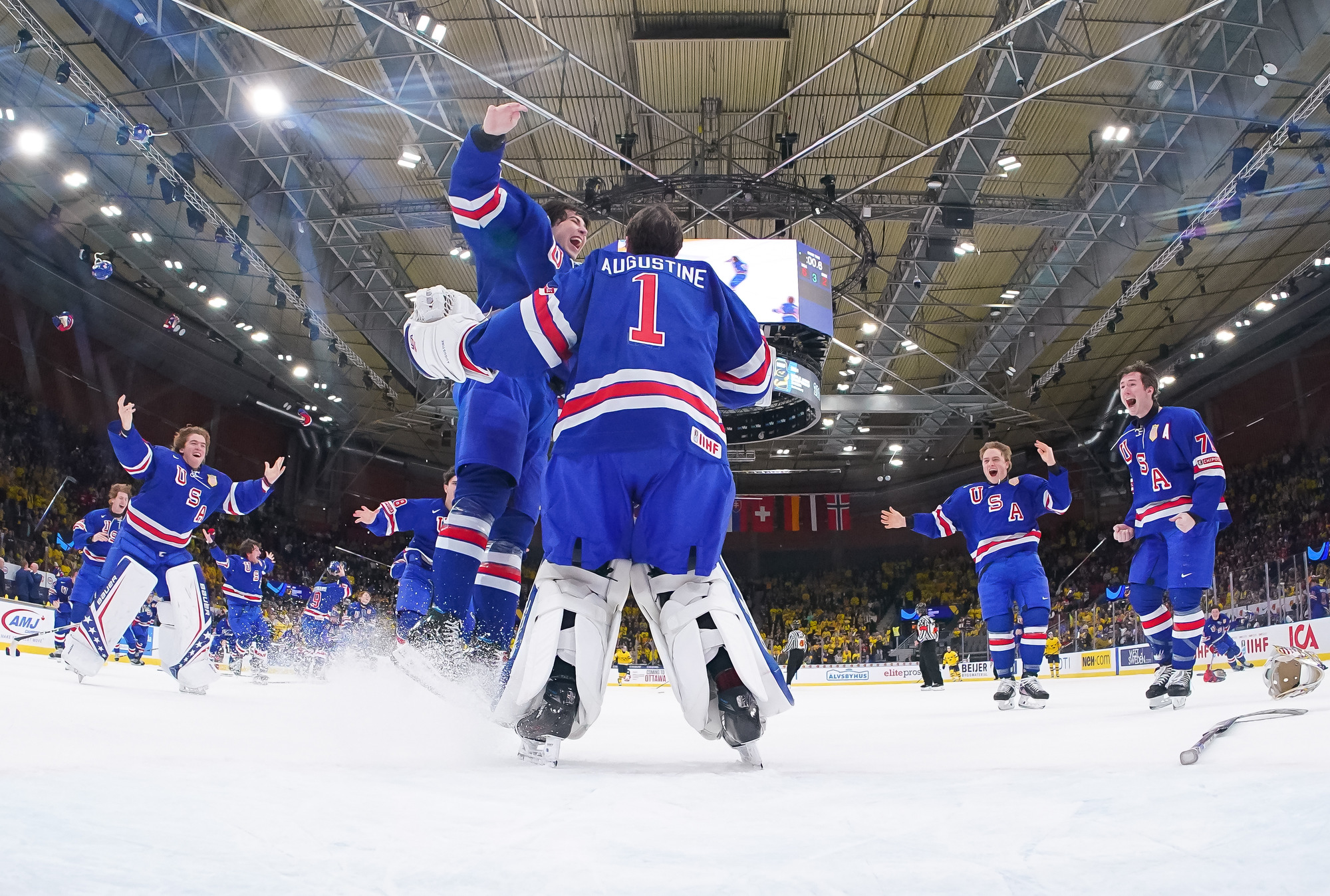 The game started cautiously, but Sweden started to assert itself and had the puck in the U.S. end for several extended stretches, but they misfired too often and ended up not testing Augustine to any great degree. Their best player was Noah Ostlund, who had three terrific chances. But he fired high and wide on the first, didn’t get much wood on a backhand between his legs on the second, and was stopped by Augustine after a great move on the third.