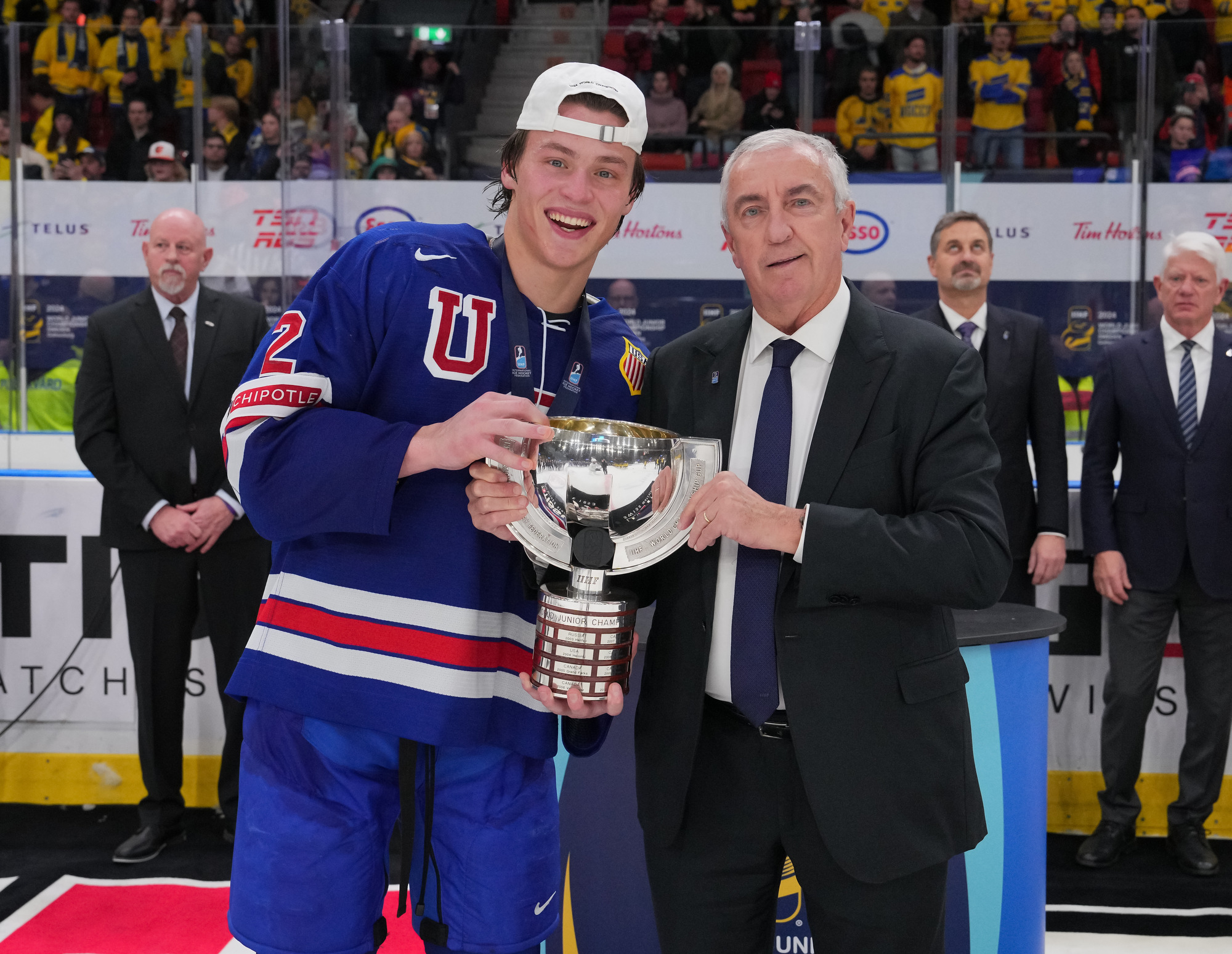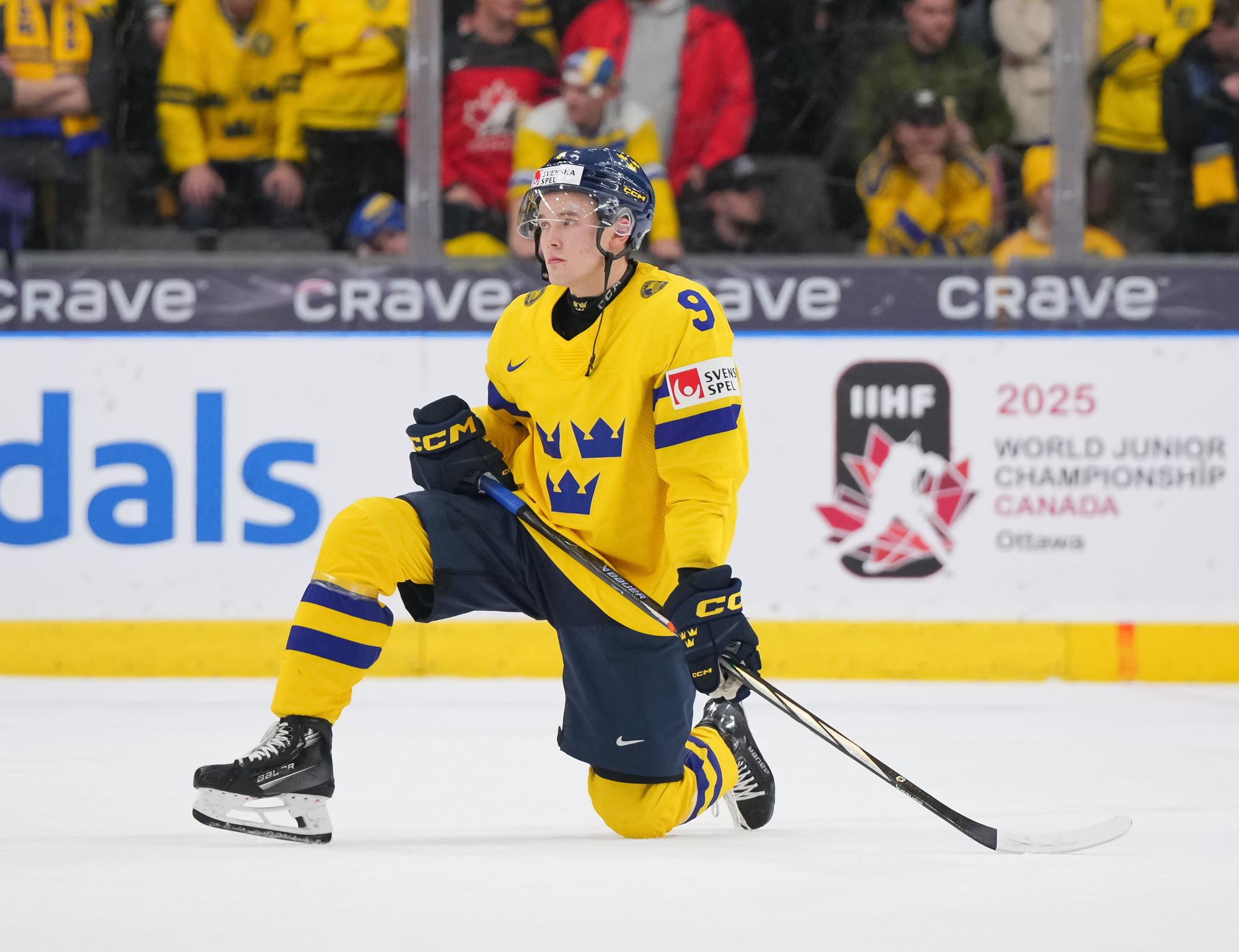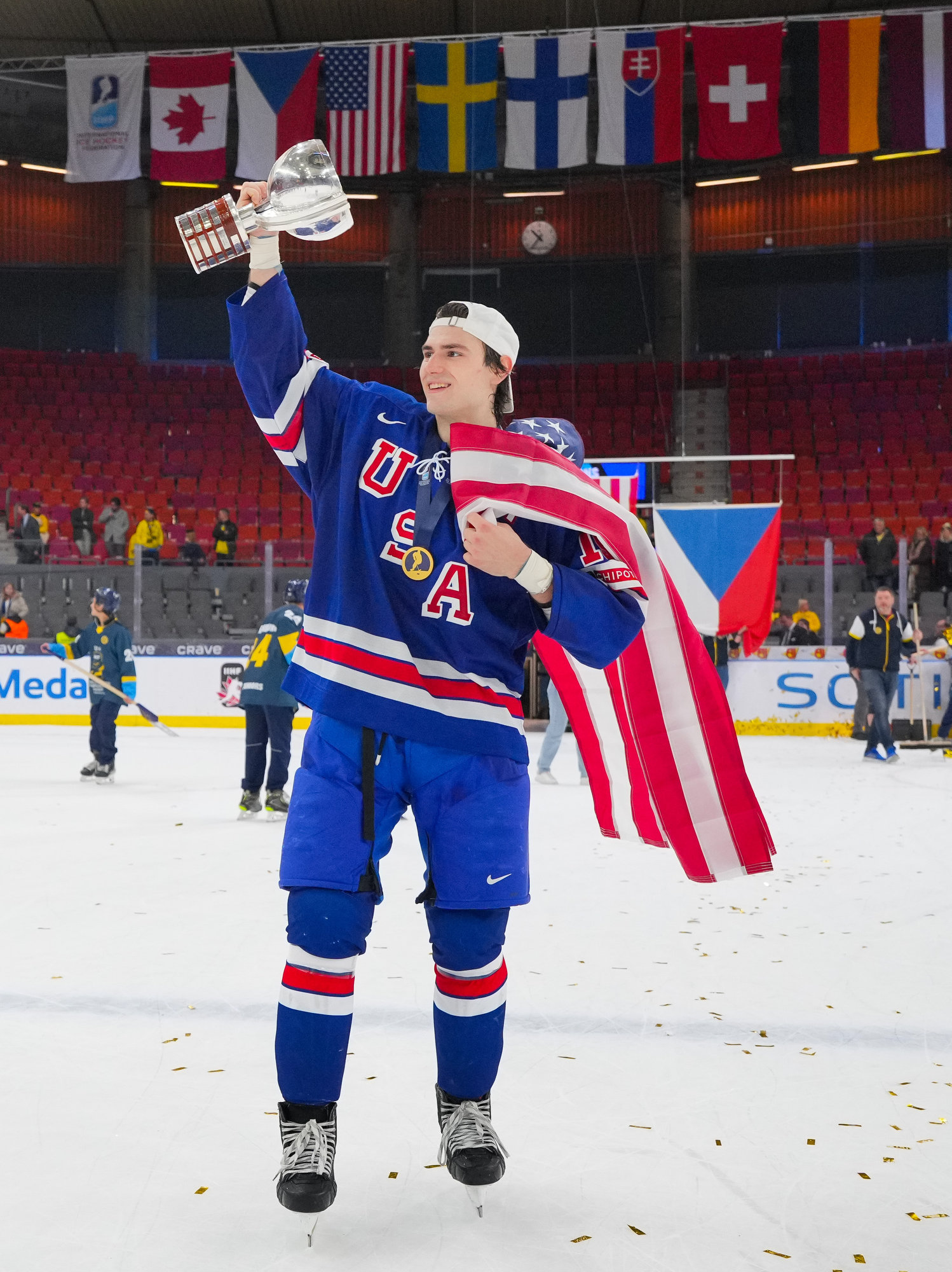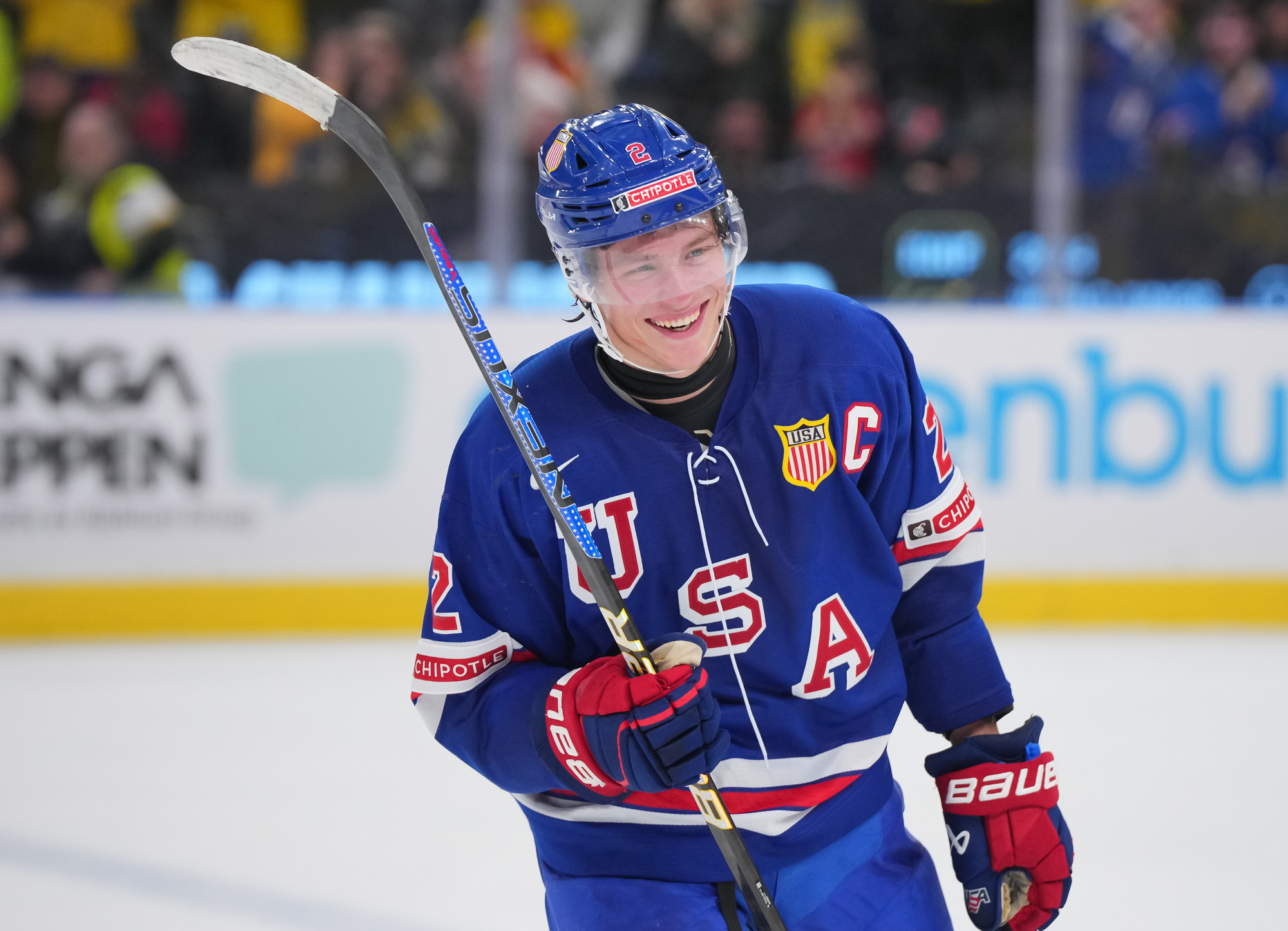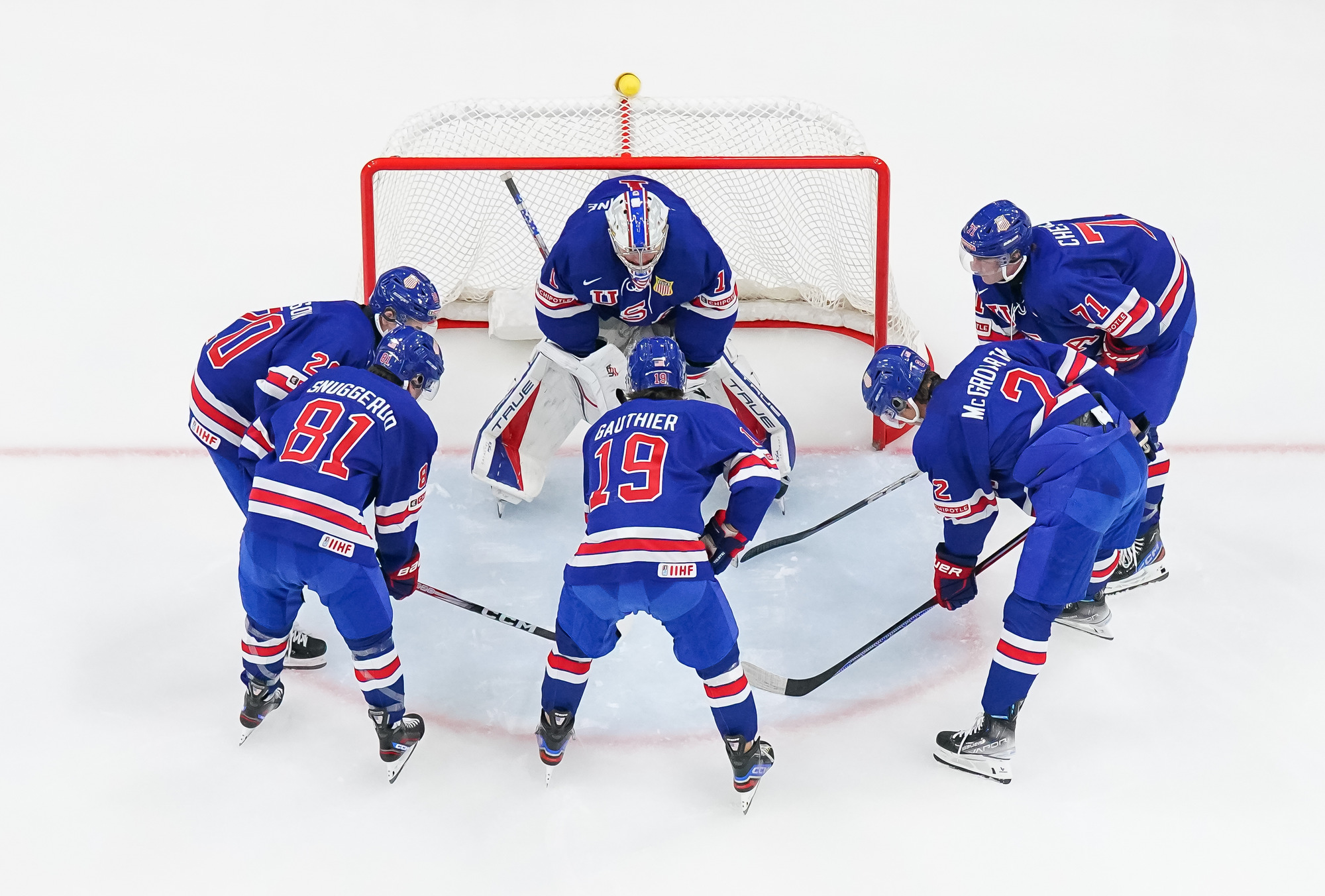 The game started cautiously, but Sweden started to assert itself and had the puck in the U.S. end for several extended stretches, but they misfired too often and ended up not testing Augustine to any great degree. Their best player was Noah Ostlund, who had three terrific chances. But he fired high and wide on the first, didn’t get much wood on a backhand between his legs on the second, and was stopped by Augustine after a great move on the third.