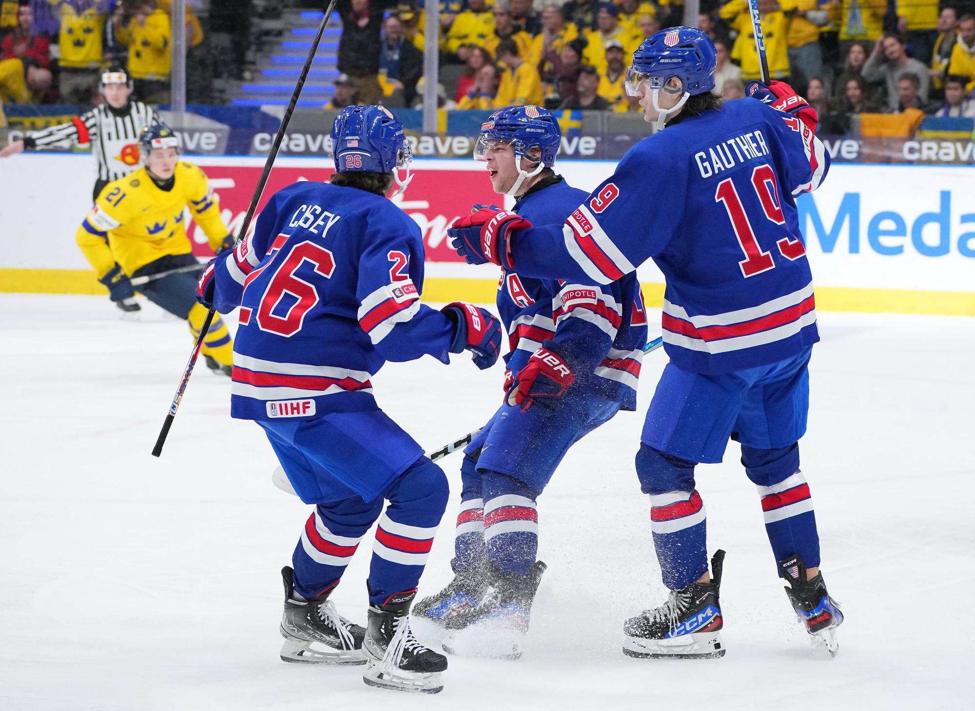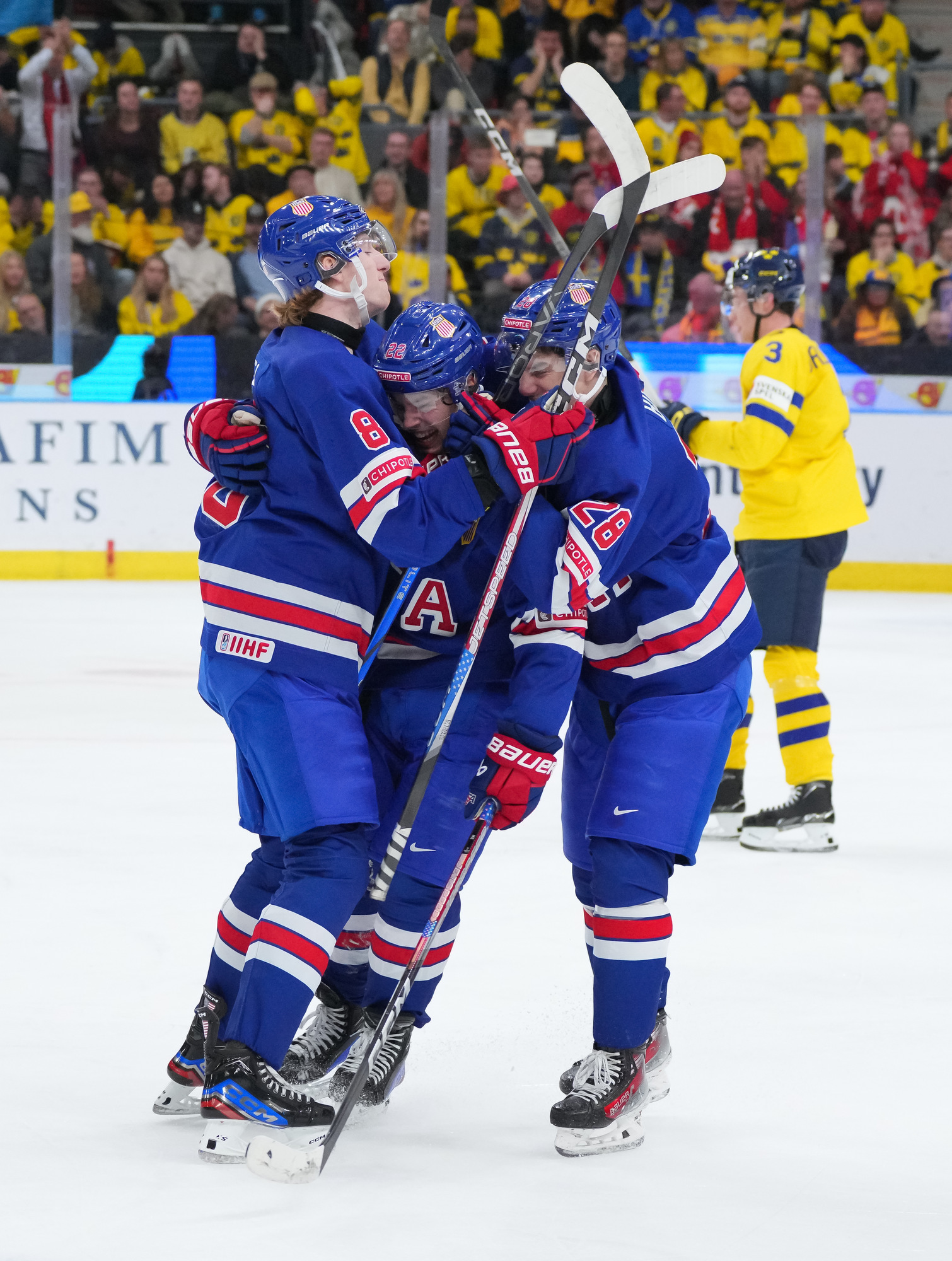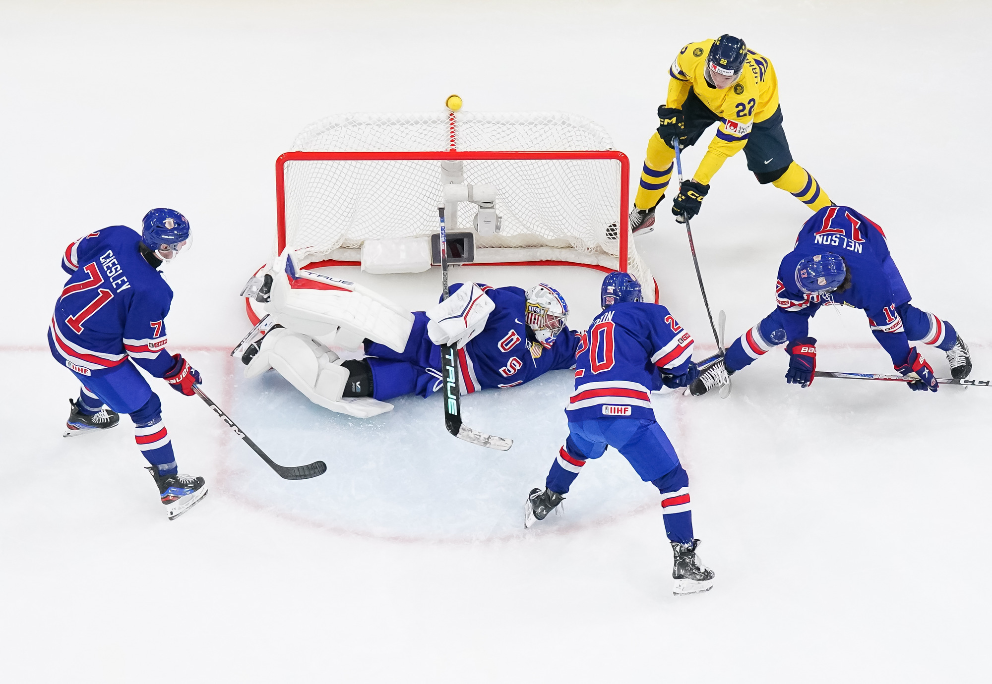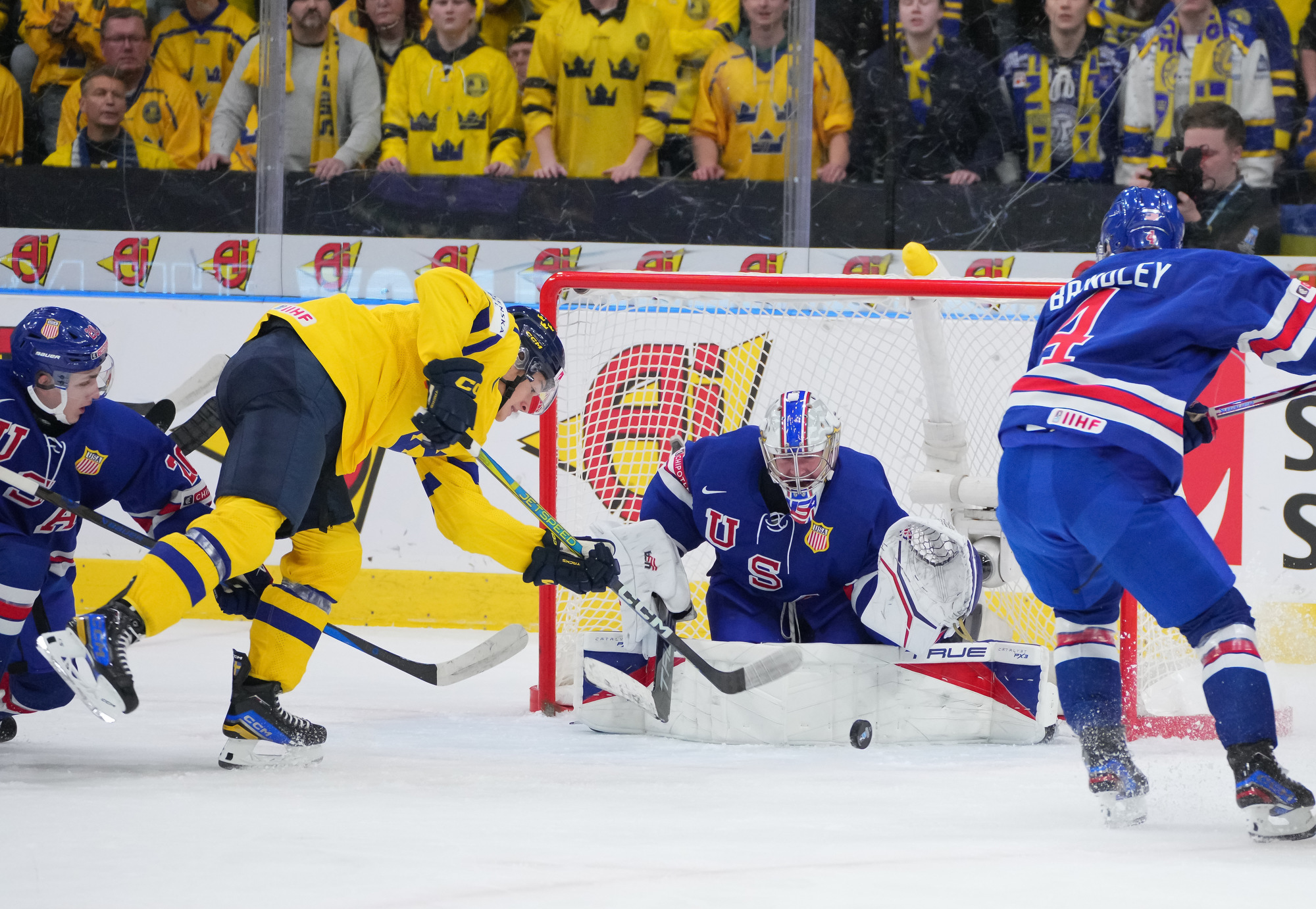 But the Americans responded just 1:19 into the third after Sweden iced the puck unnecessarily. The U.S. won the ensuing faceoff back to the point, and Zeev Buium wired a shot that Havelid probably should have stopped. 4-2 U.S..