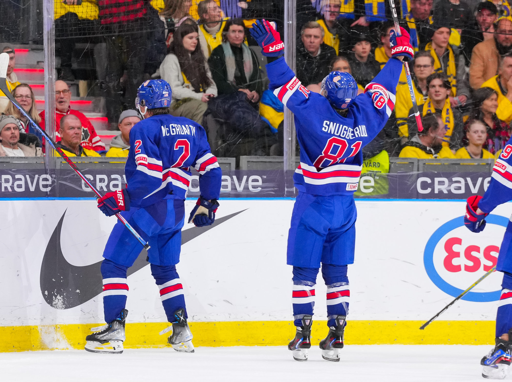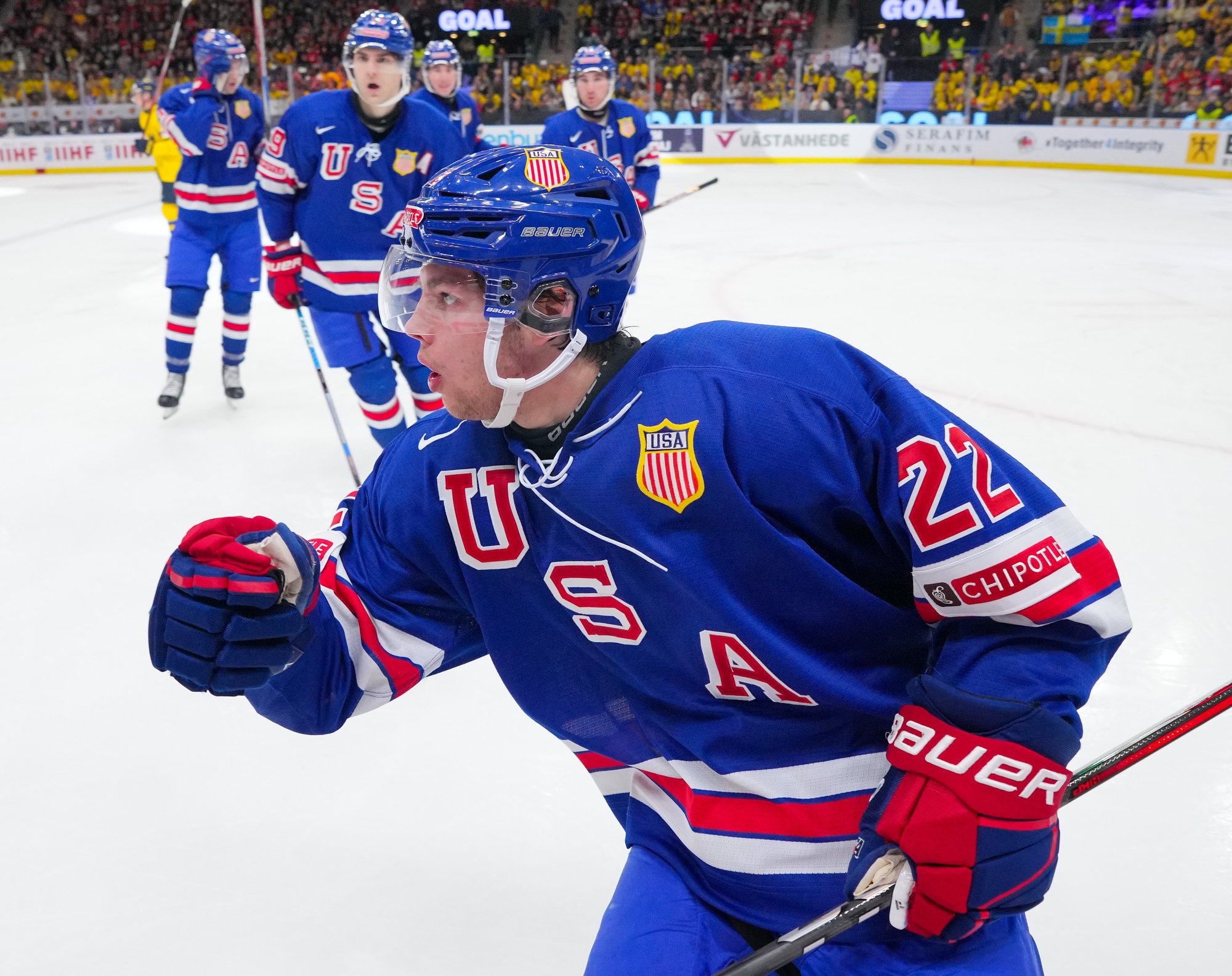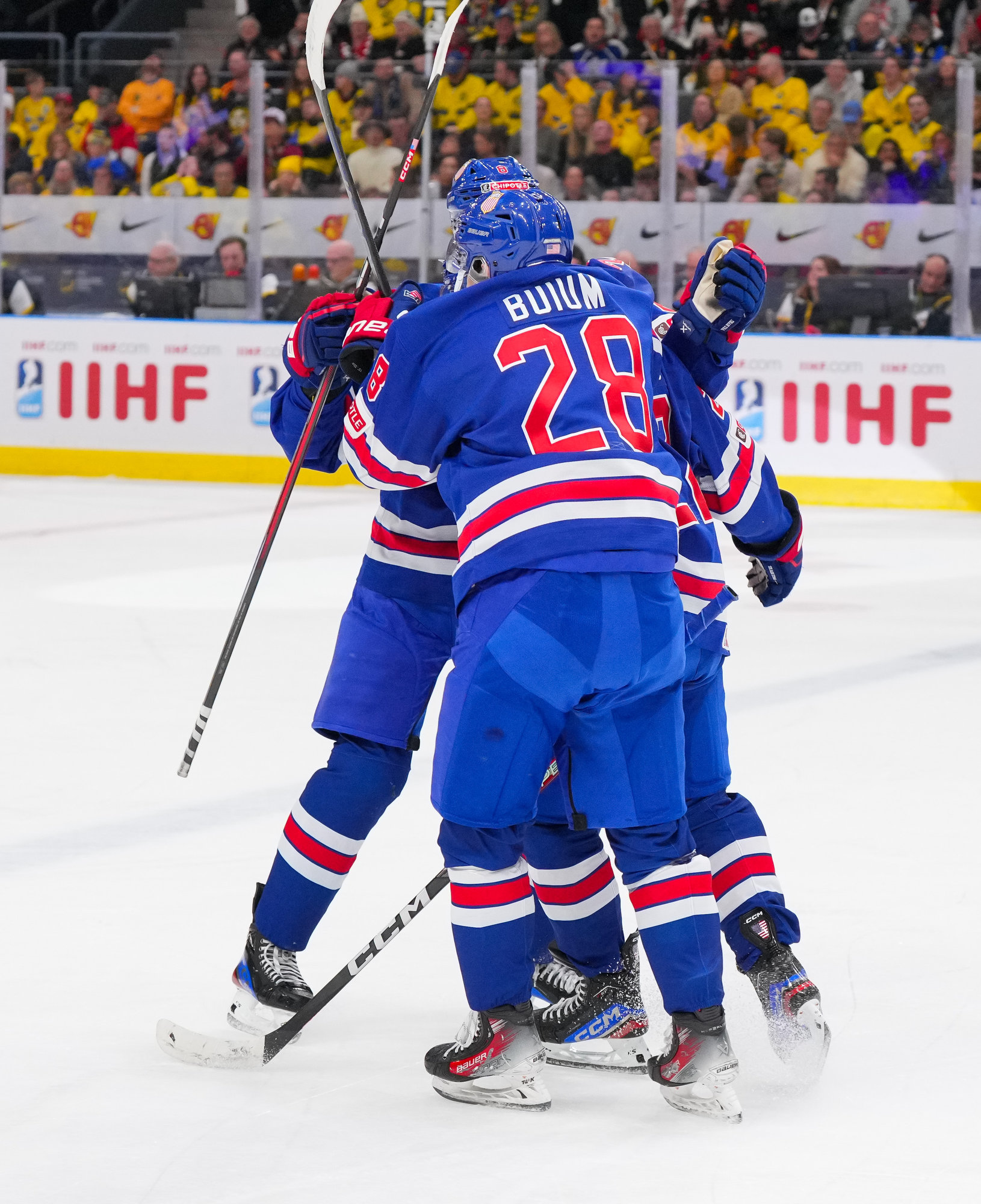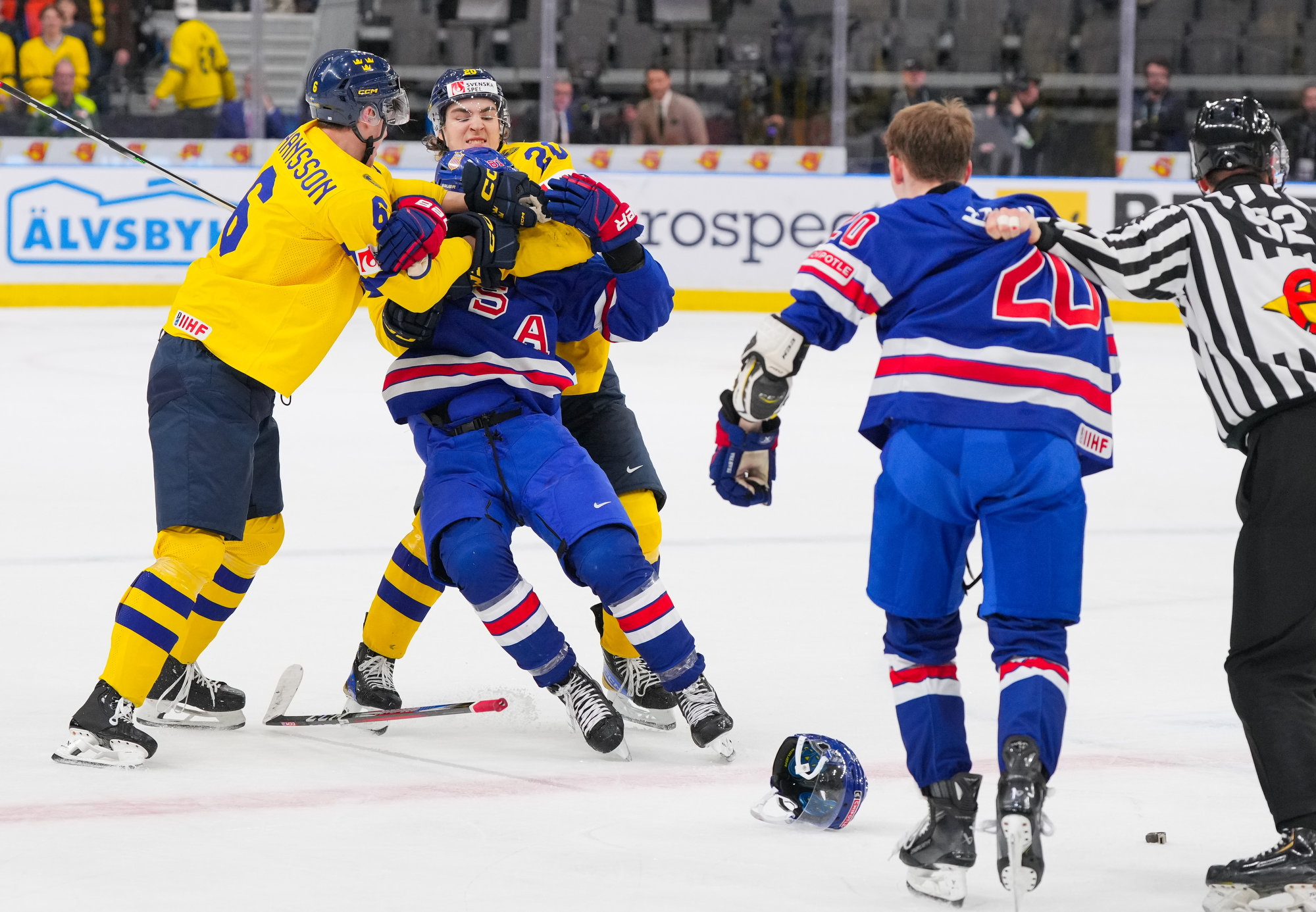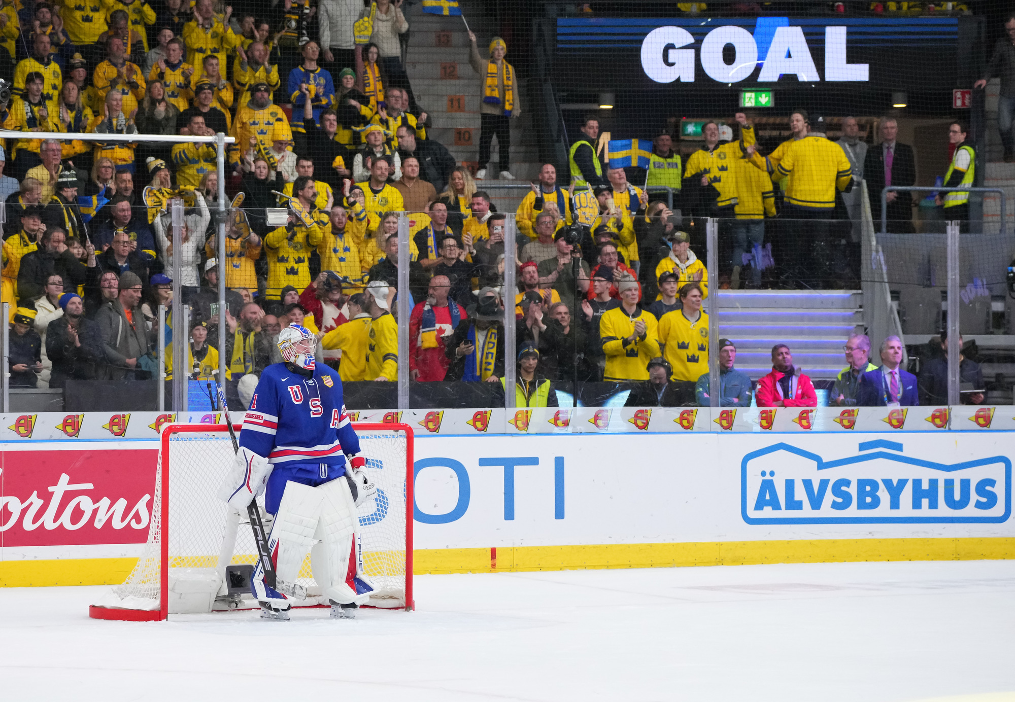 But the Americans responded just 1:19 into the third after Sweden iced the puck unnecessarily. The U.S. won the ensuing faceoff back to the point, and Zeev Buium wired a shot that Havelid probably should have stopped. 4-2 U.S..