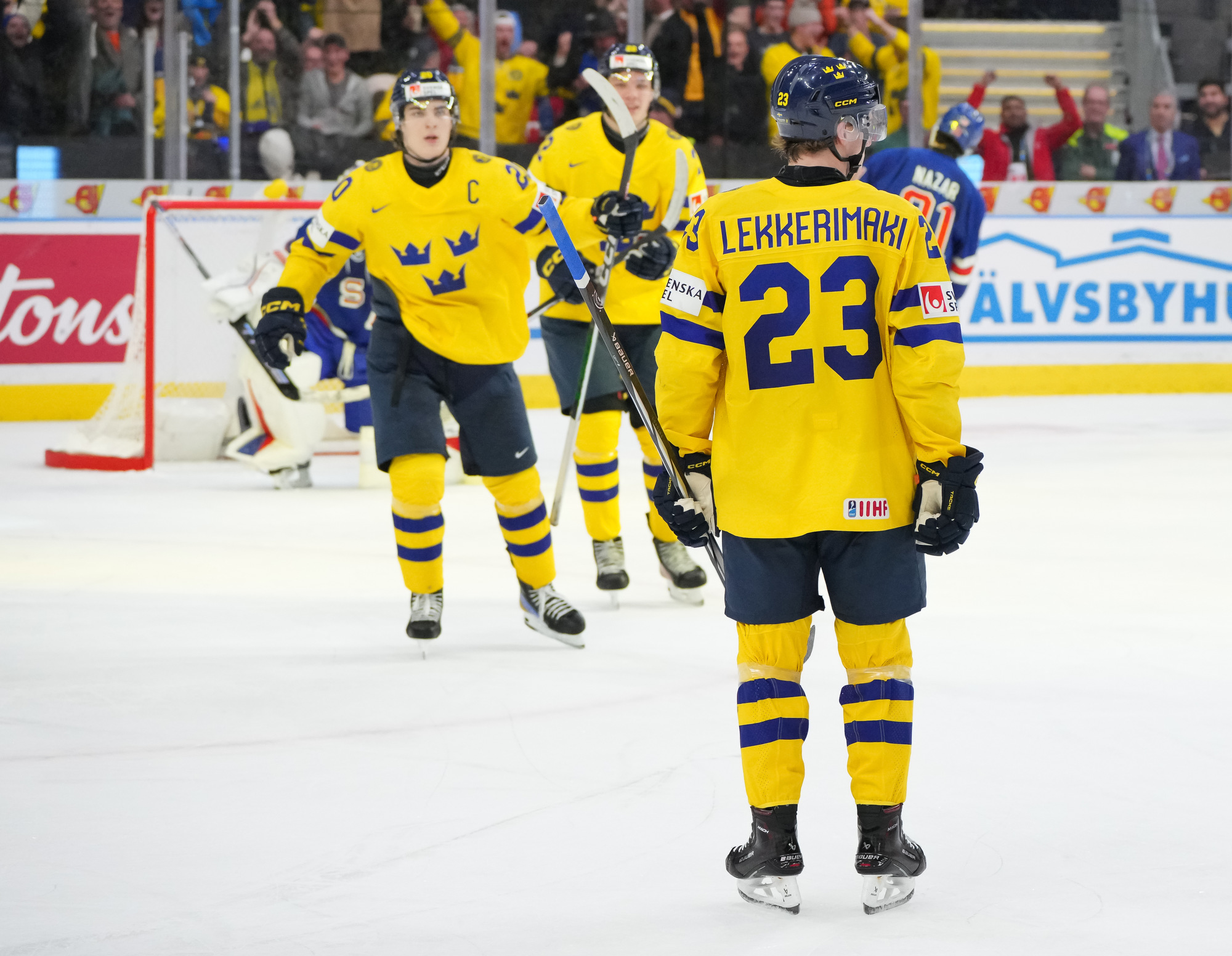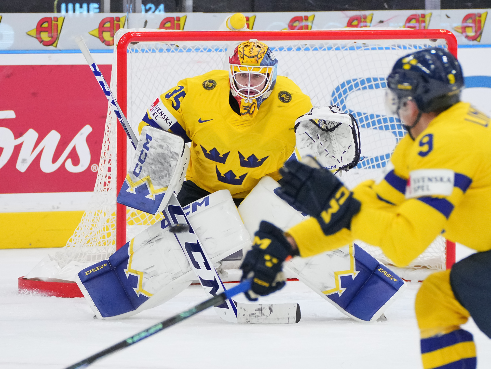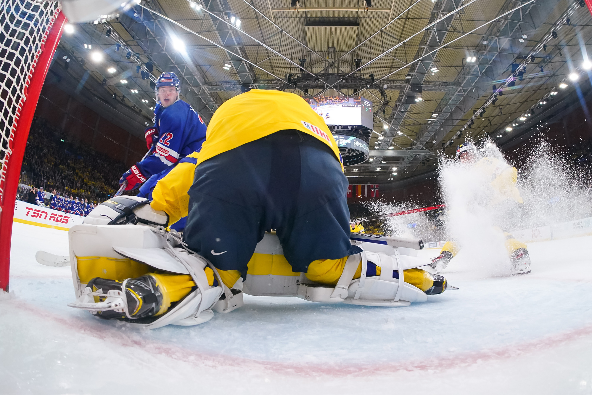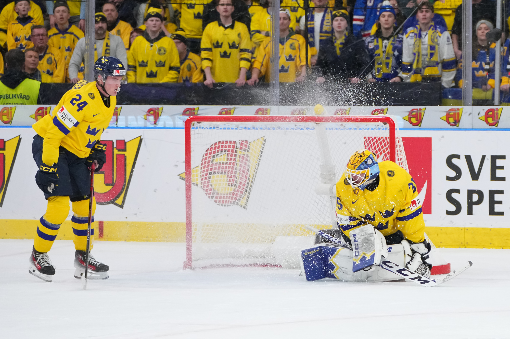 Sweden got a desperately needed goal before the end of the period, though. Working the power play, Jonathan Lekkerimaki blasted a high point shot past Augustine with only 5.2 seconds left on the clock, a motivating goal if ever there was one.
