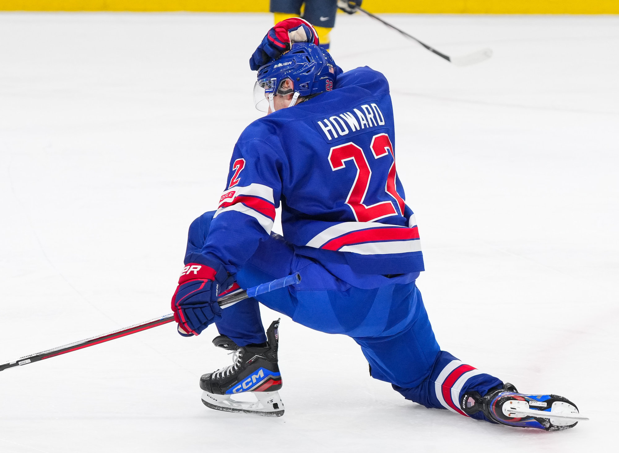 Worse for the home fans, the U.S. double their lead five minutes later. Howard came out from behind the goal and faked a pass in front, putting the puck on goal instead. It went off the goalie’s back skate and in, silencing the crowd and giving the visitors a 3-1 lead.