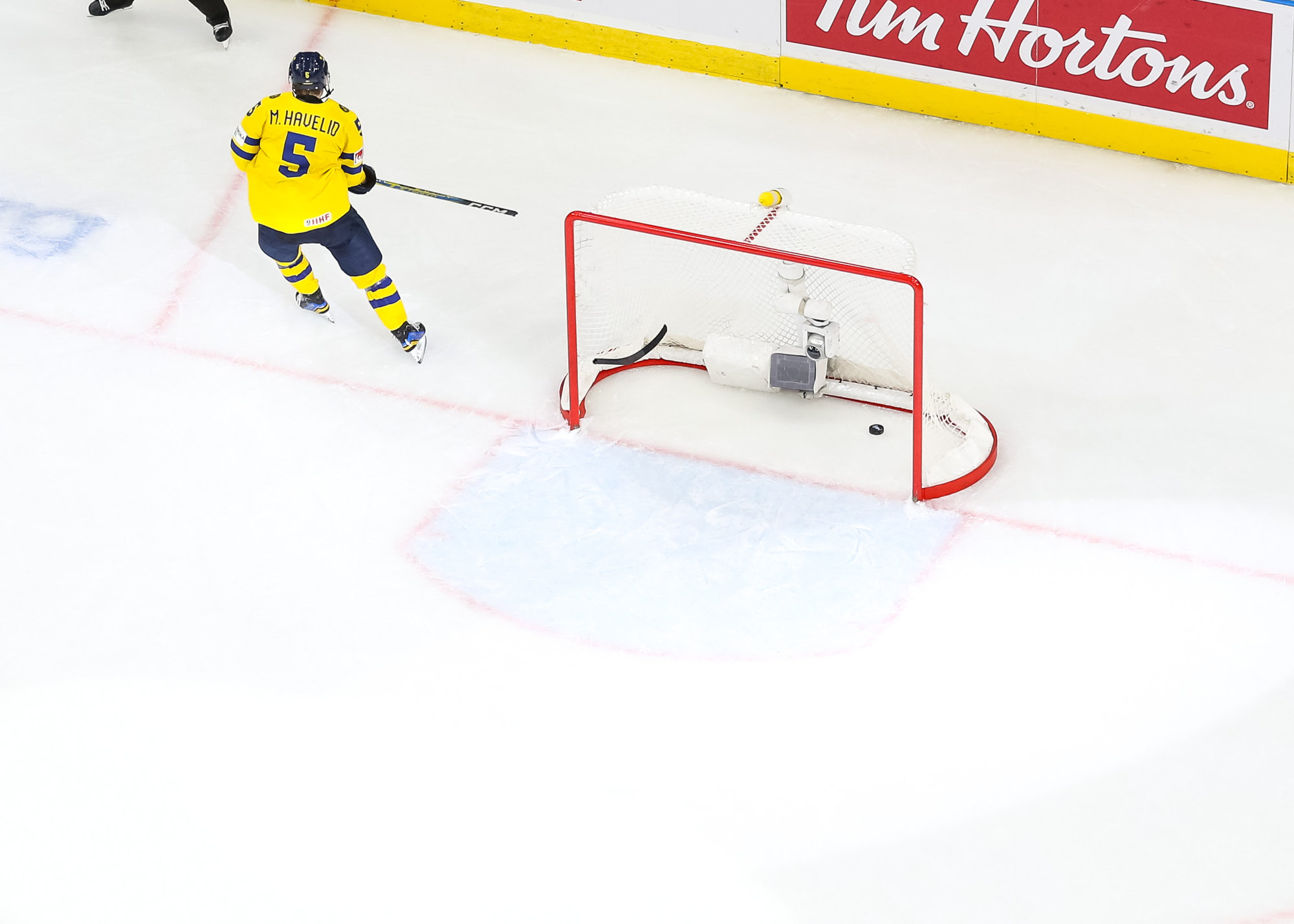 The Swedes got just the start they needed in the second, tying the game at 2:13 on a play we’ve seen before. Mattias Havelid took a simple point shot that was beautifully tipped in front by Otto Stenberg. The Swedes continued to press and had the better of play, but time after time they fired wide on a good scoring opportunity.