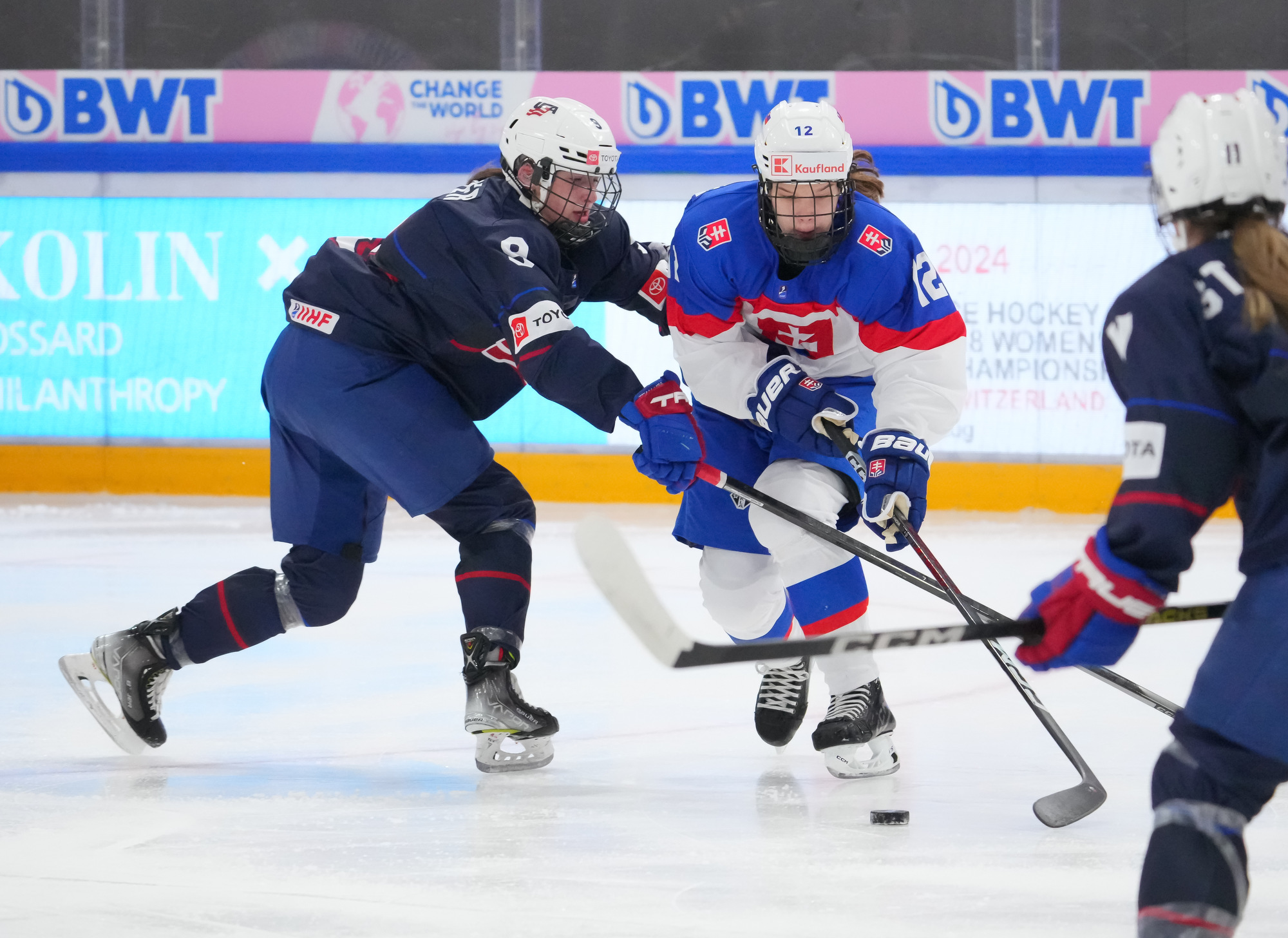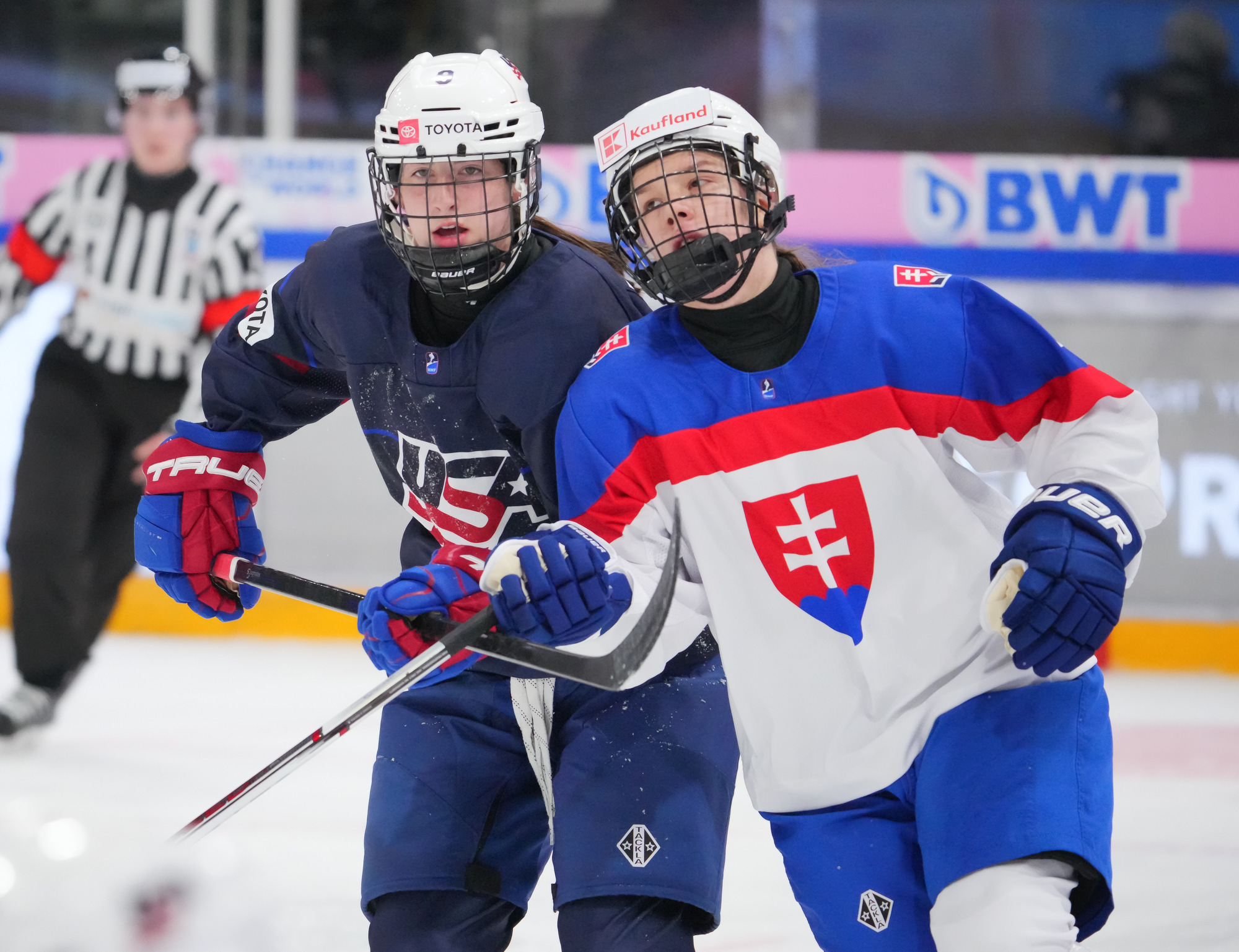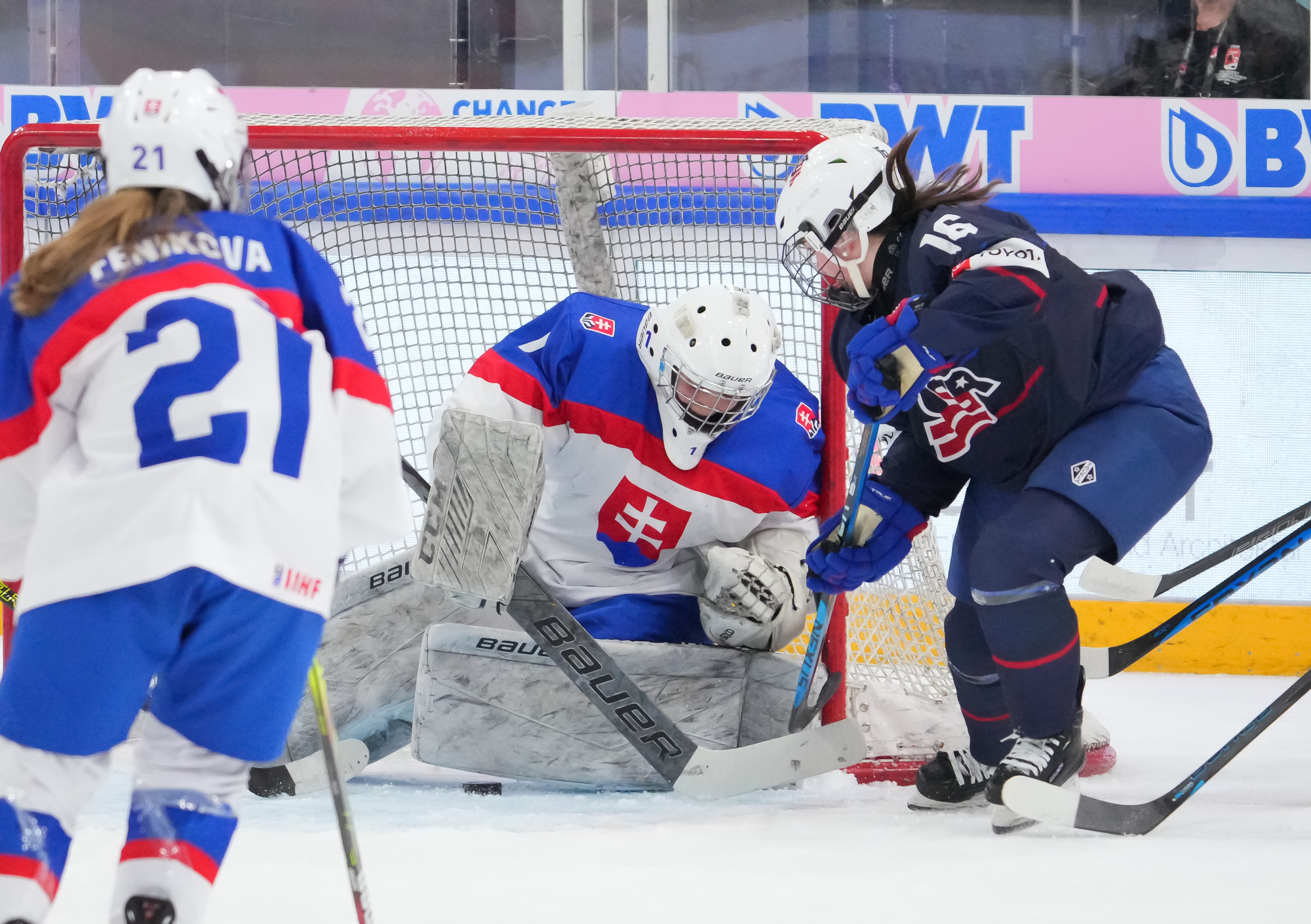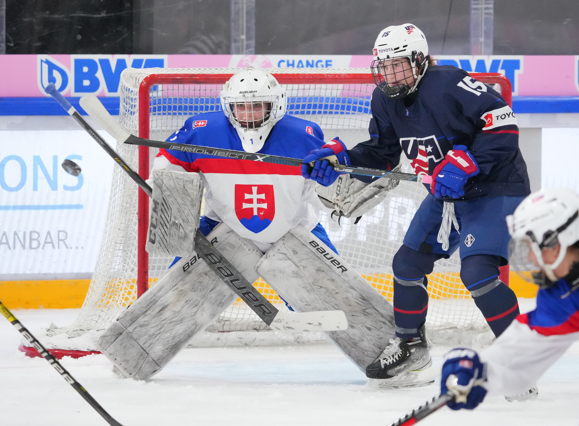 Penalty troubles kept the Slovaks pinned in their own end midway through. With about four minutes left, 2023 tournament MVP Nela Lopusanova dangled through the U.S. defence but couldn't solve Hemp. Slovakia proved ineffective during a late-period power play with Megan Healy off for tripping.