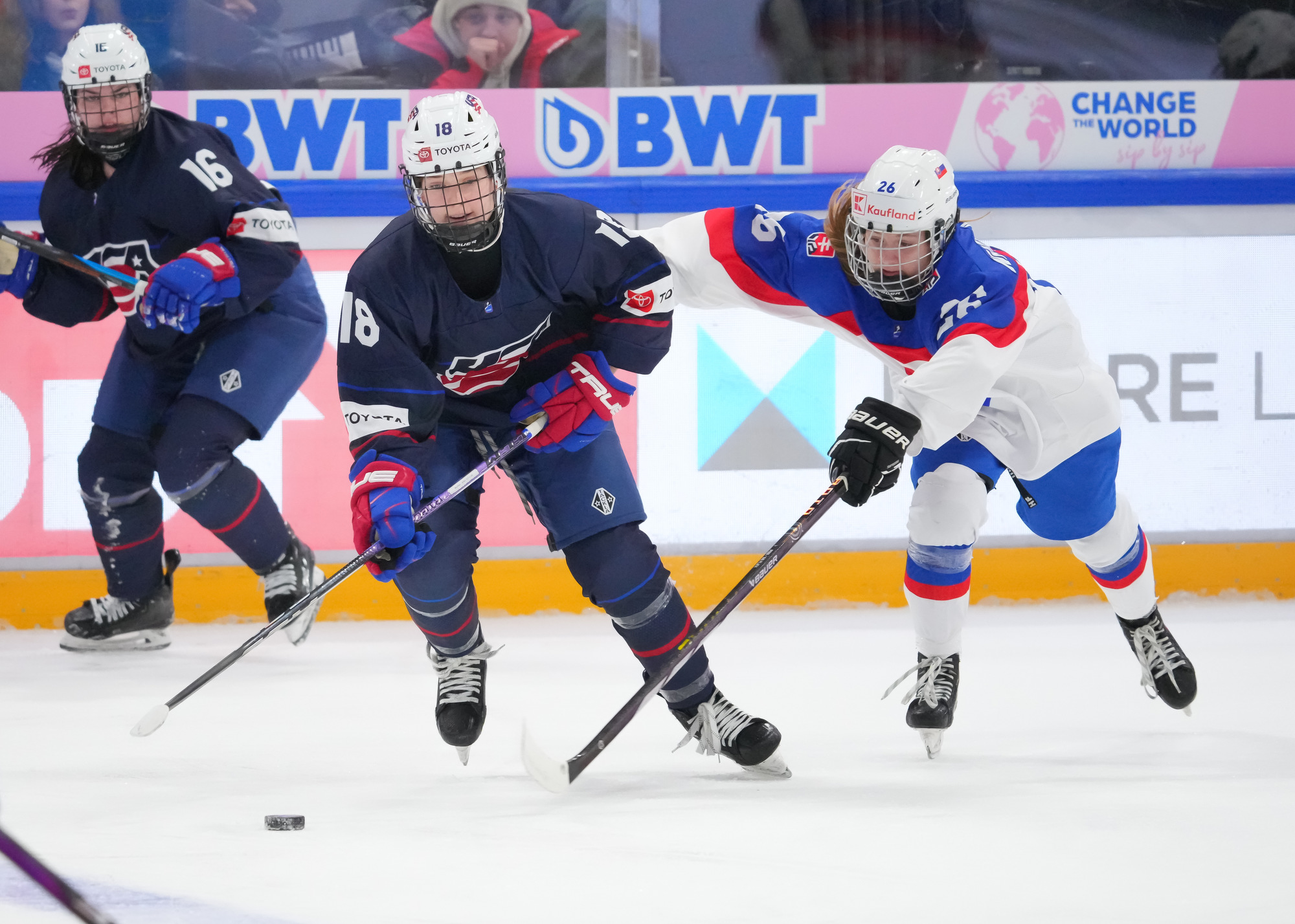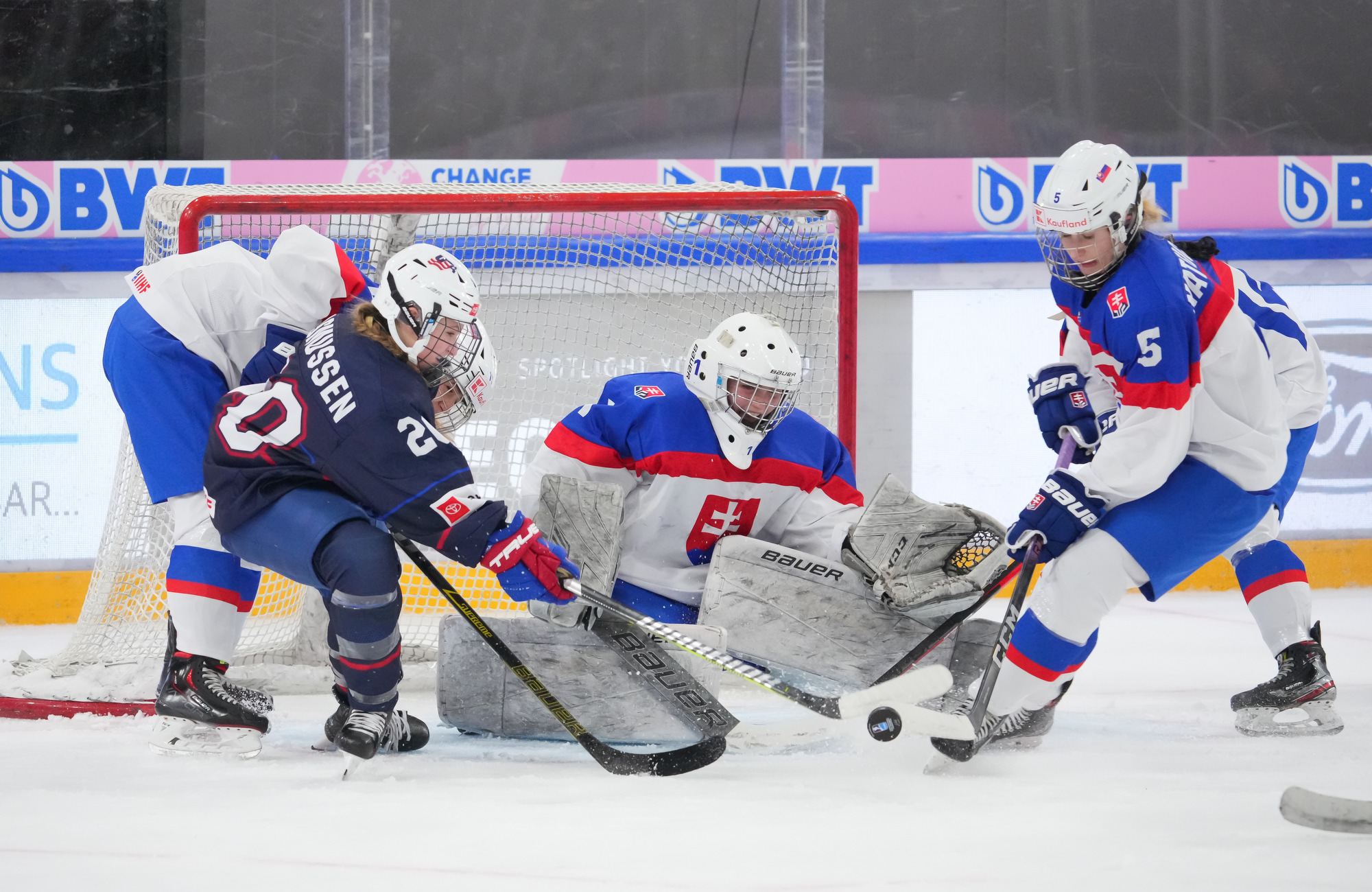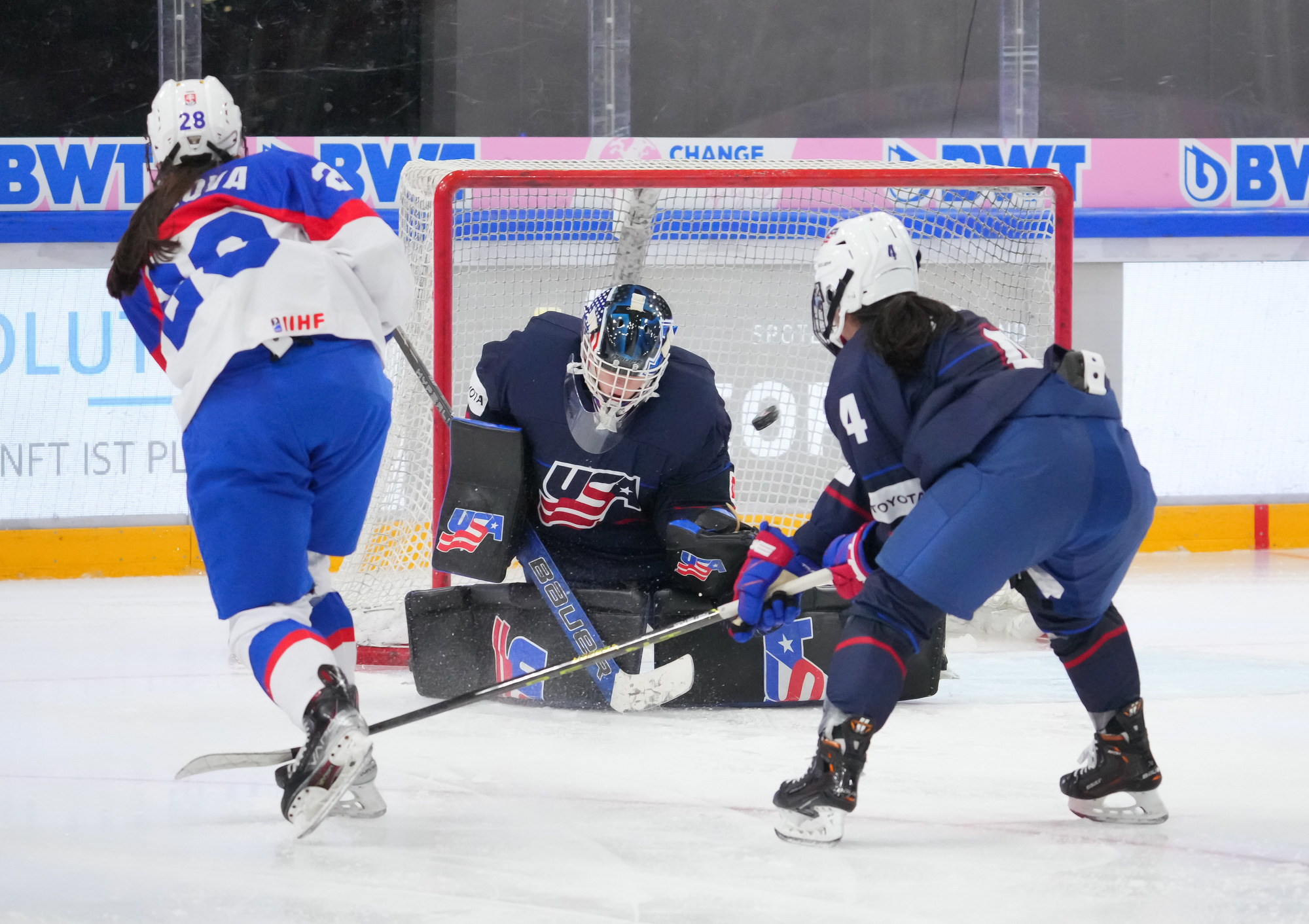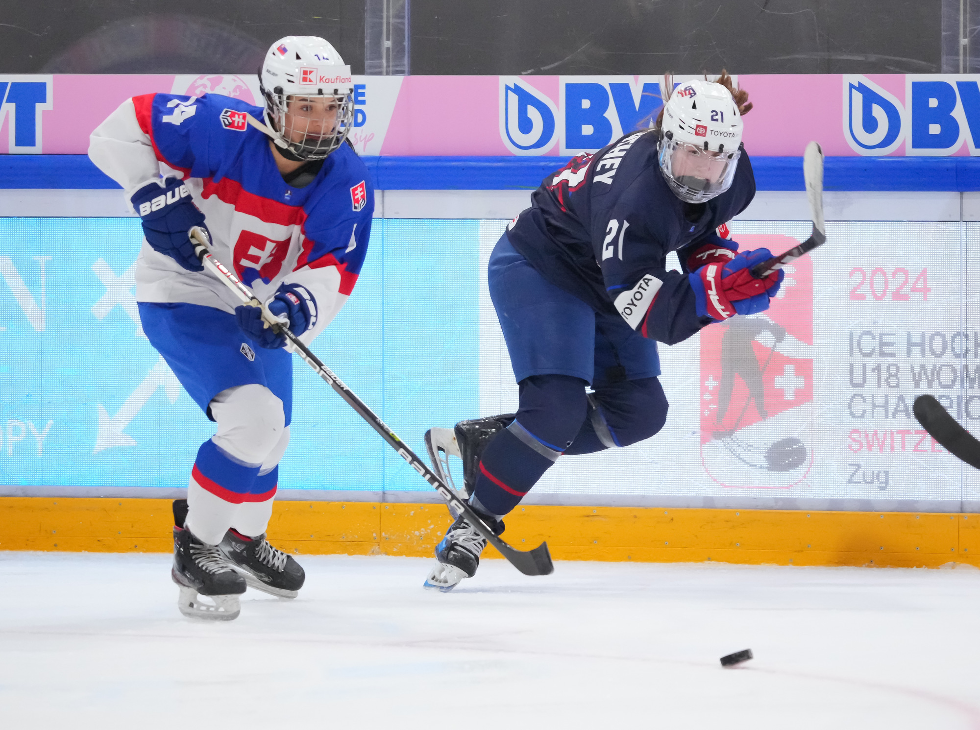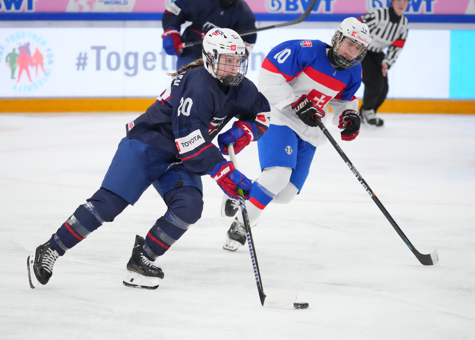 Penalty troubles kept the Slovaks pinned in their own end midway through. With about four minutes left, 2023 tournament MVP Nela Lopusanova dangled through the U.S. defence but couldn't solve Hemp. Slovakia proved ineffective during a late-period power play with Megan Healy off for tripping.