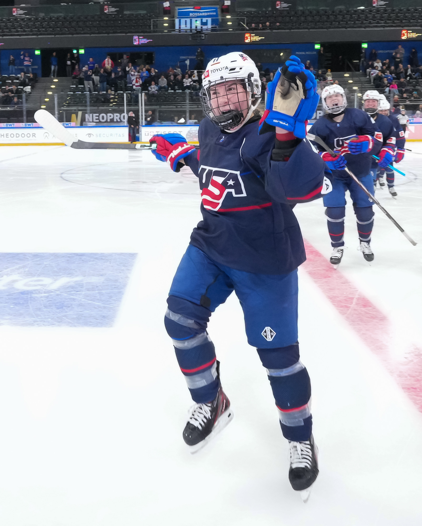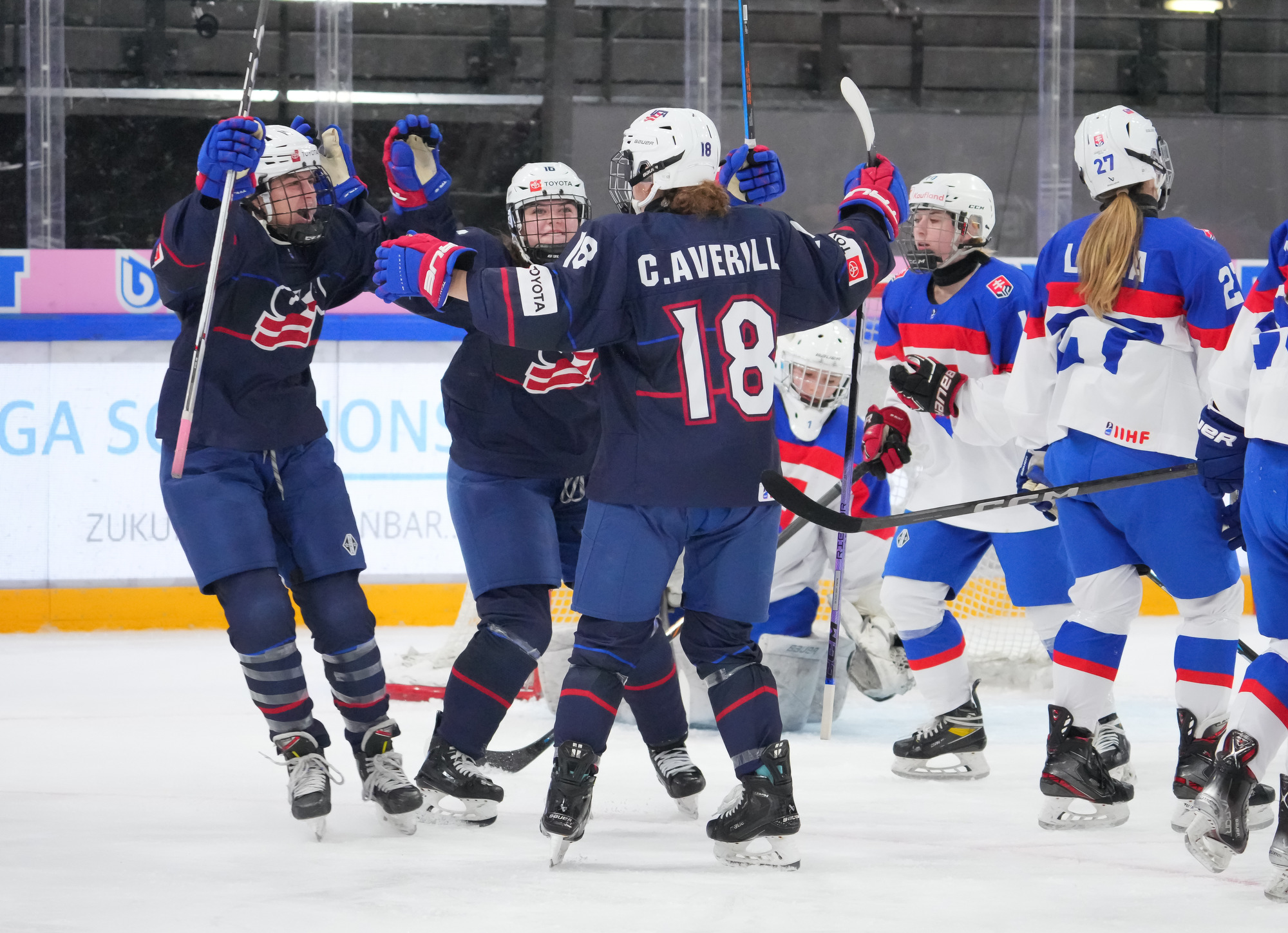 Caroline Averill added a pair of goals. Josie St. Martin, Jordyn Petrie, Ava Thomas, and Morgan McGathey also tallied for the Americans, who outshot the Slovaks 63-10.