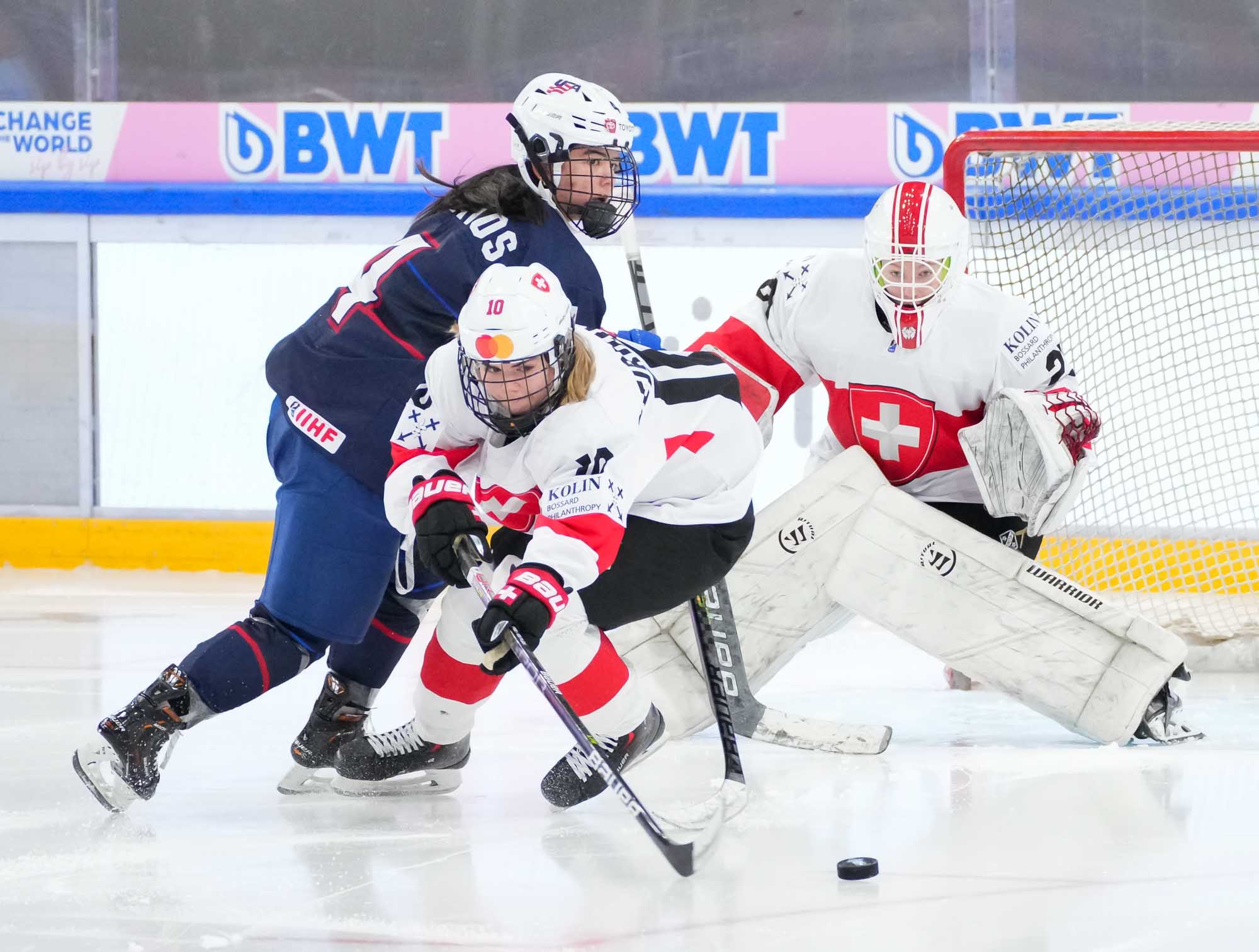 Monday's game was a rematch 16 years in the making. In their only previous meeting, the U.S. hammered Switzerland 11-0 at the inaugural U18 Women’s Worlds in Calgary on 8 January, 2008.