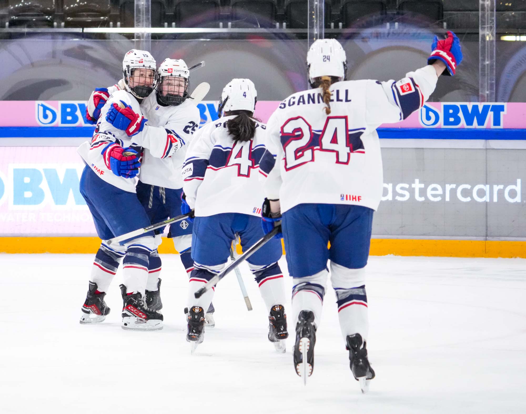 U,S. assistant captain Bella Fanale, another returnee from last year, made her 2024 debut, but only played 2:40. The Bishop Kearney Selects forward missed the first two games due to an injury sustained during pre-tournament action versus the Czechs.