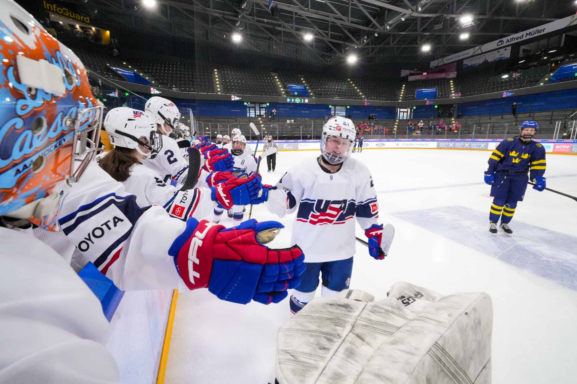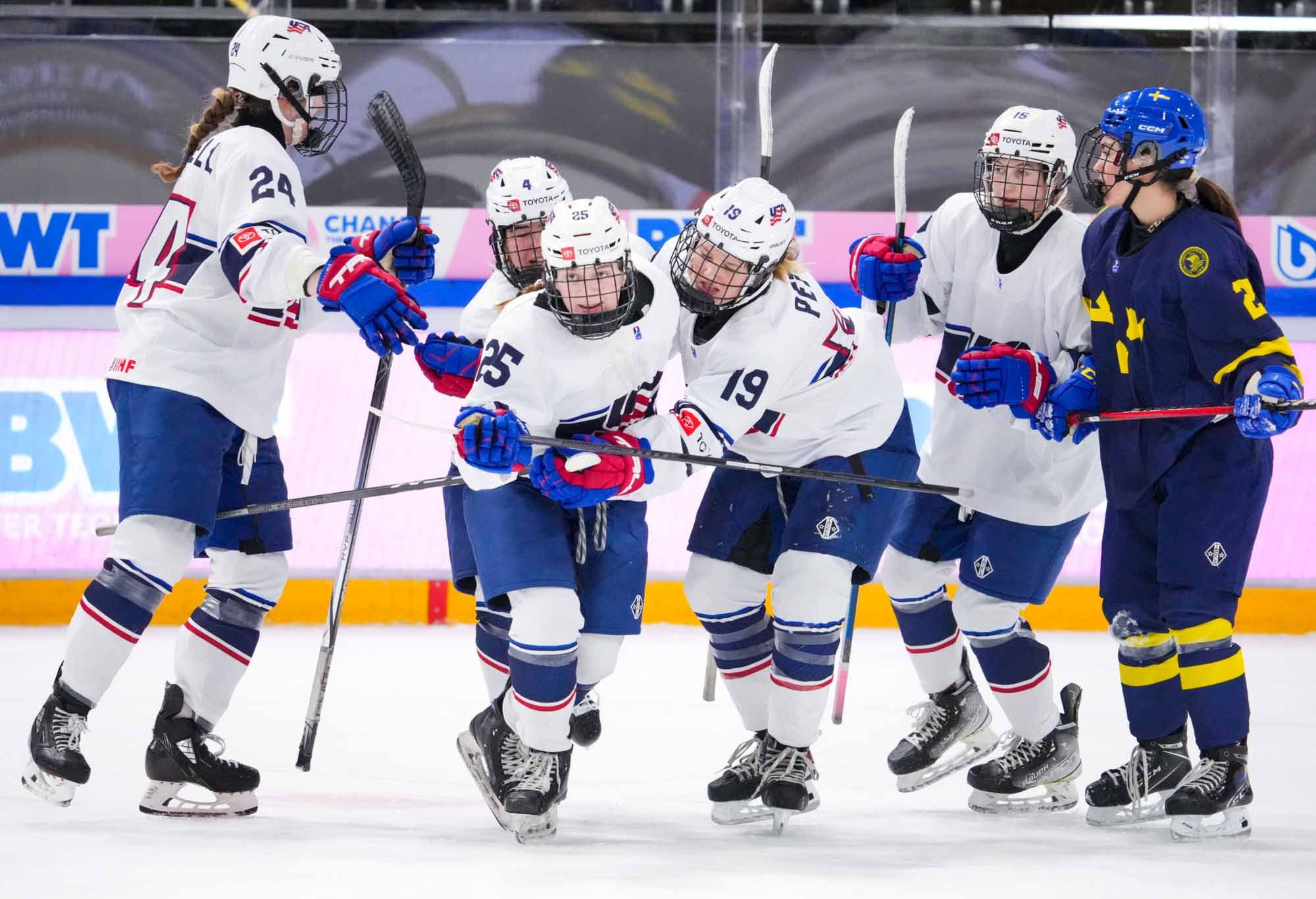 The U.S. took charge in the second period, scoring three times. Mary Derrenbacher impressed with a goal and an assist, and Ellie Dimatos totalled two helpers. In a duel of number one goalies, the U.S.’s Layla Hemp earned her first shutout versus Sweden's Maja Helge. Shots favoured the U.S. 35-28.