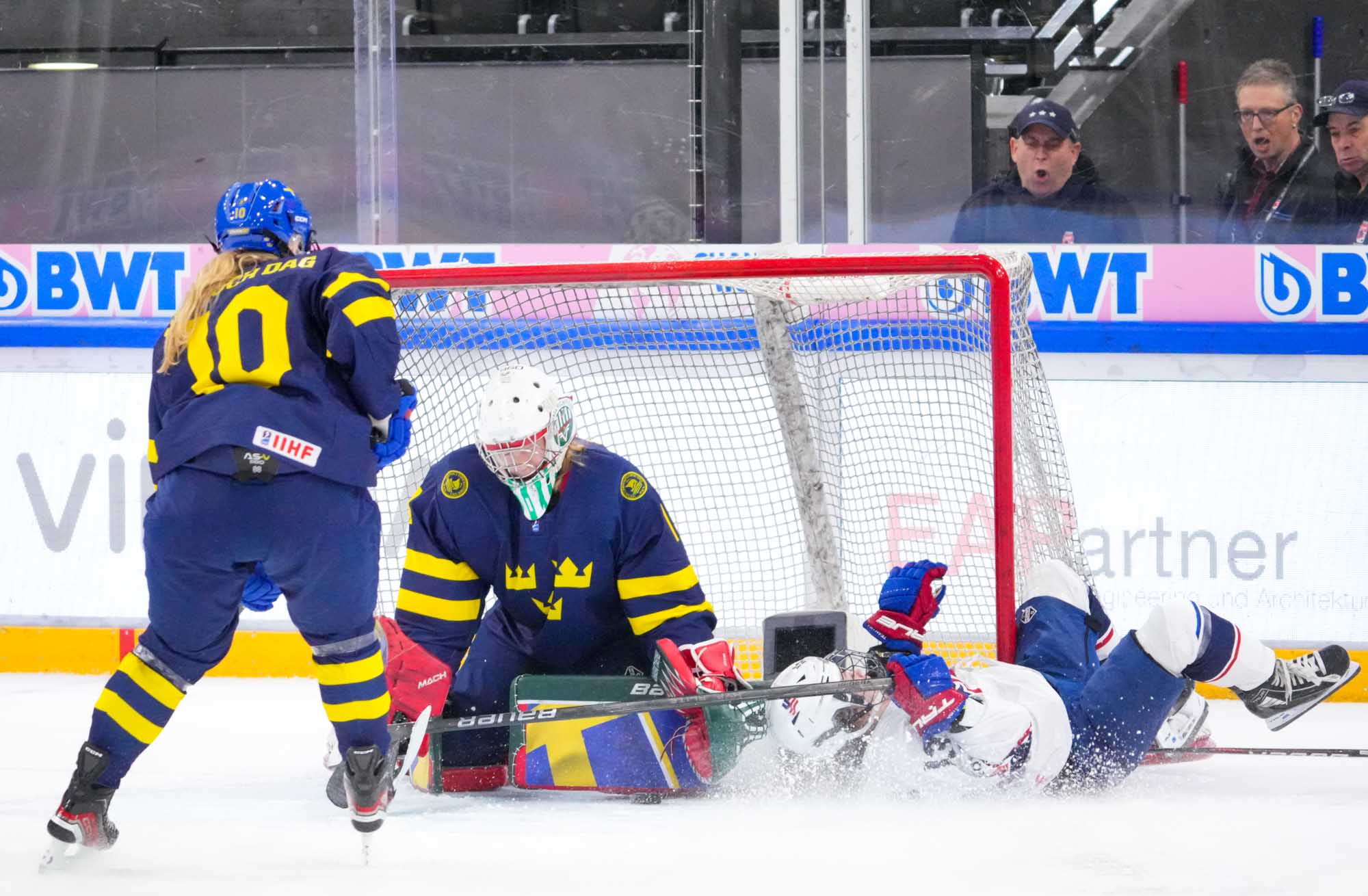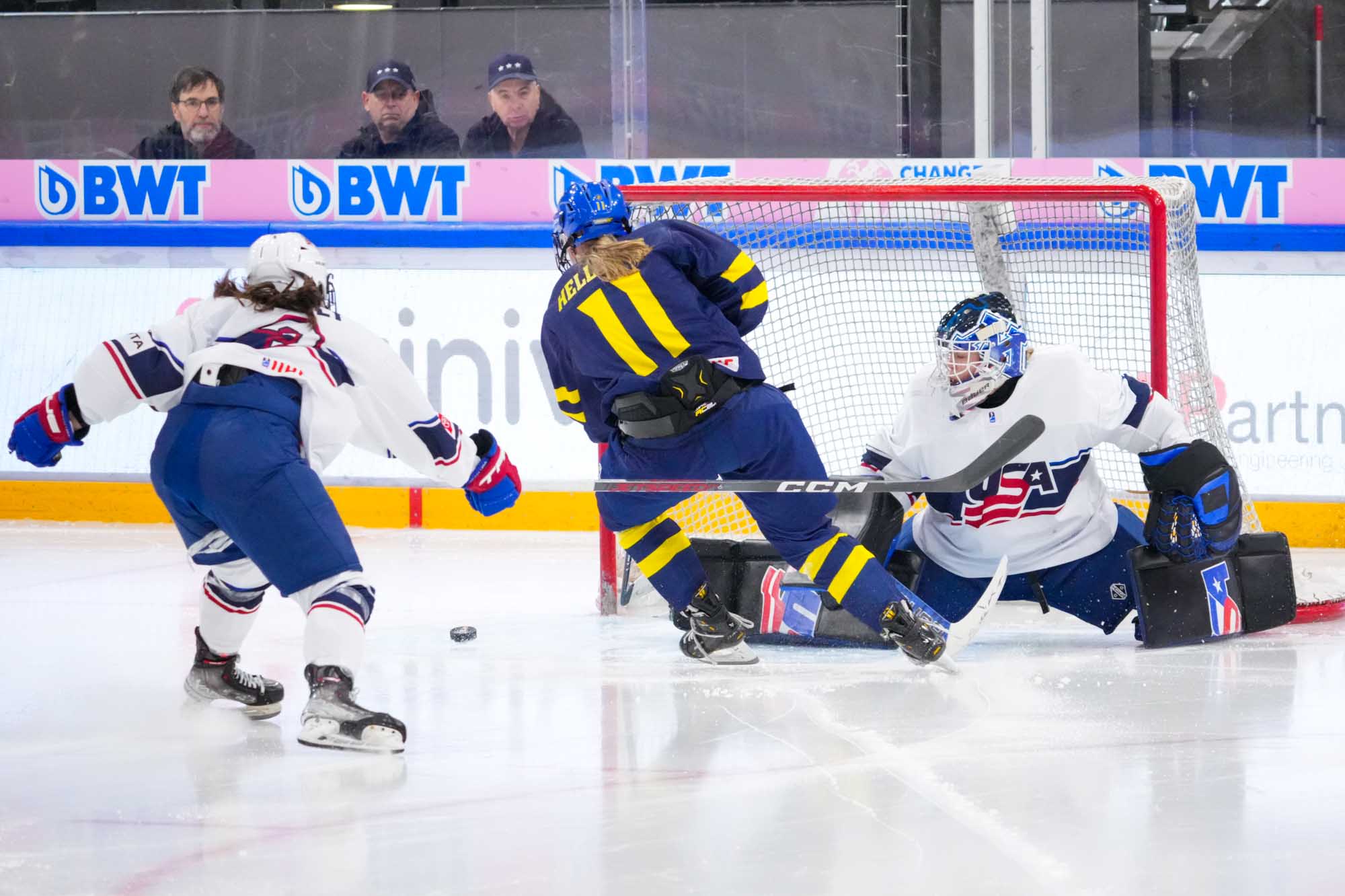 Here, though, the Swedes dominated early on and could easily have led. They peppered Hemp with shots during their first power play with U.S. captain Maggie Scannell off for an illegal bodycheck.