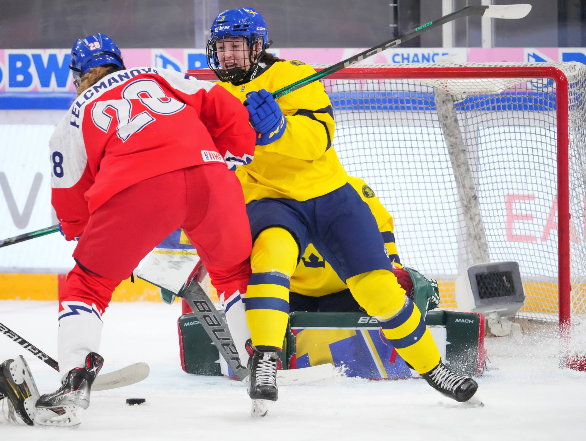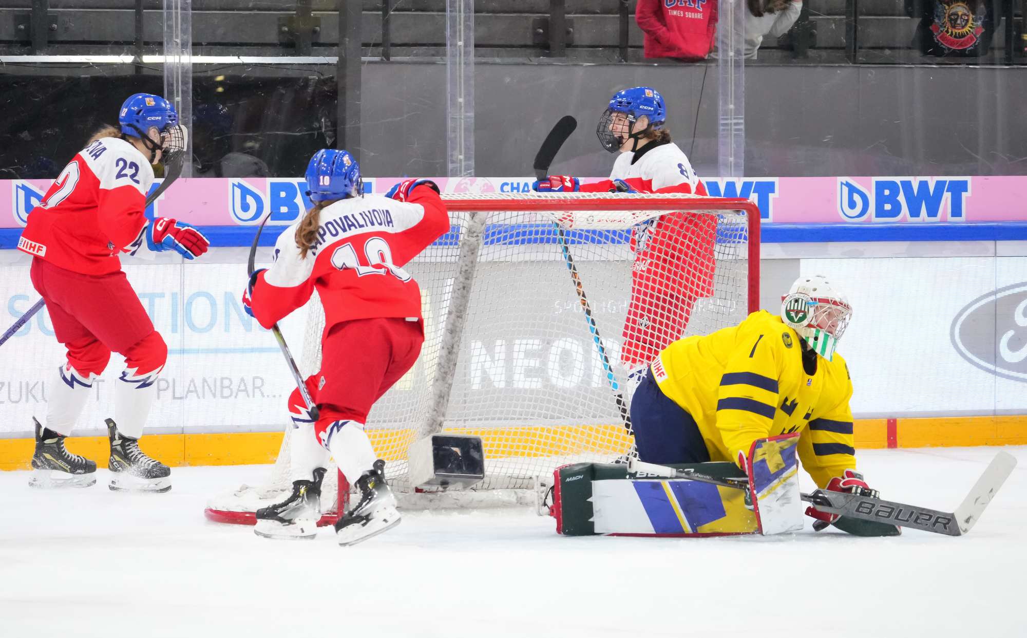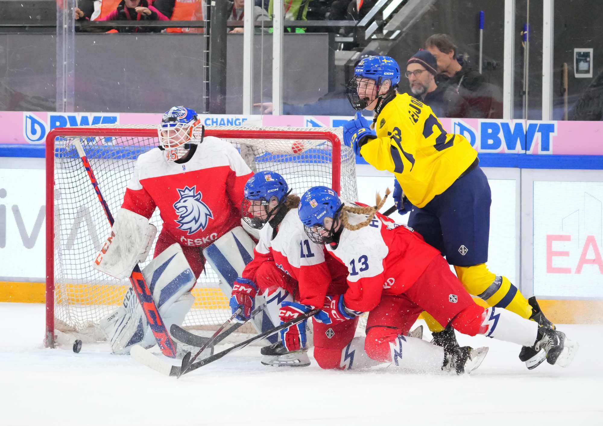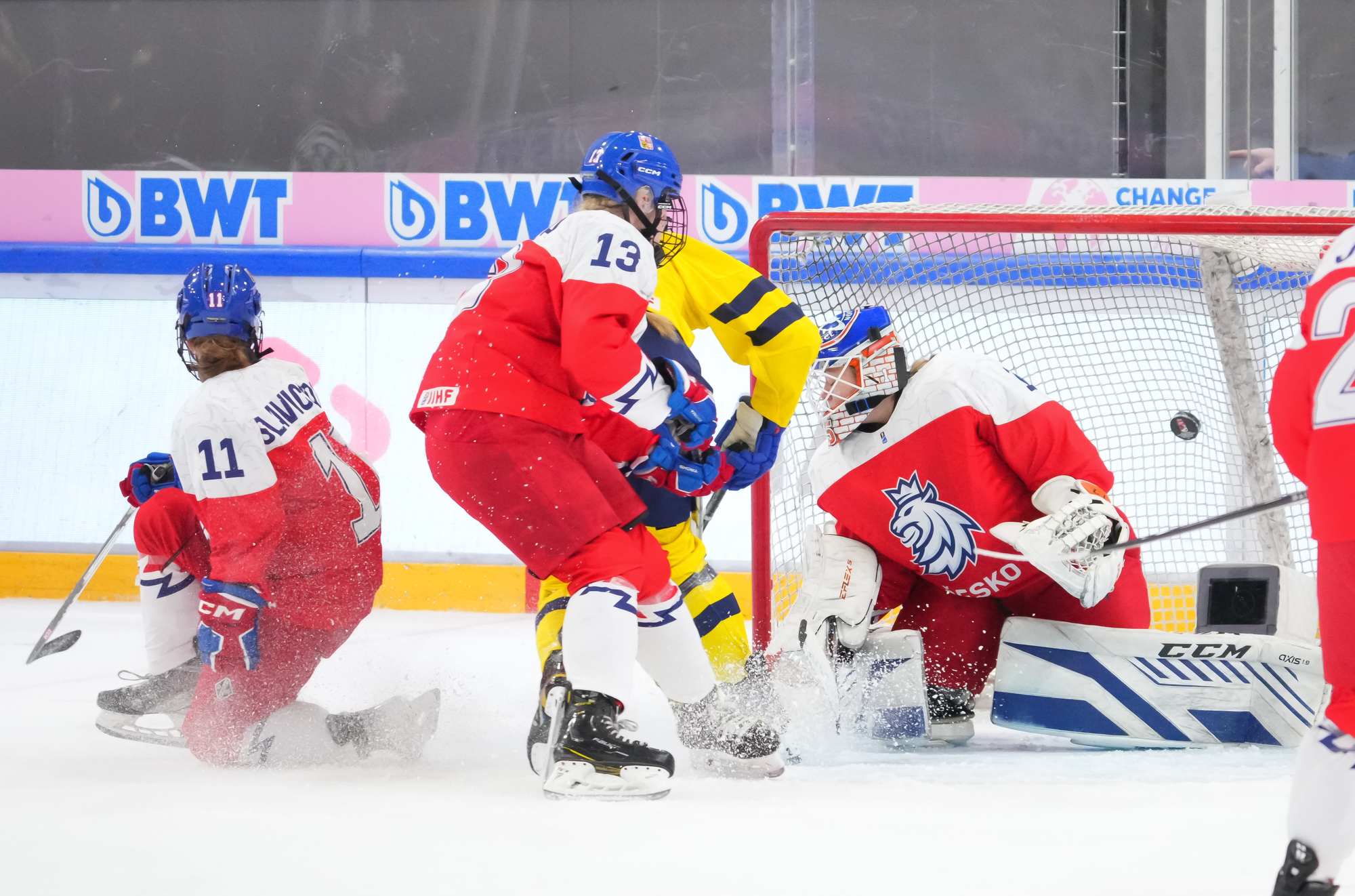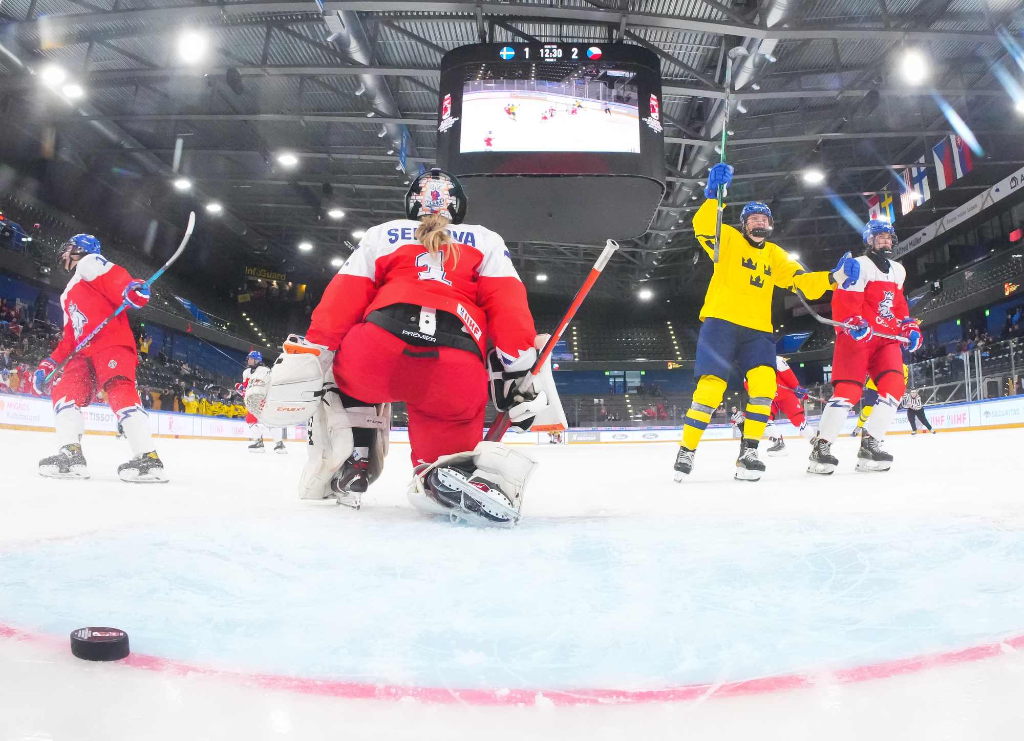 Soon after Hellman's goal the game reached a pivotal moment as Senkova made a big save to deny Sweden’s leading scorer, Hilda Svensson, from point blank range. Moments later, the Czechs regained the lead. Plosova again fed Sapovalivova and she circled into the zone before roasting her shot past Helge.
