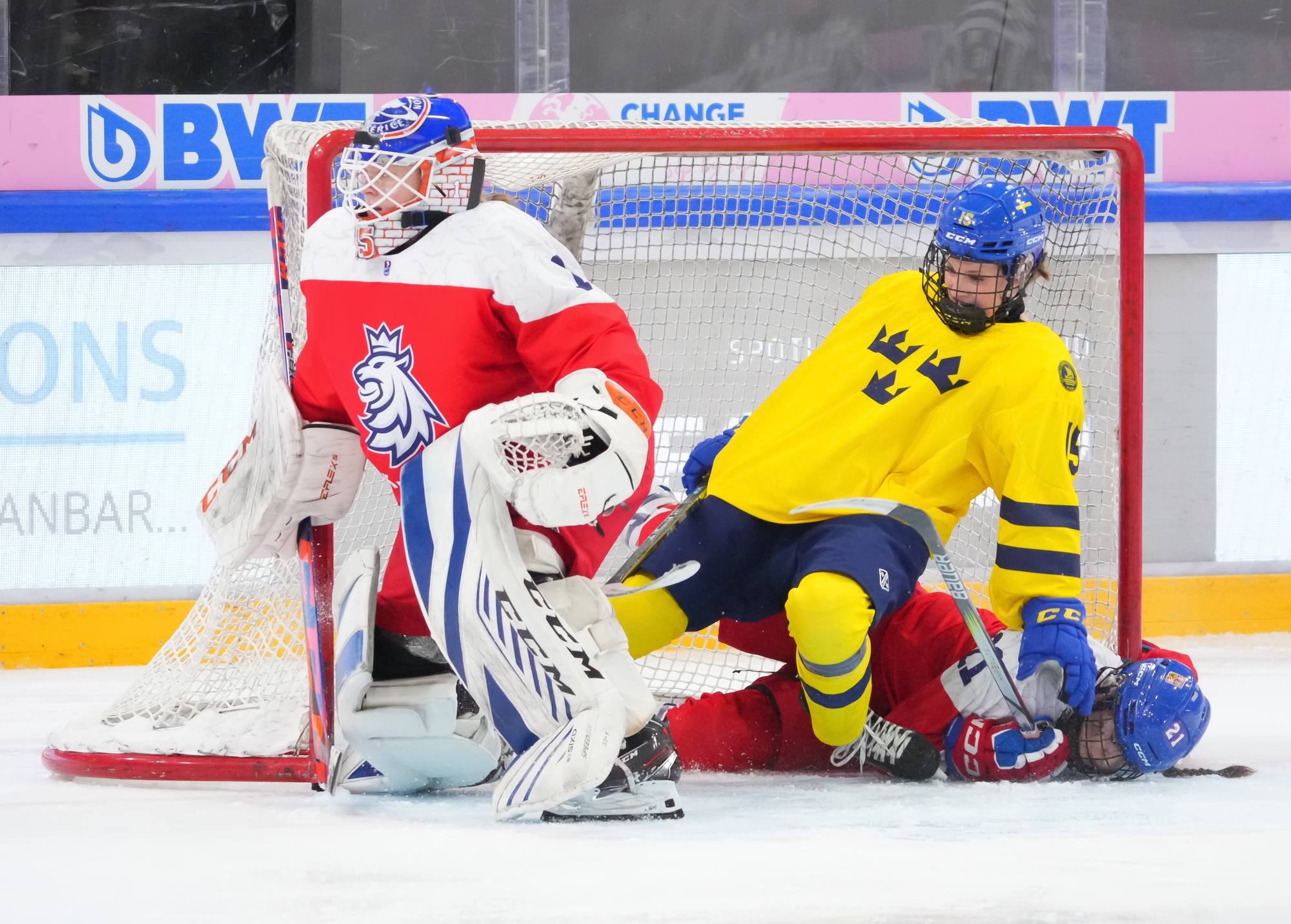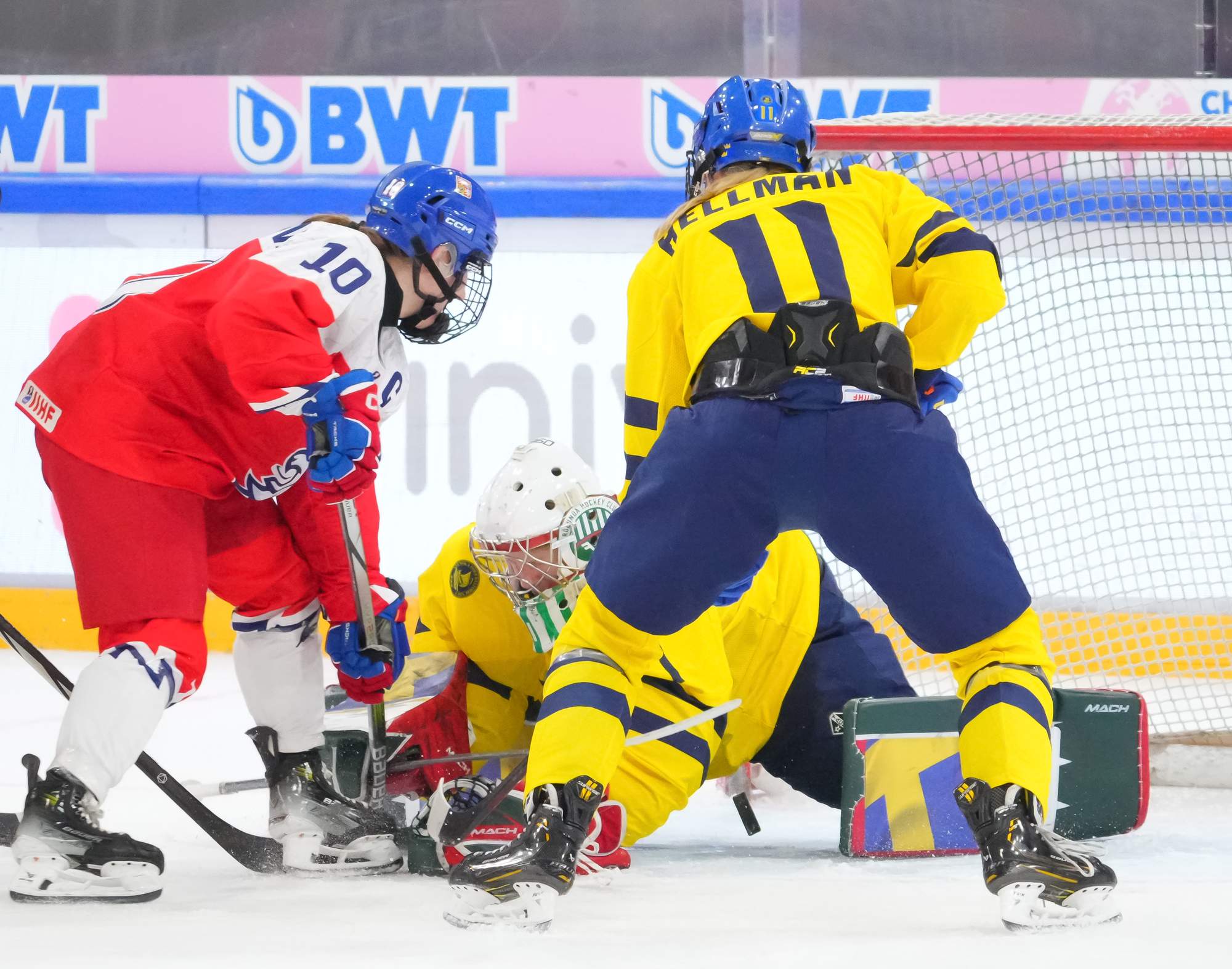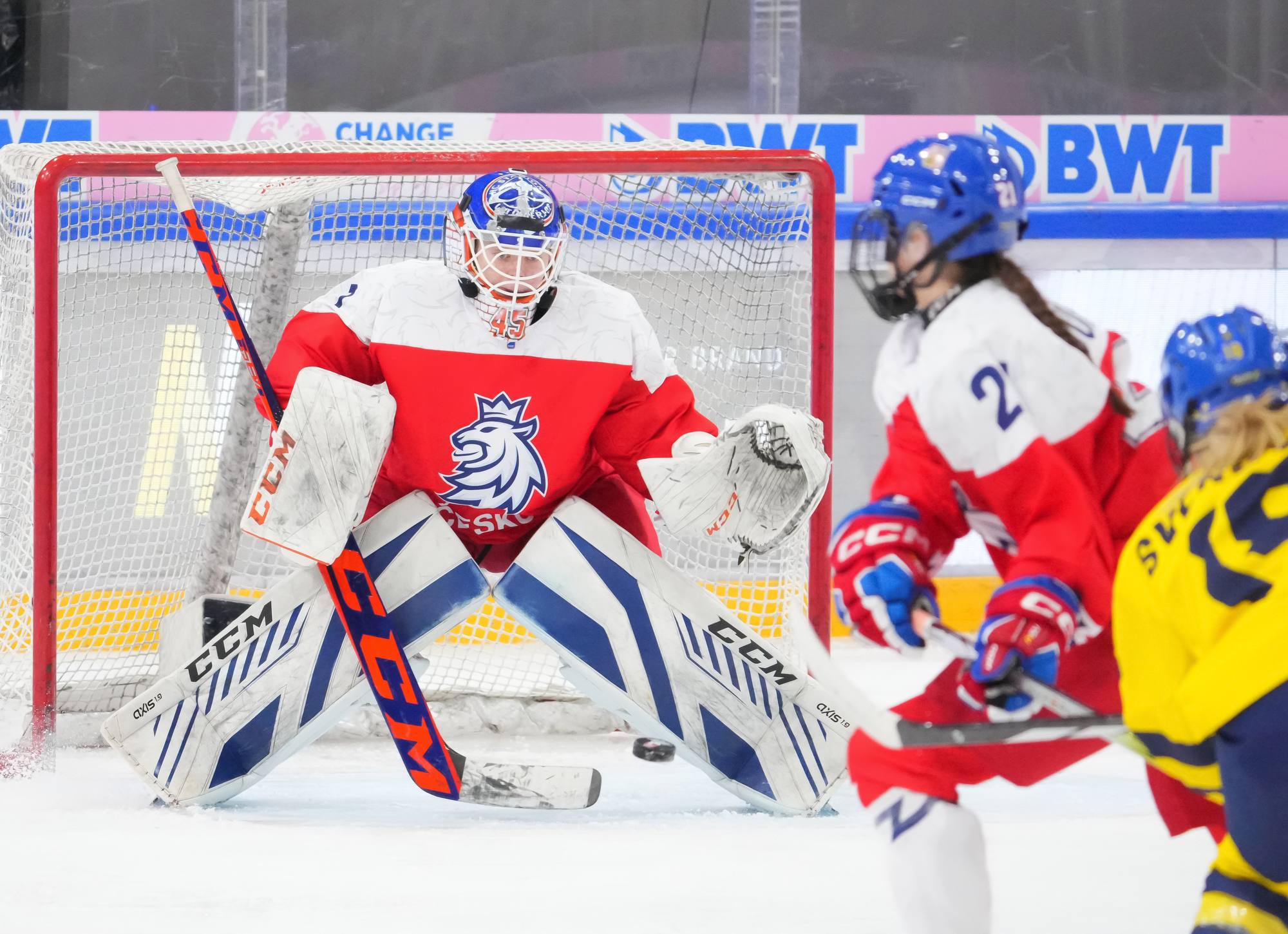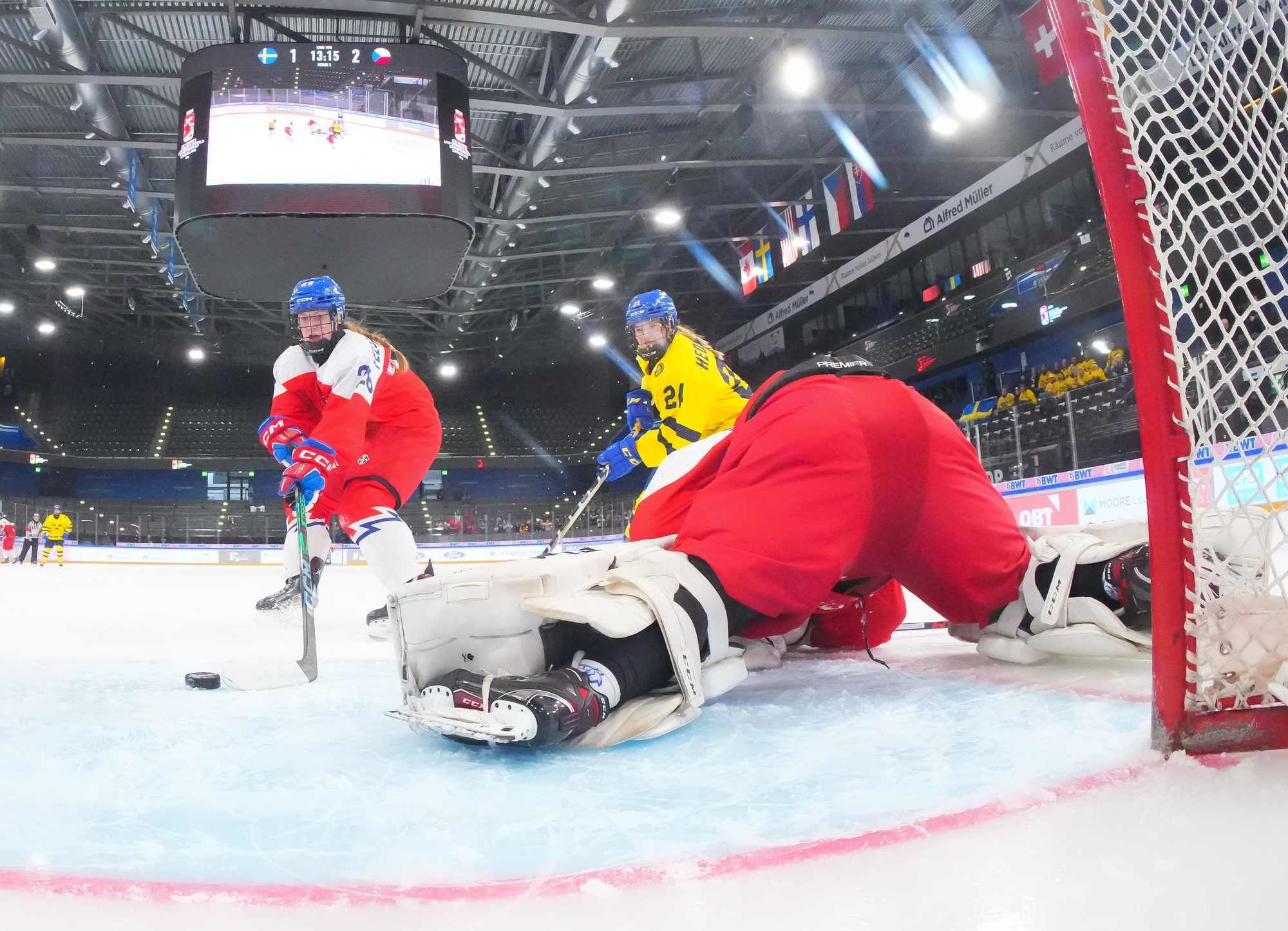Soon after Hellman's goal the game reached a pivotal moment as Senkova made a big save to deny Sweden’s leading scorer, Hilda Svensson, from point blank range. Moments later, the Czechs regained the lead. Plosova again fed Sapovalivova and she circled into the zone before roasting her shot past Helge.
