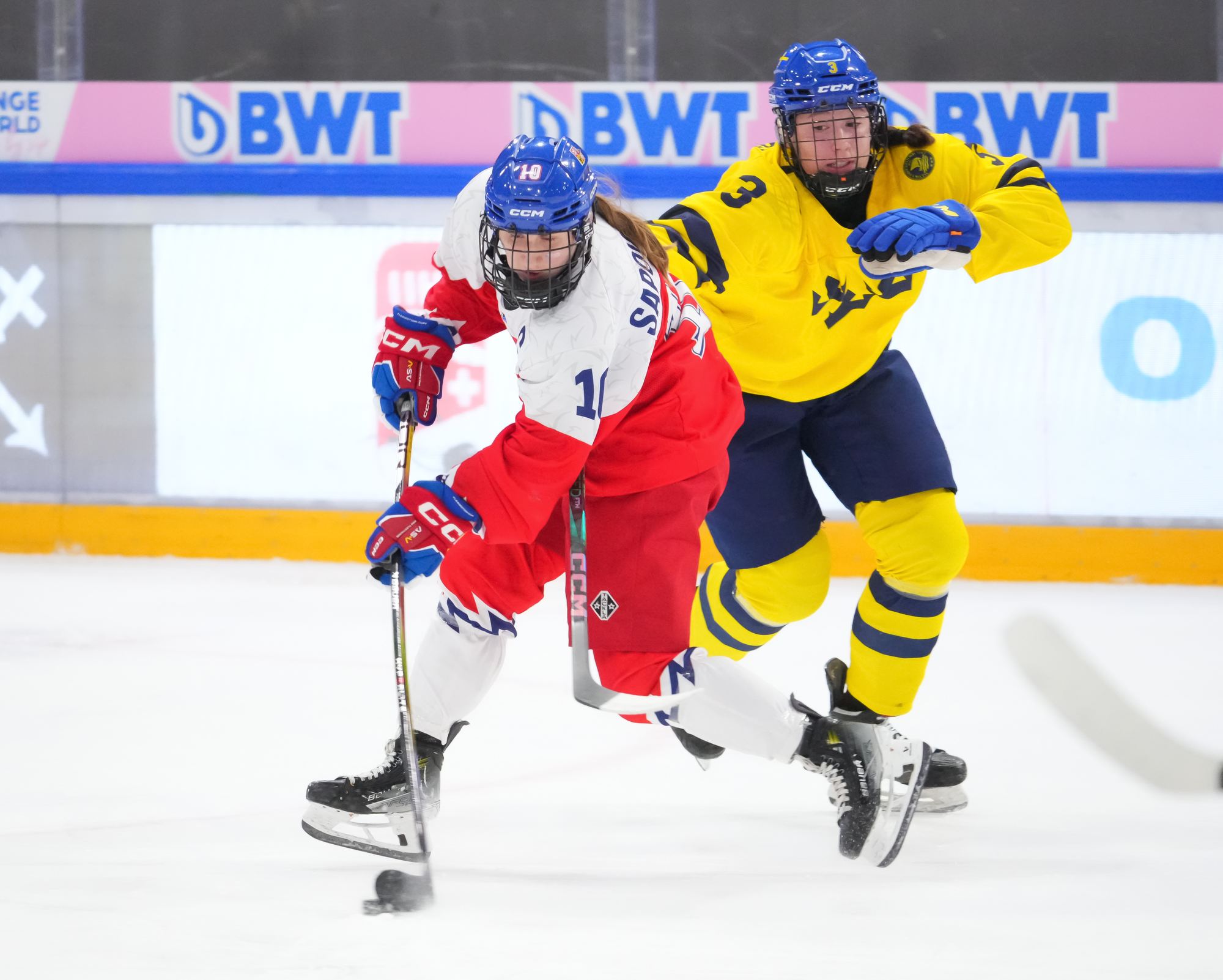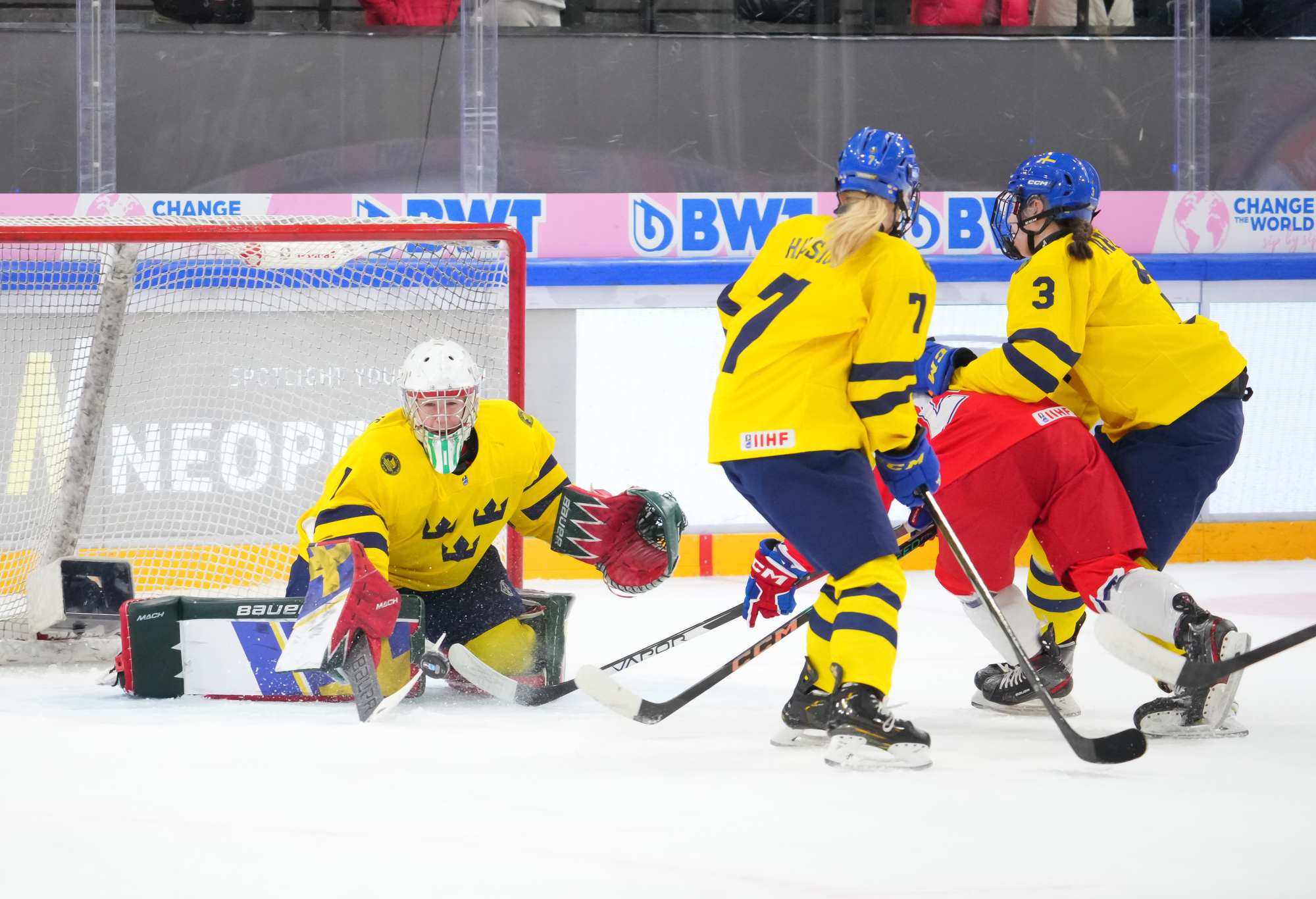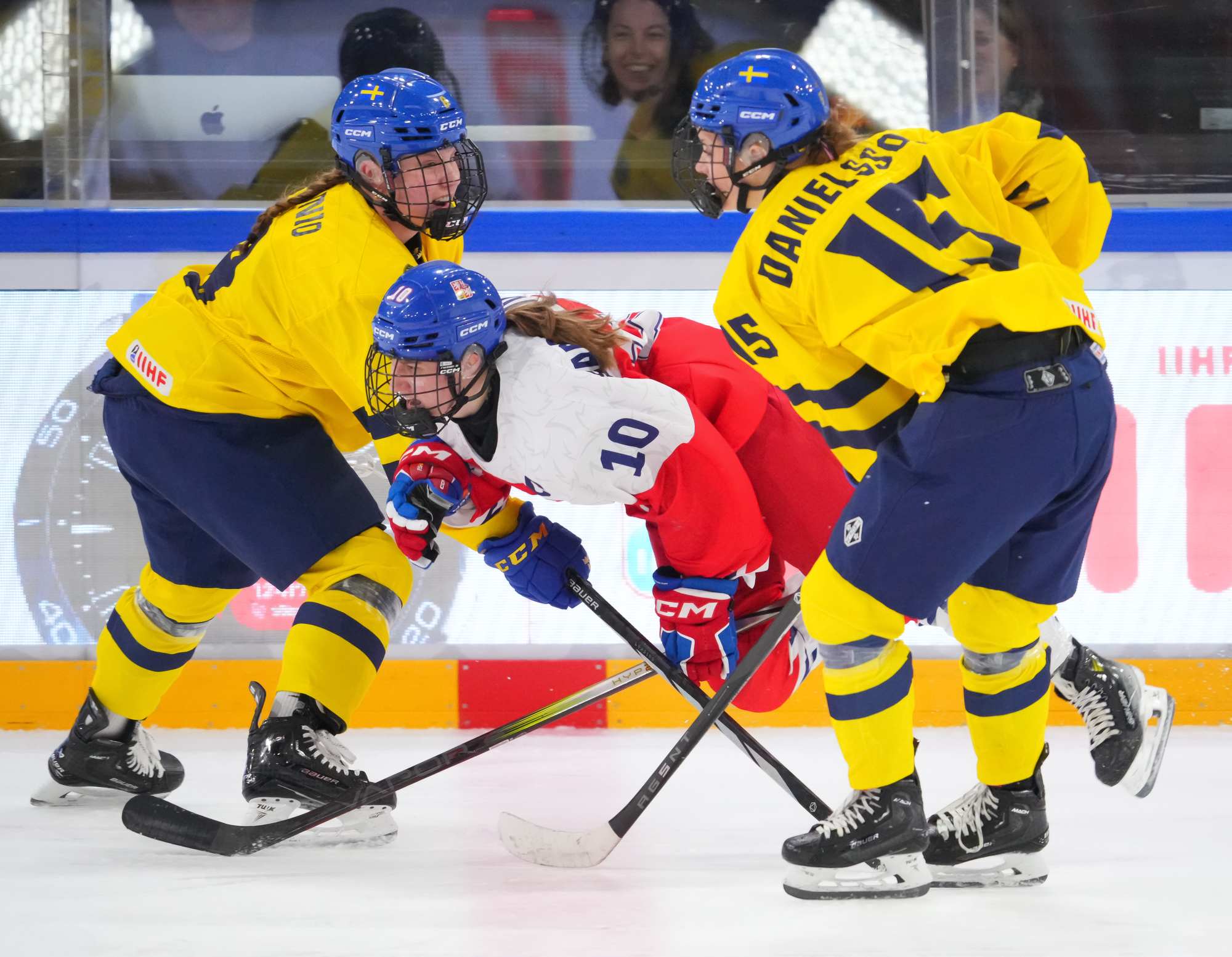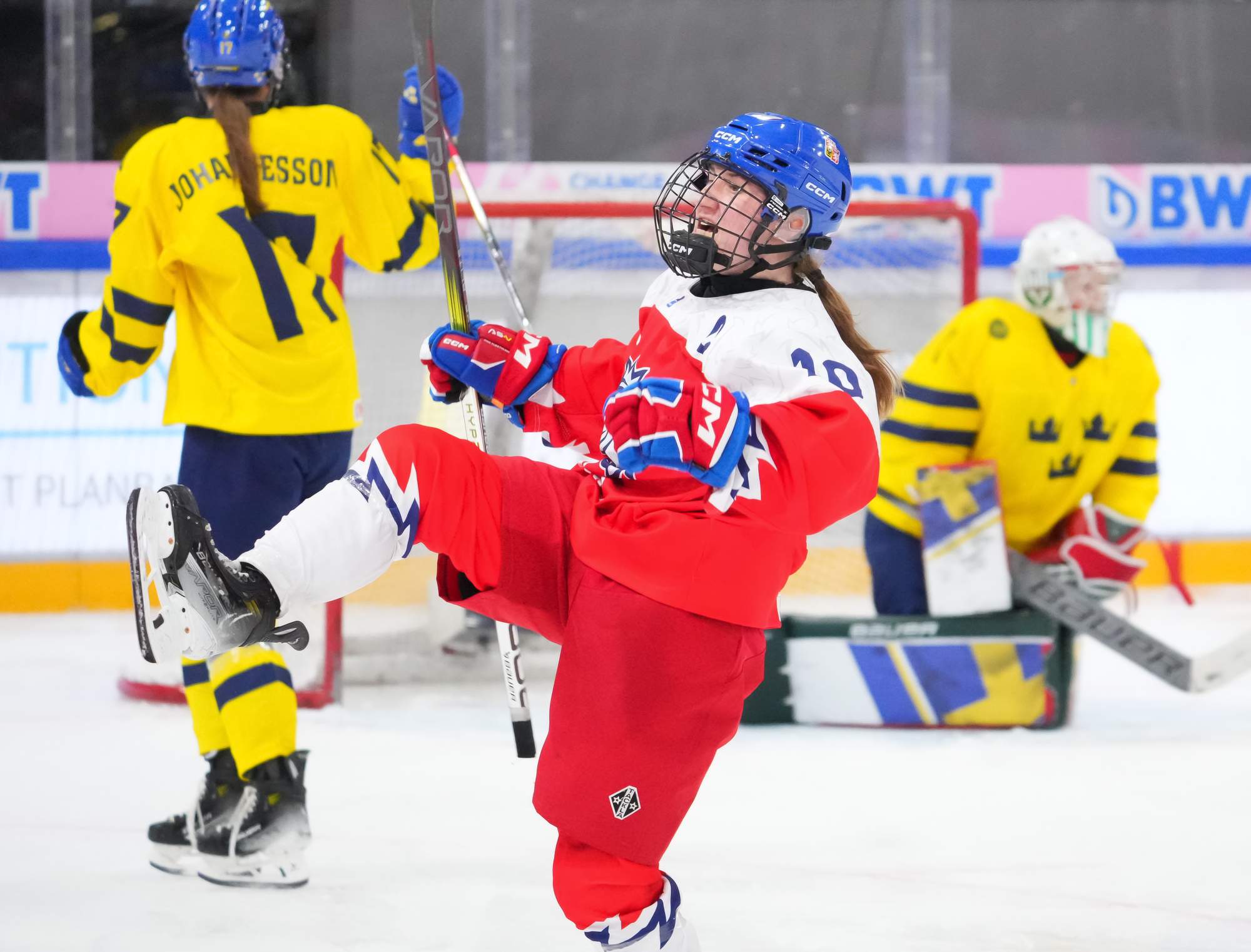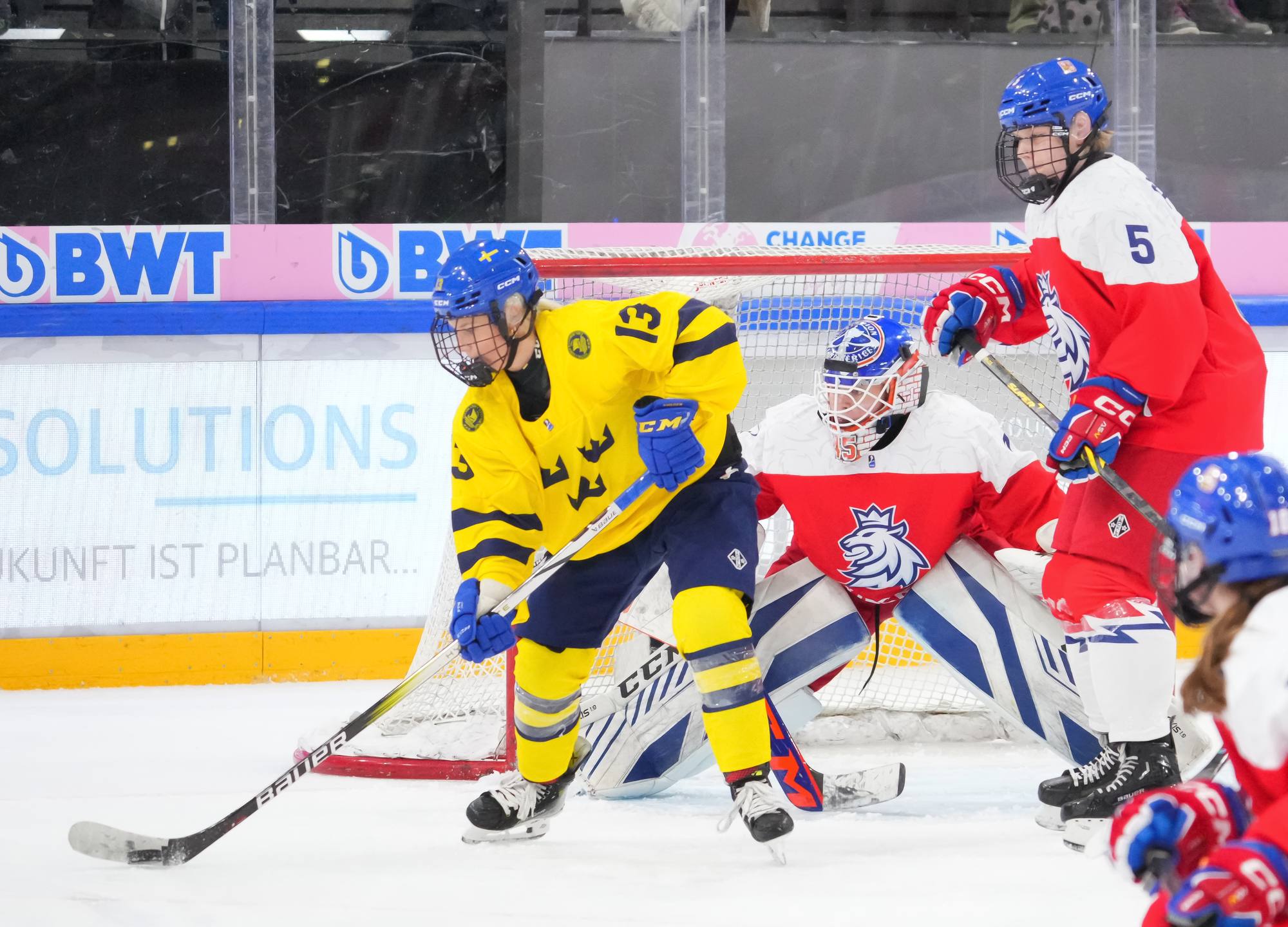 Soon after Hellman's goal the game reached a pivotal moment as Senkova made a big save to deny Sweden’s leading scorer, Hilda Svensson, from point blank range. Moments later, the Czechs regained the lead. Plosova again fed Sapovalivova and she circled into the zone before roasting her shot past Helge.