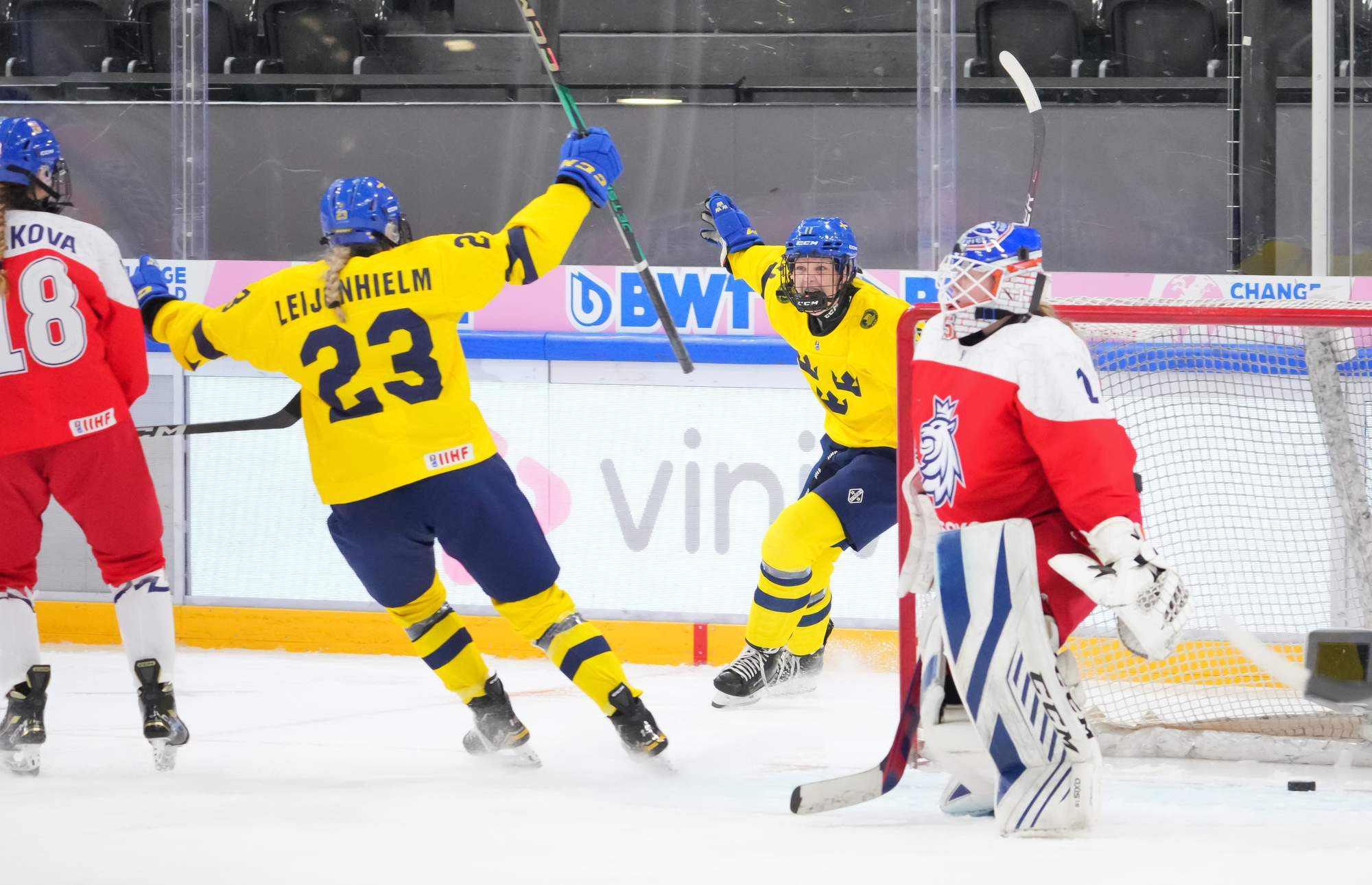 On 56:47, Sweden called Herje to the bench in favour of an extra skater. However, when Hedqvist was denied by another big save from Senkova, her team's hopes were effectively over while Czechia celebrated a memorable win.