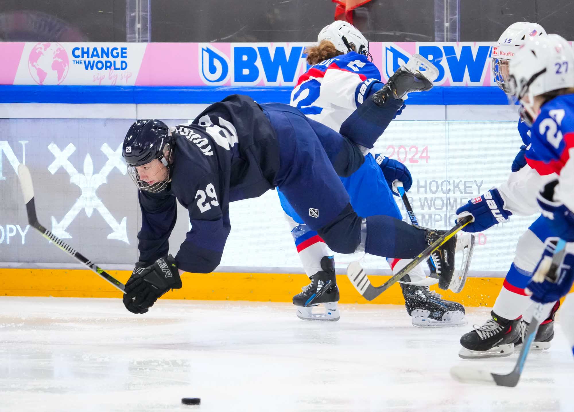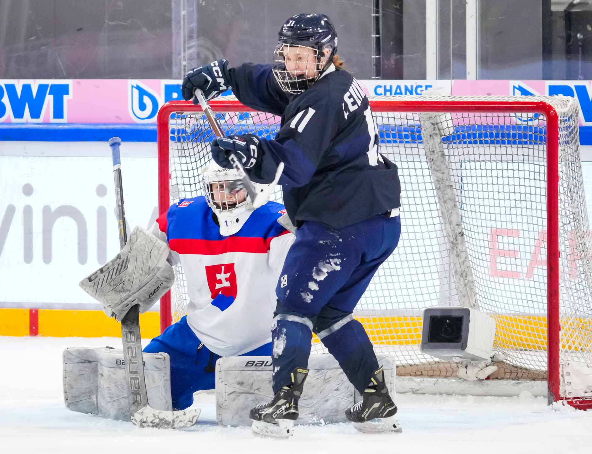 In a cautiously played opening period, Finland outshot Slovakia 10-7. Tinja Tapani, the cousin of Finnish national team star and PWHL Minnesota forward Susanna Tapani, rang one off the iron with three minutes left in the frame.
