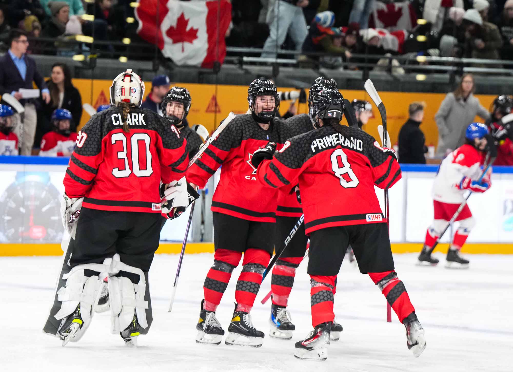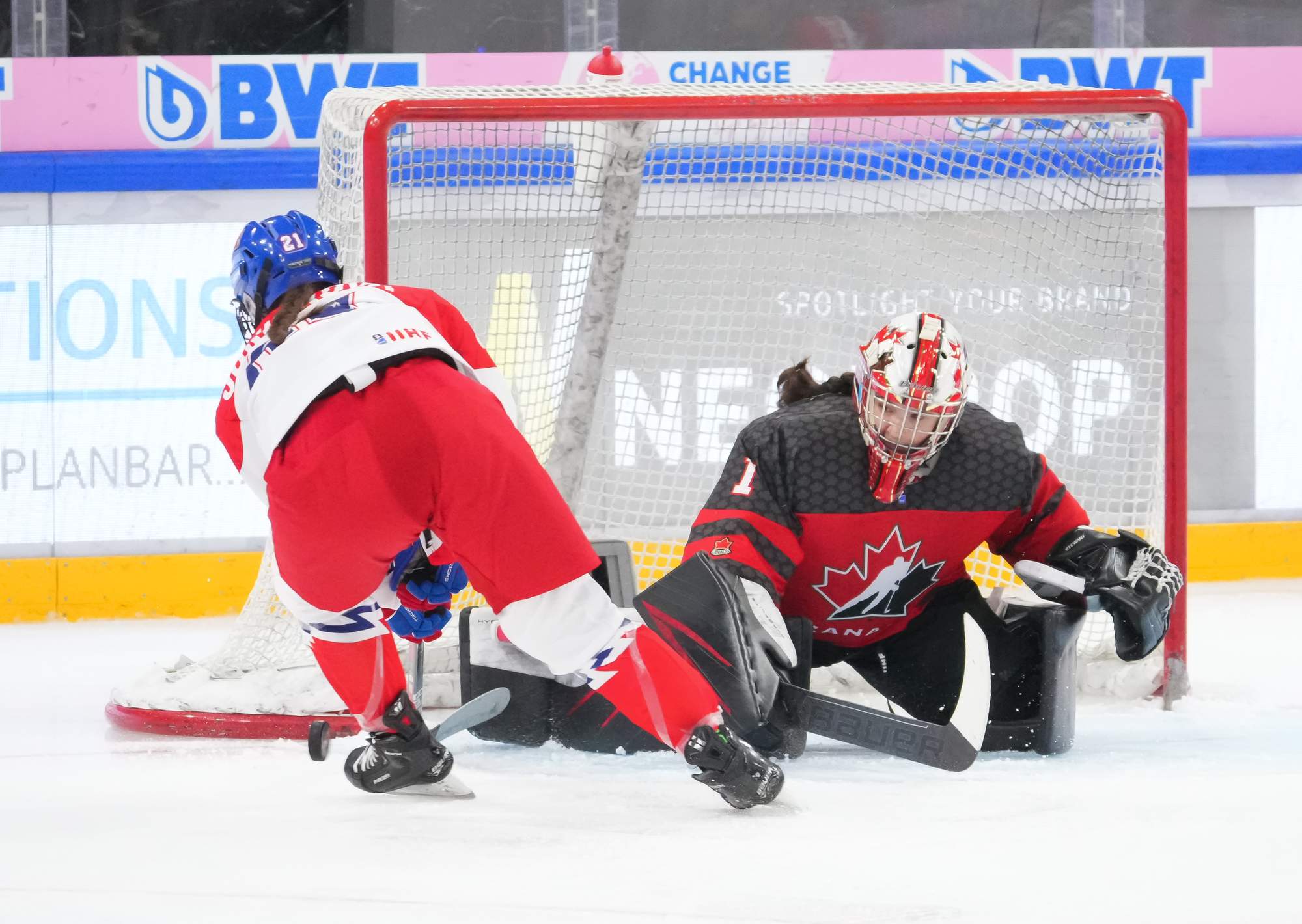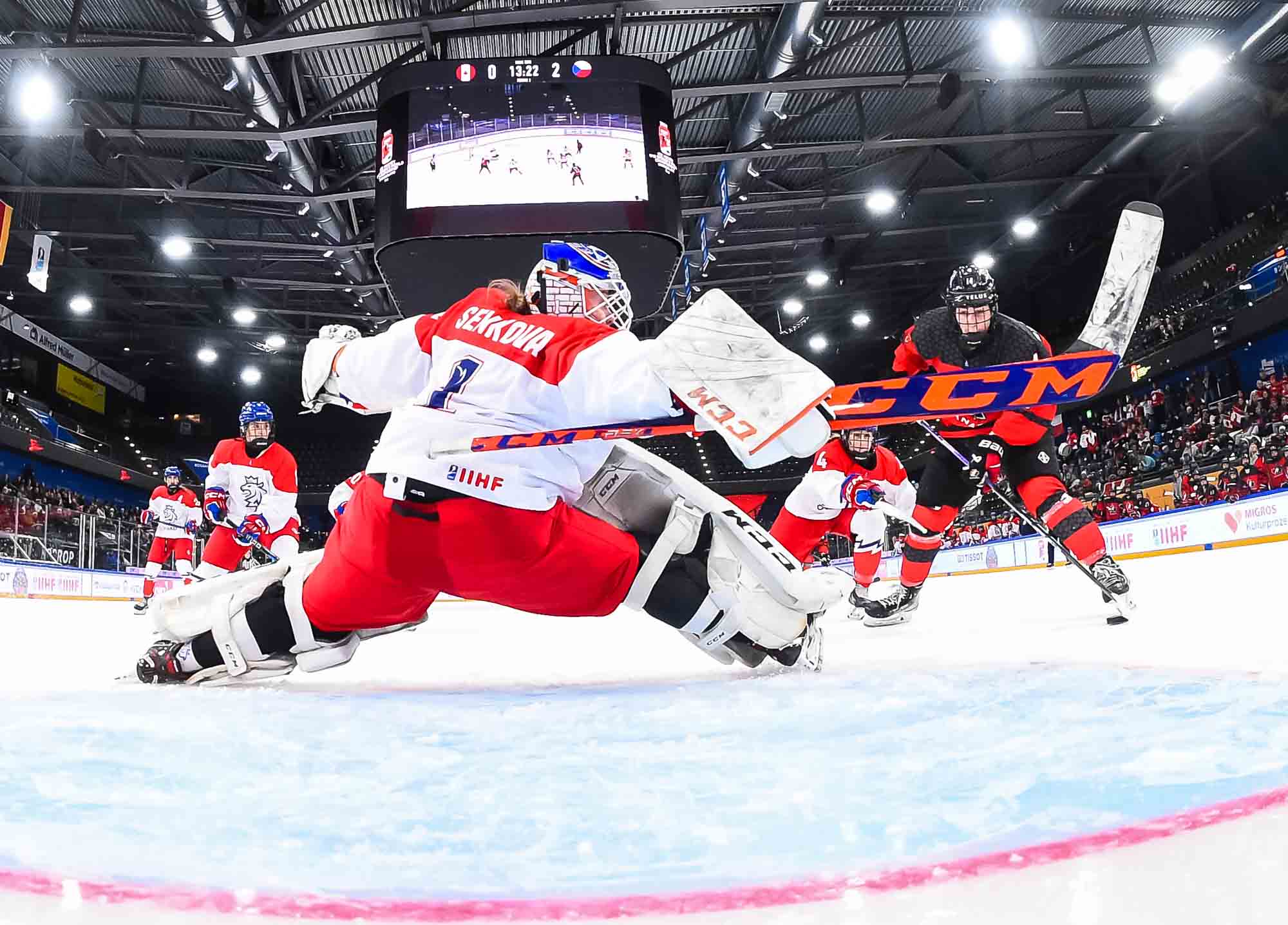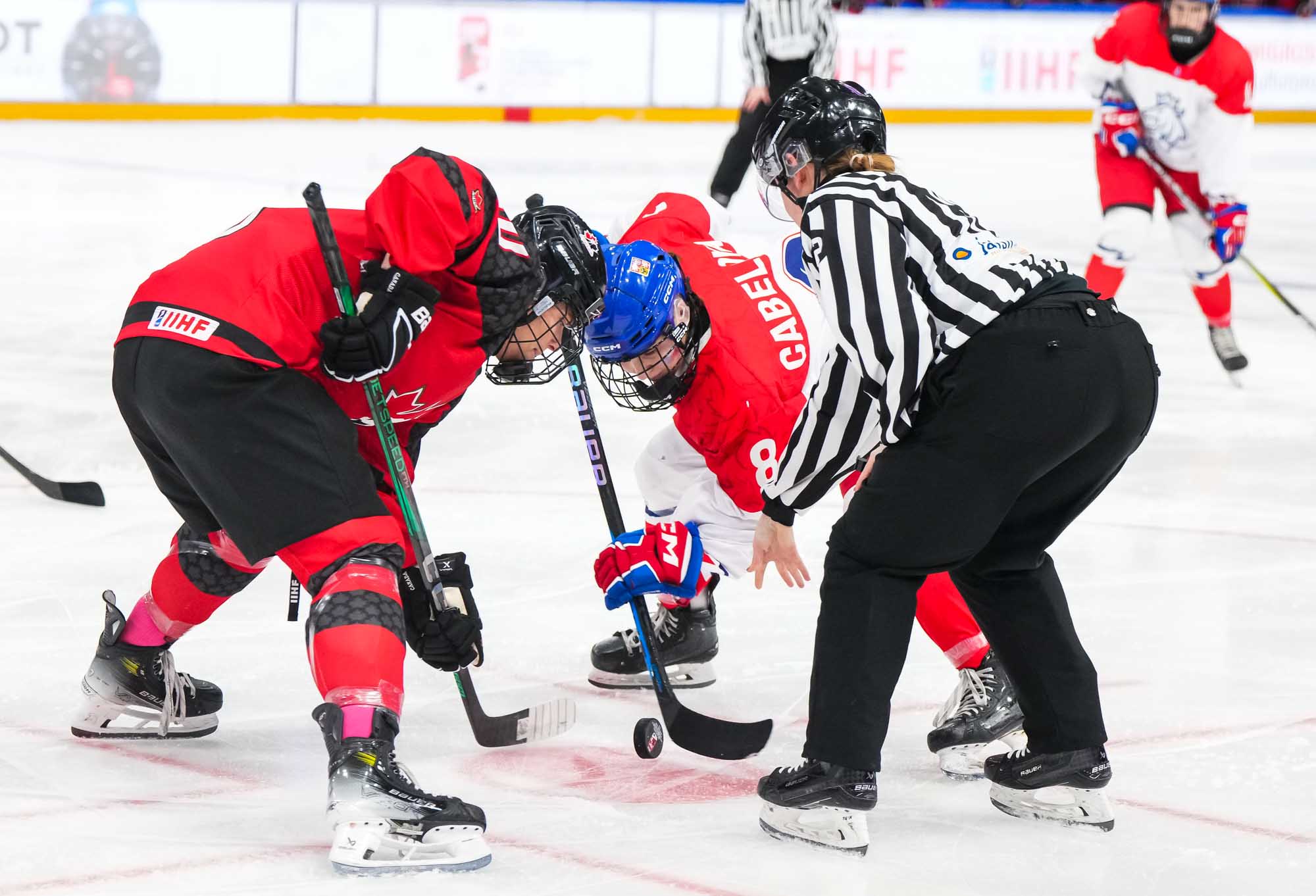 Passion ramped up as pounding Czech drums competed with "Go Canada go!" chants. The Czechs came out determined to force the play. The ever-slippery Sapovalivova cut back from the side boards, skated behind the net and centred the puck on her backhand to Cabelova, who scored from the doorstep at 3:32.