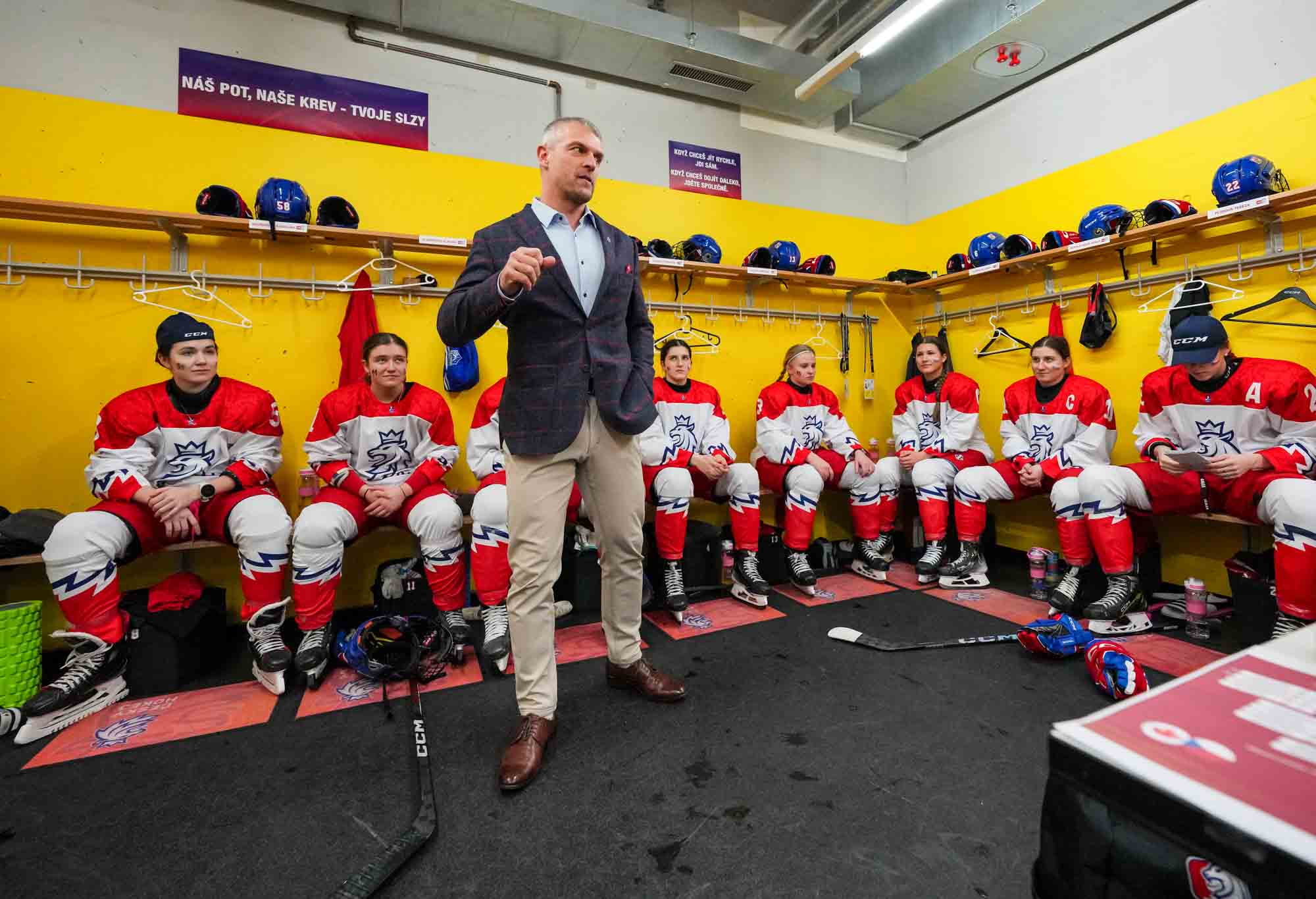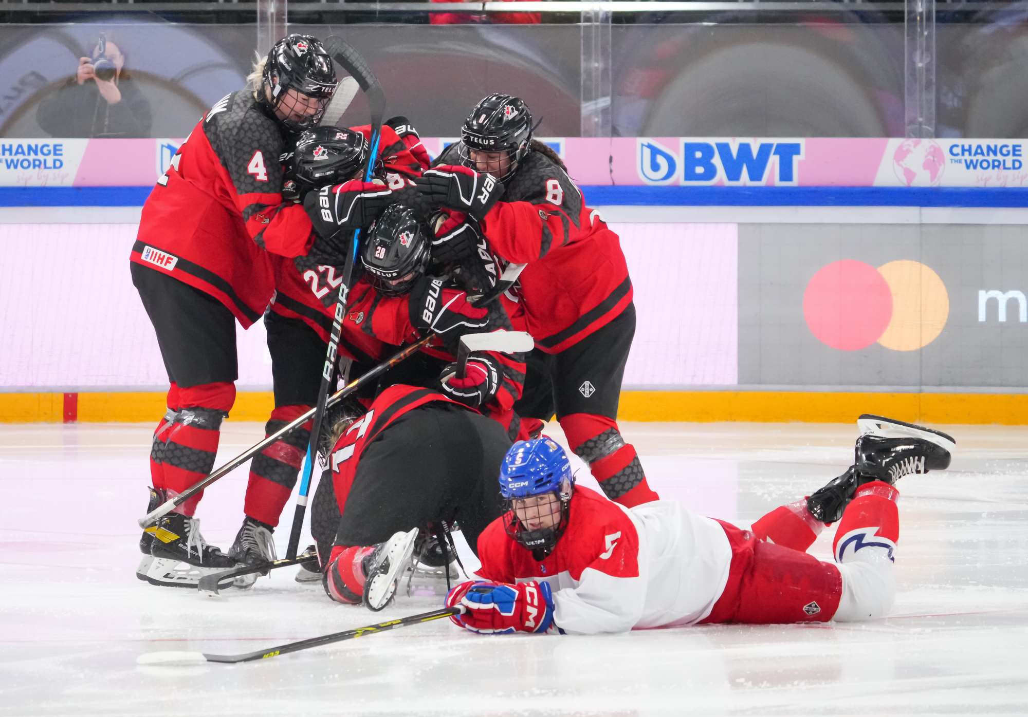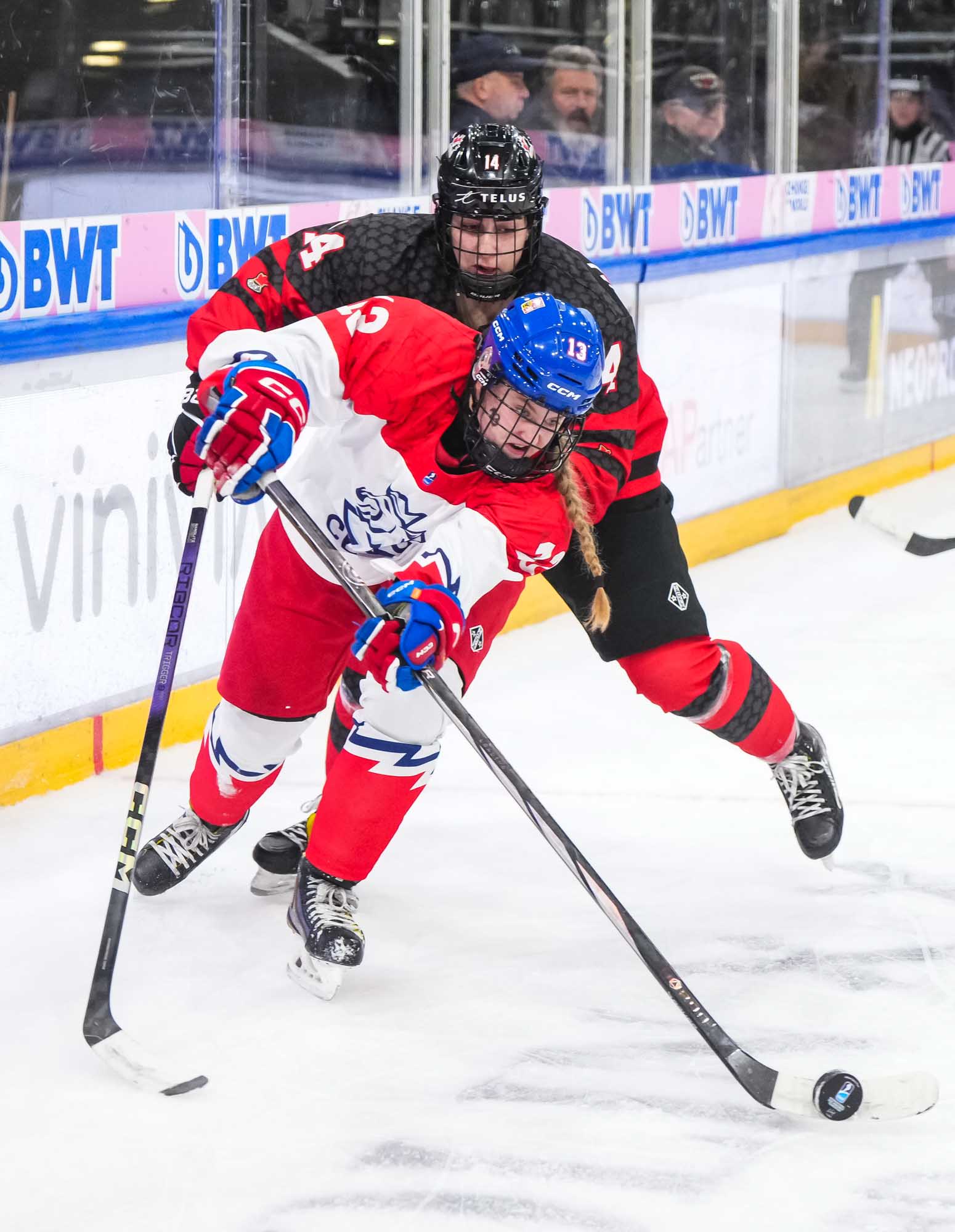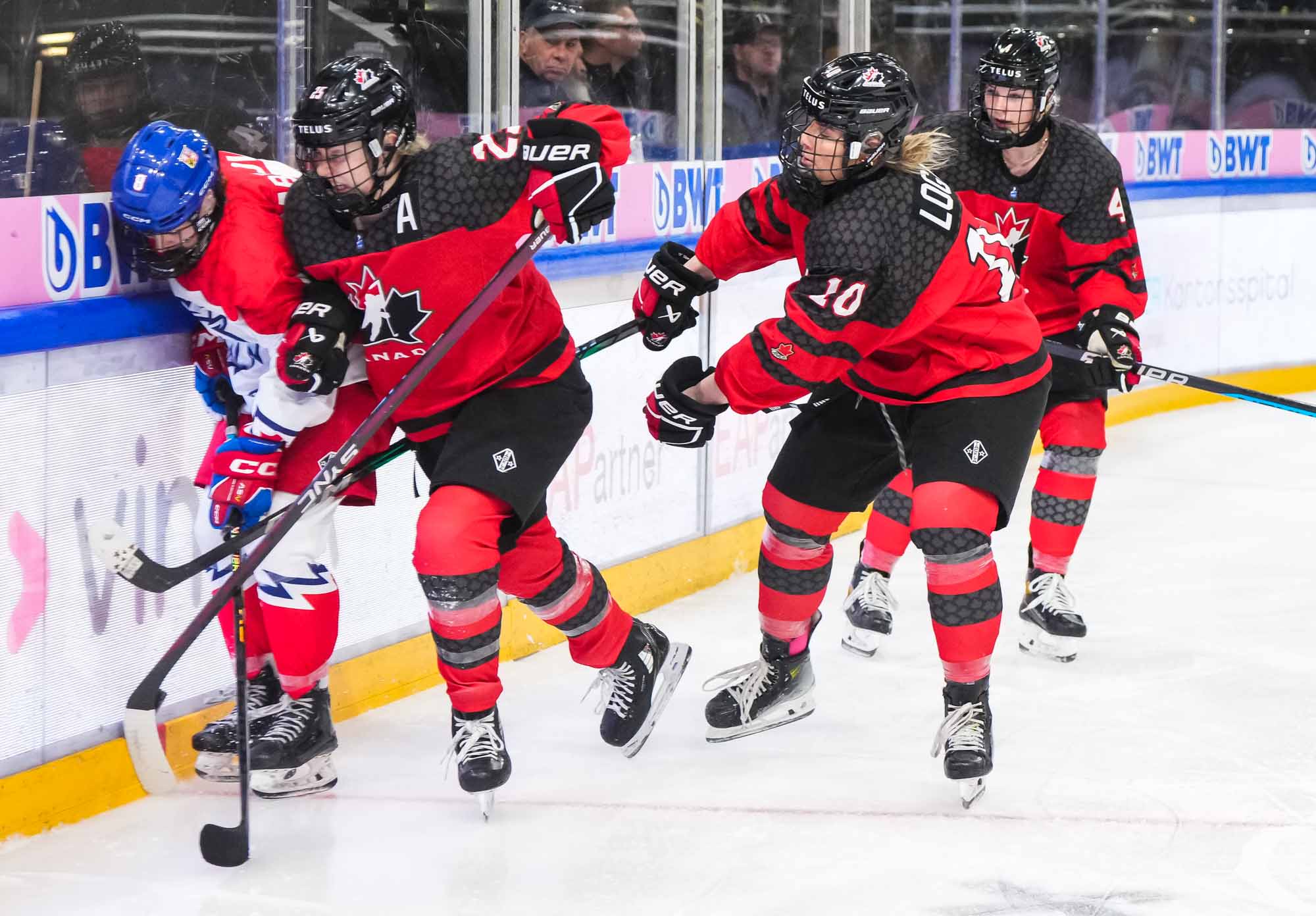 Passion ramped up as pounding Czech drums competed with "Go Canada go!" chants. The Czechs came out determined to force the play. The ever-slippery Sapovalivova cut back from the side boards, skated behind the net and centred the puck on her backhand to Cabelova, who scored from the doorstep at 3:32.
