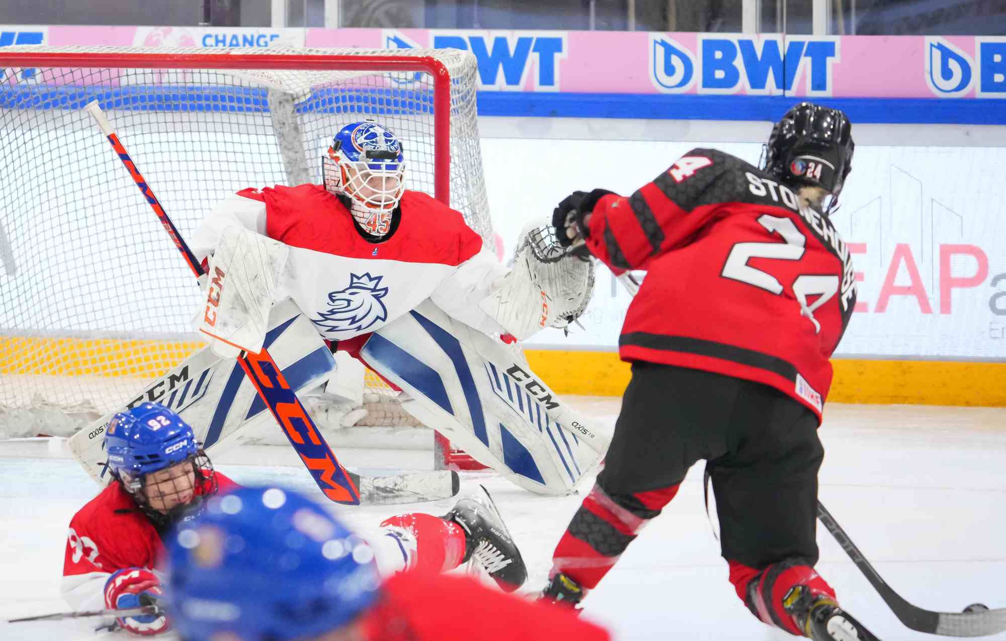 Canada nearly tied it up on the power play when Claire Murdoch tipped Primerano's long shot off the post. Watchorn pulled Stewart for the extra attacker with under two minutes left in regulation and used her timeout with a faceoff in the Czech end.