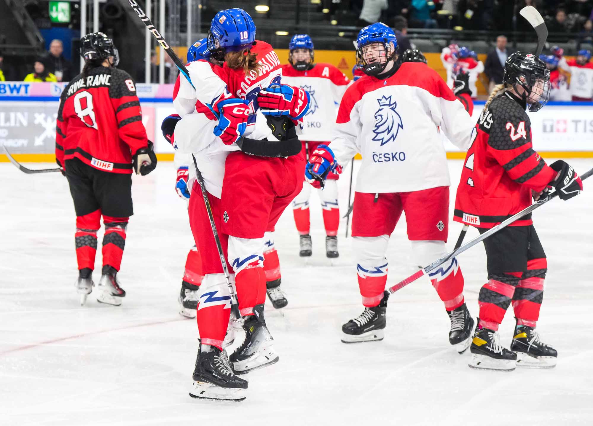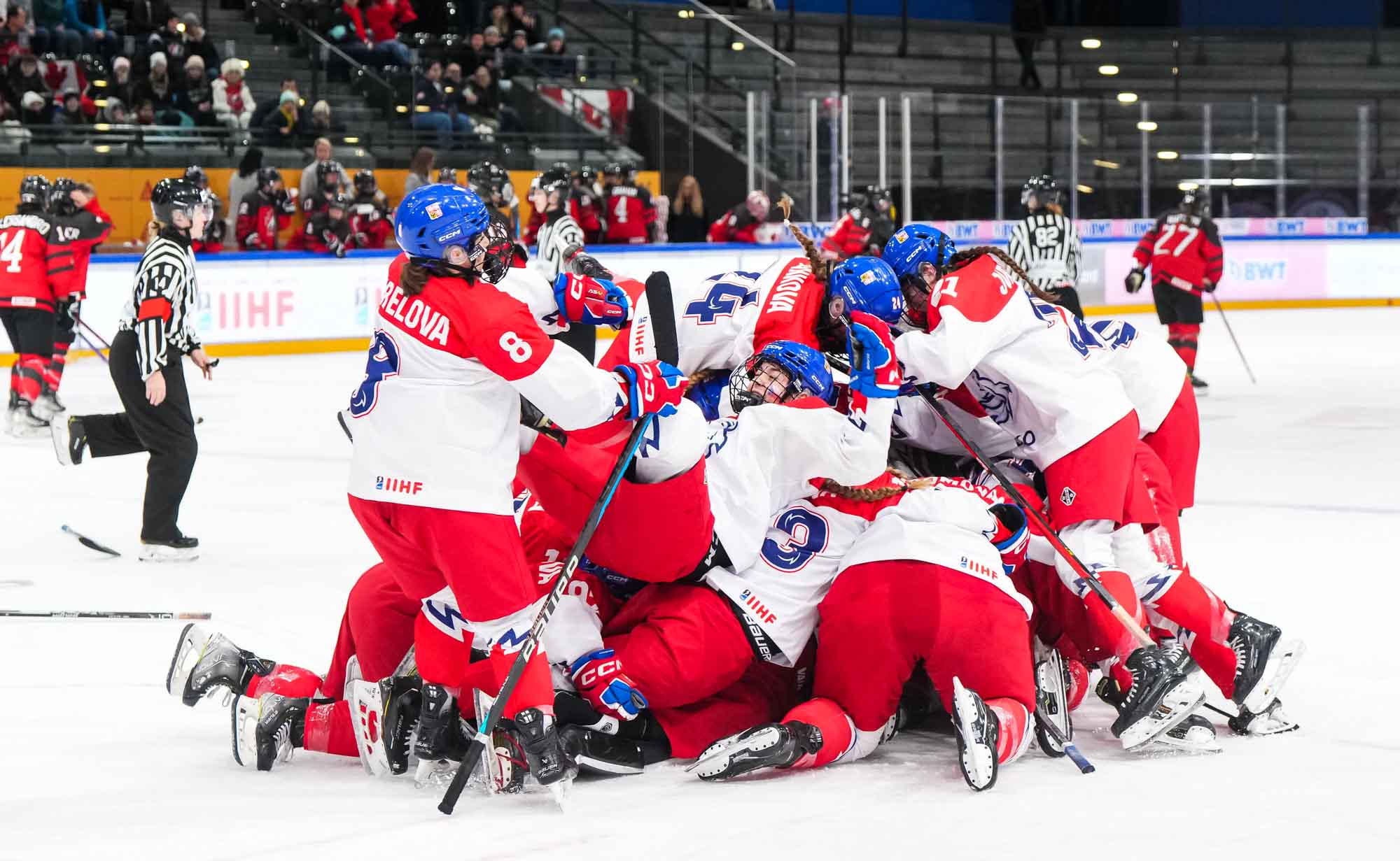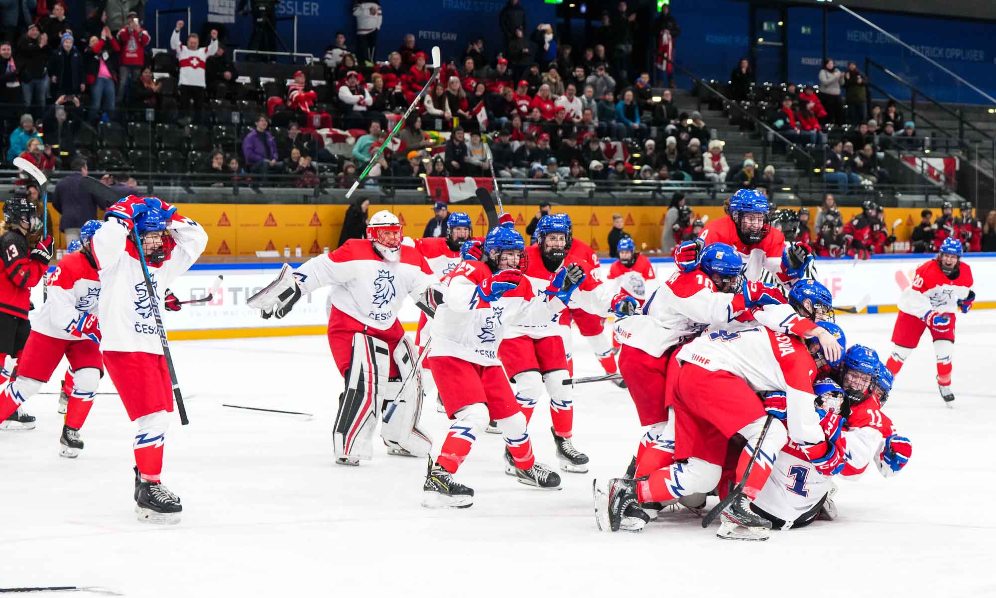 In the biggest upset in tournament history, the Czechs dethroned Canada with an historic 4-2 semi-final win. Klaudie Slavickova scored the go-ahead goal in the third period, lifting her team into the 2024 IIHF Ice Hockey U18 Women's World Championship gold medal game.